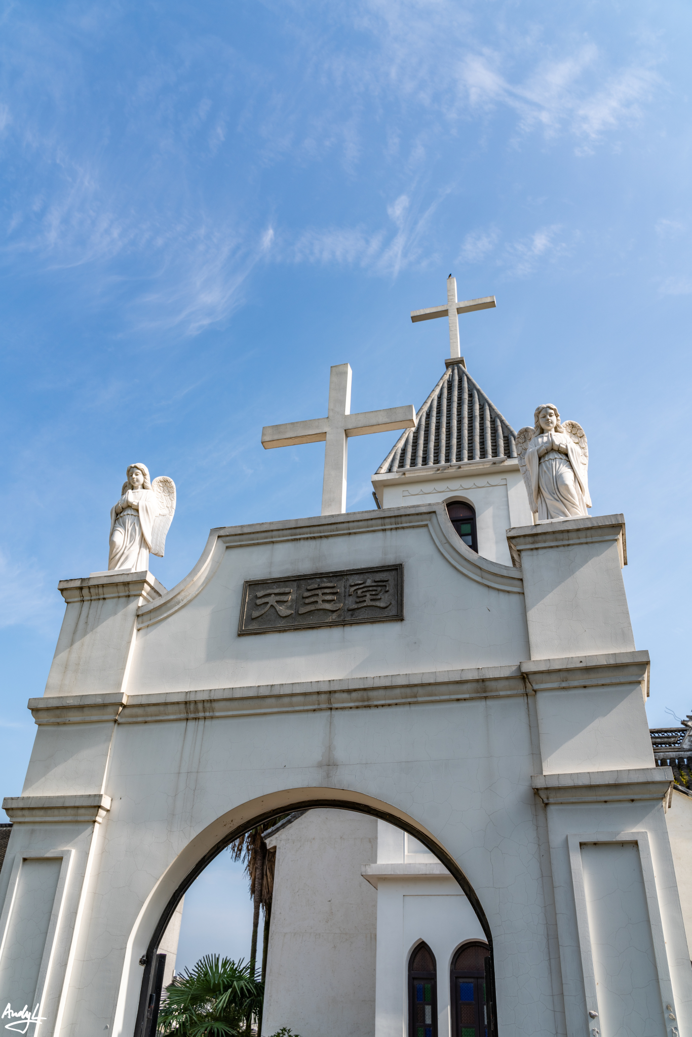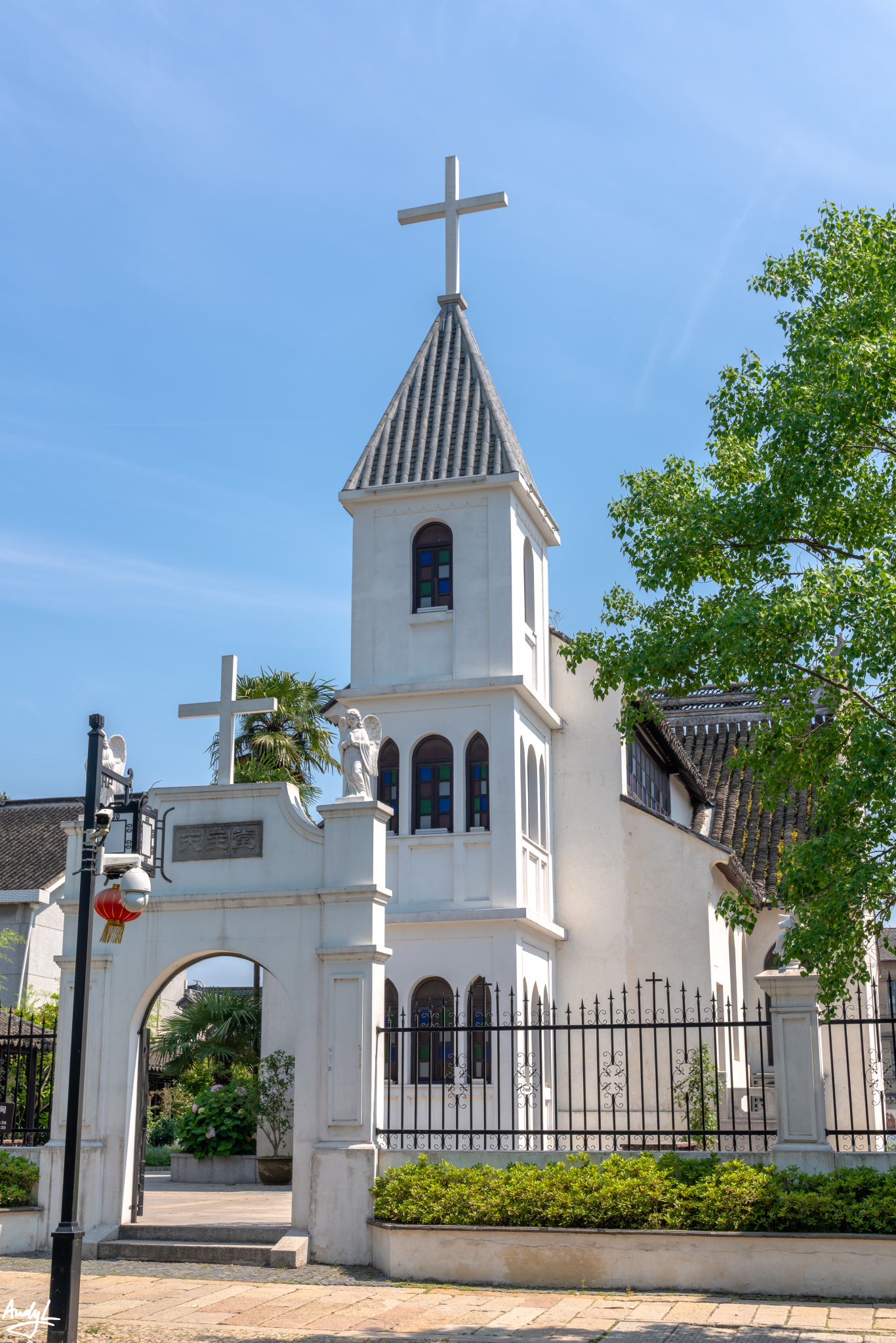 虽是西式的教堂,但是后面主建筑的屋顶仍是江南的风格。