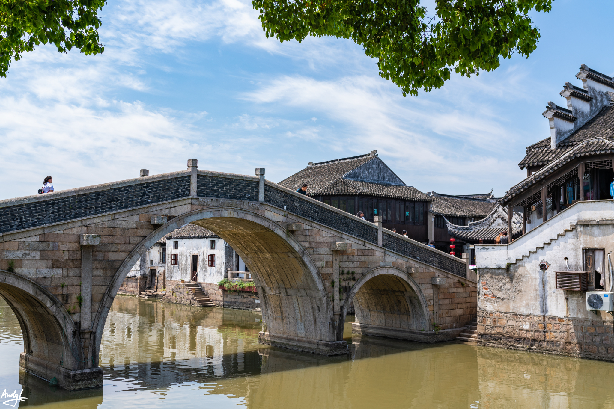 古镇最具标志性的景观在入口的桥边。