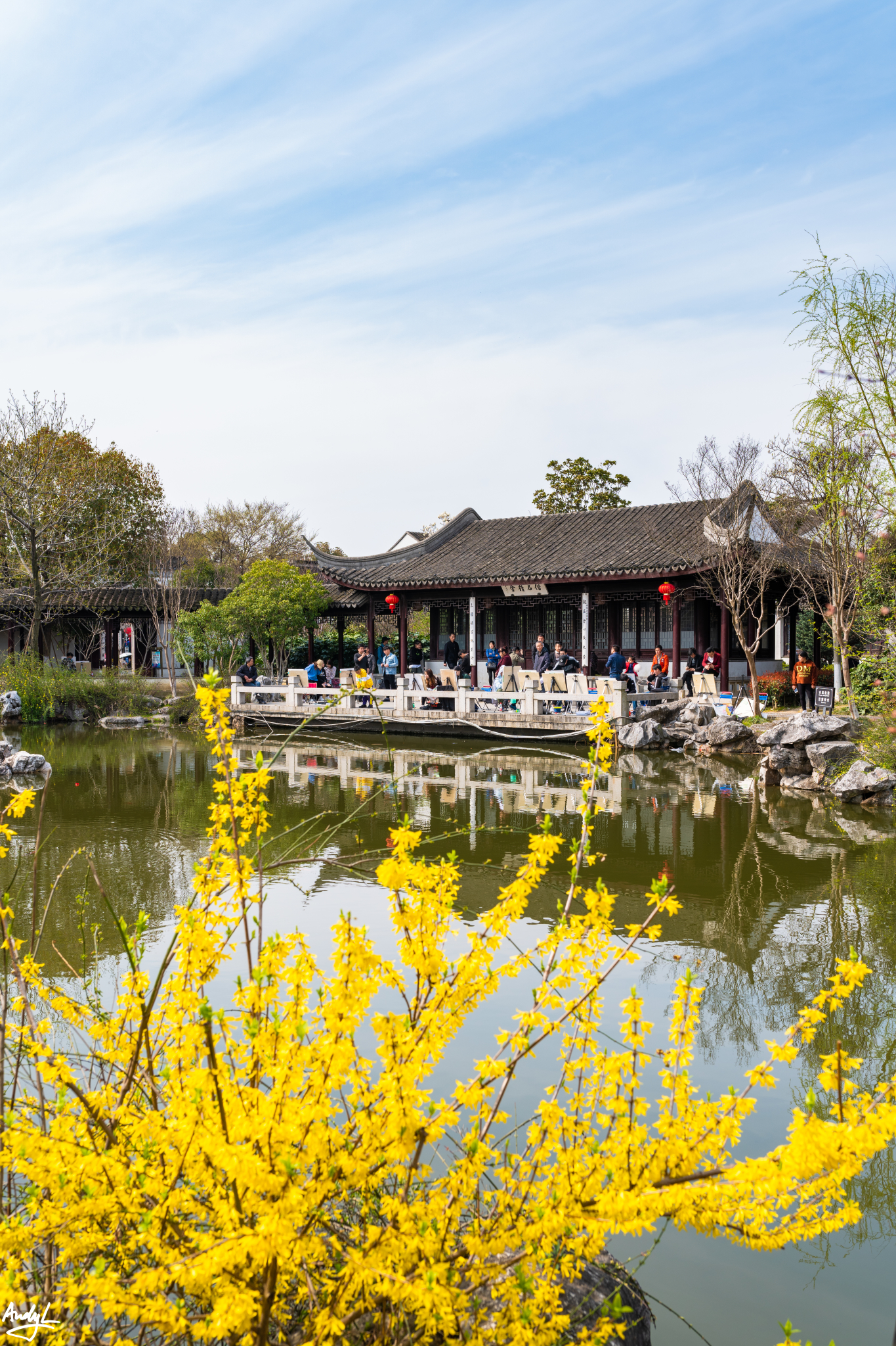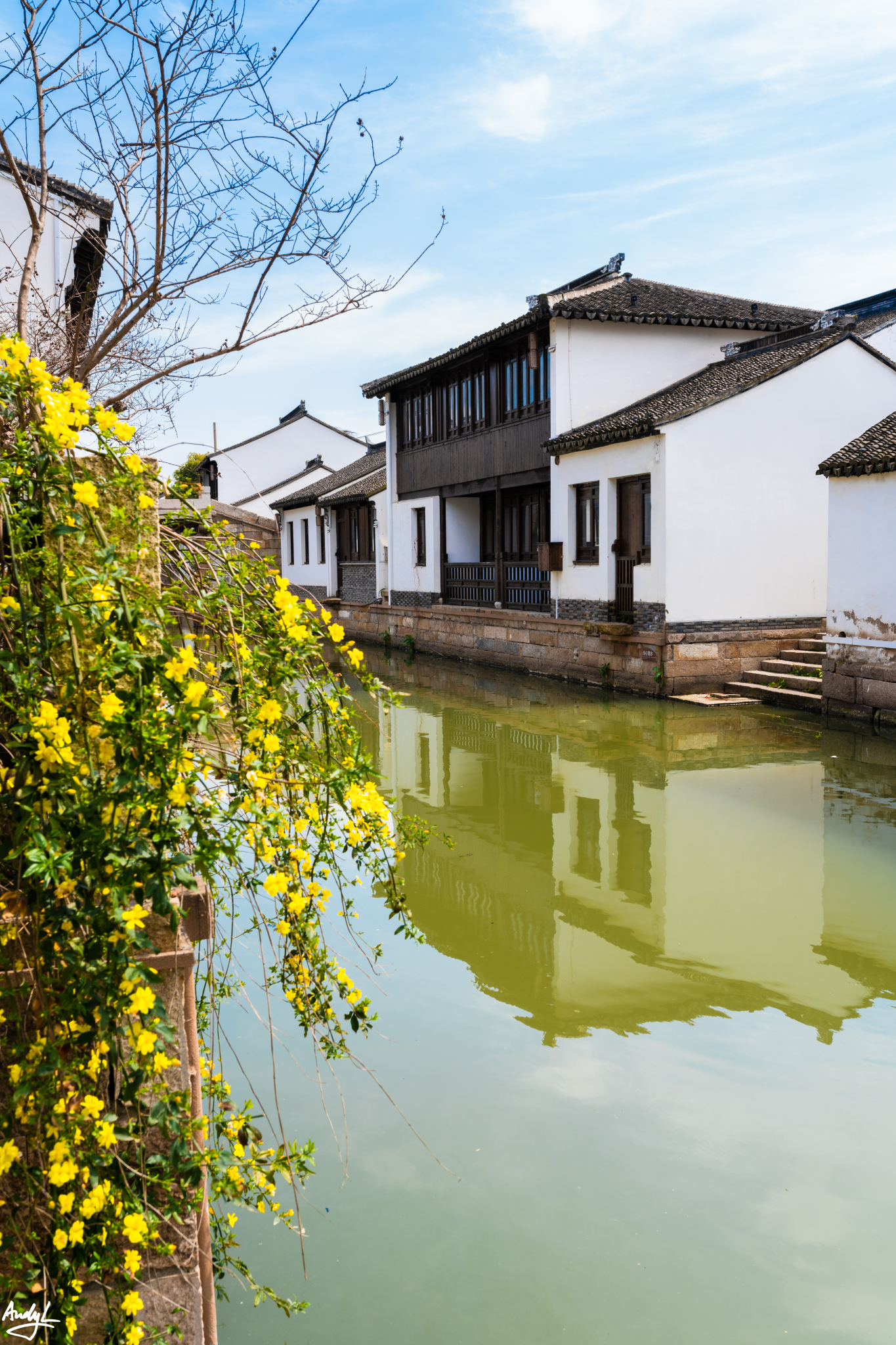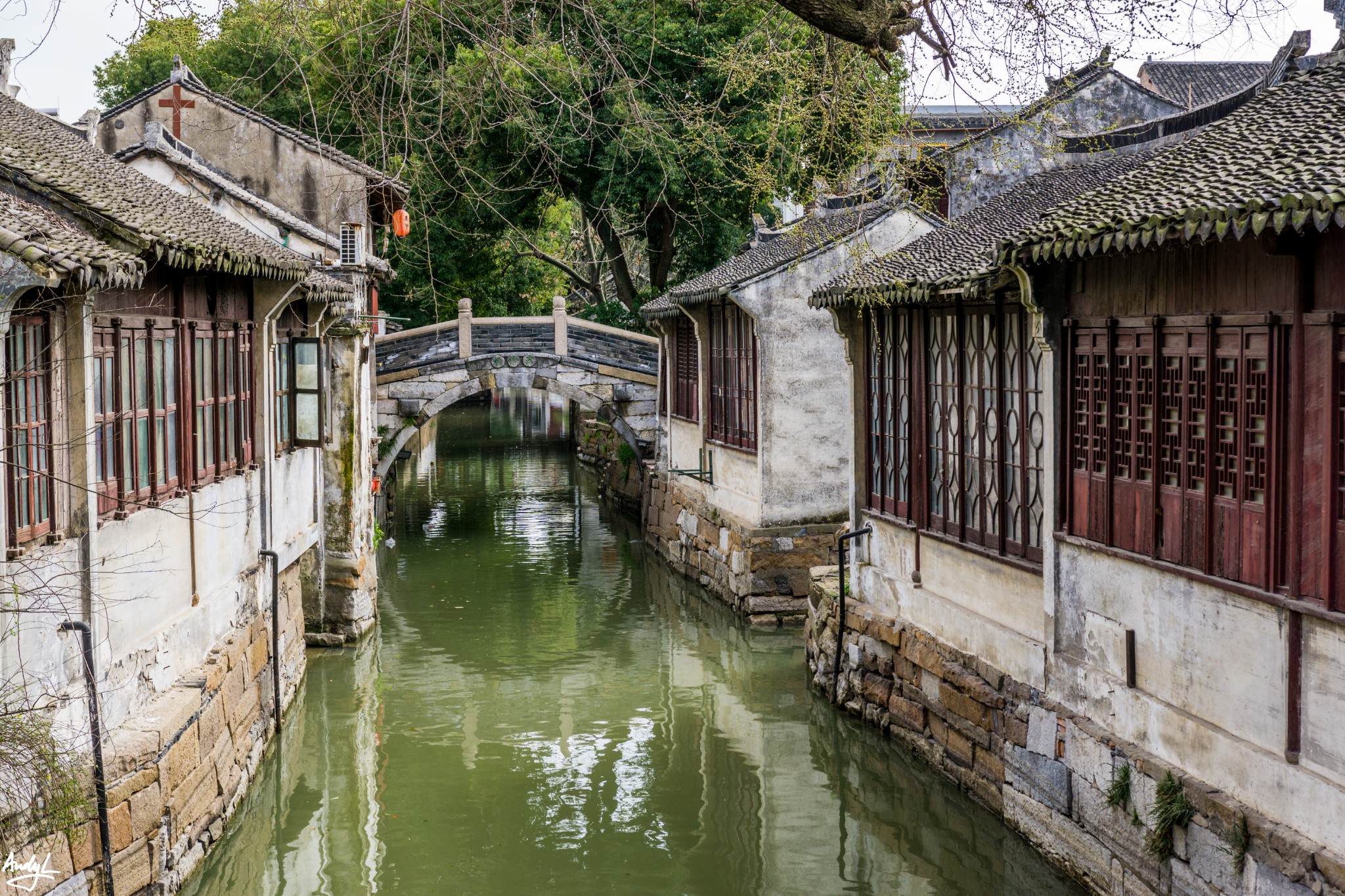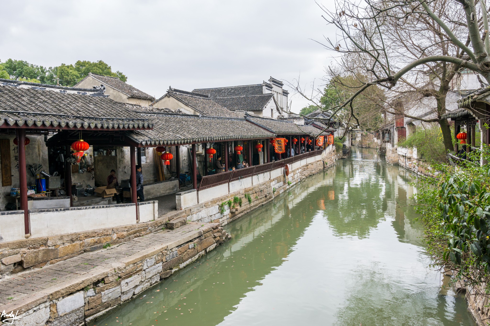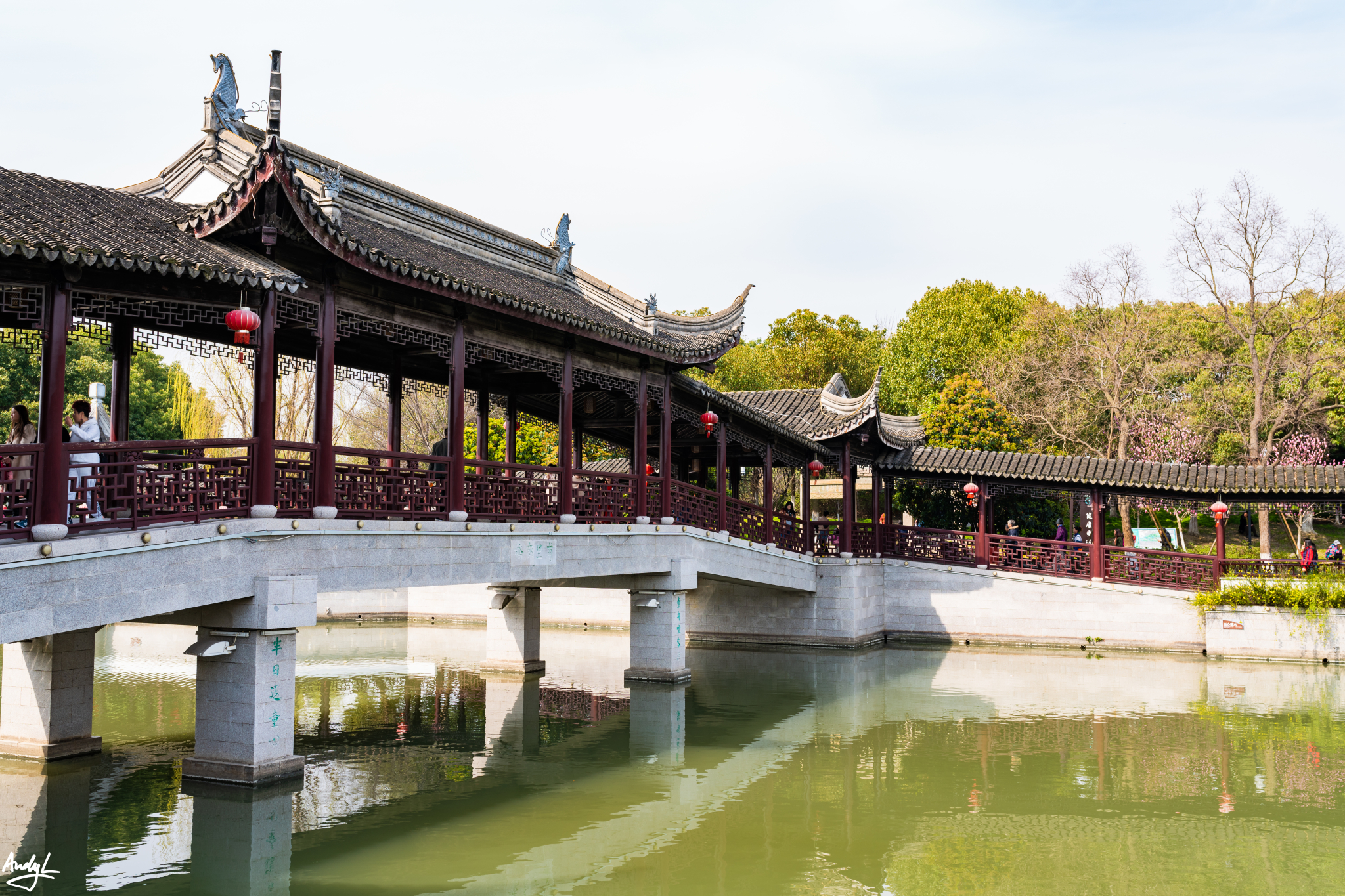 这座长廊,可以说是锦溪古镇的颜值担当,少了这座长廊,也许这里就只是另一个普通的江南小镇。虽然初春季节古莲池里没有莲花,但是在柳树新芽的衬托下,长廊依旧美丽。现在景区的Logo上,这座长廊就占据了最显眼的位置。