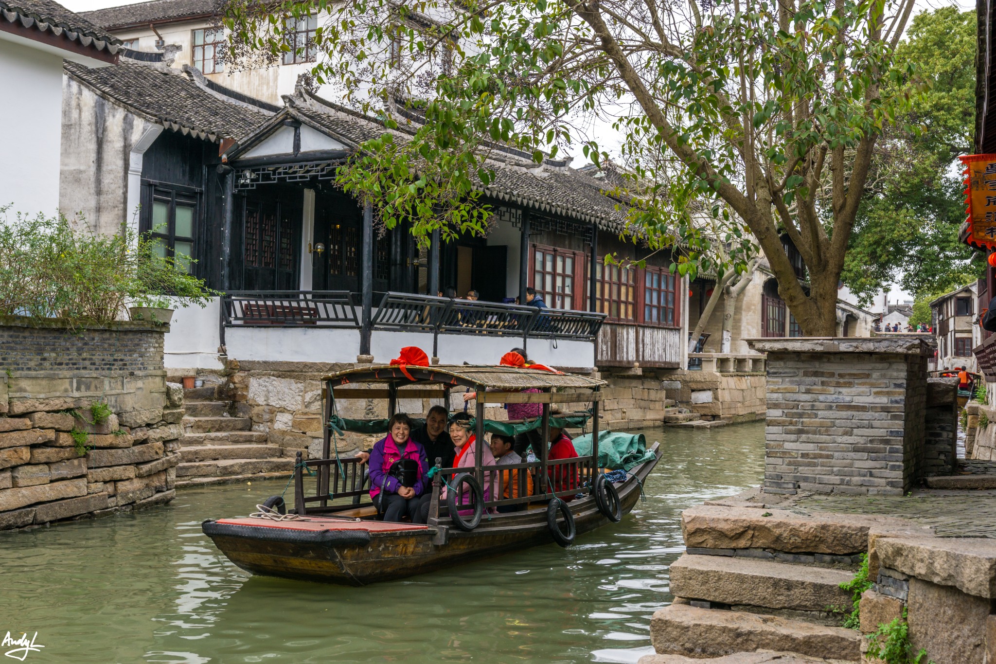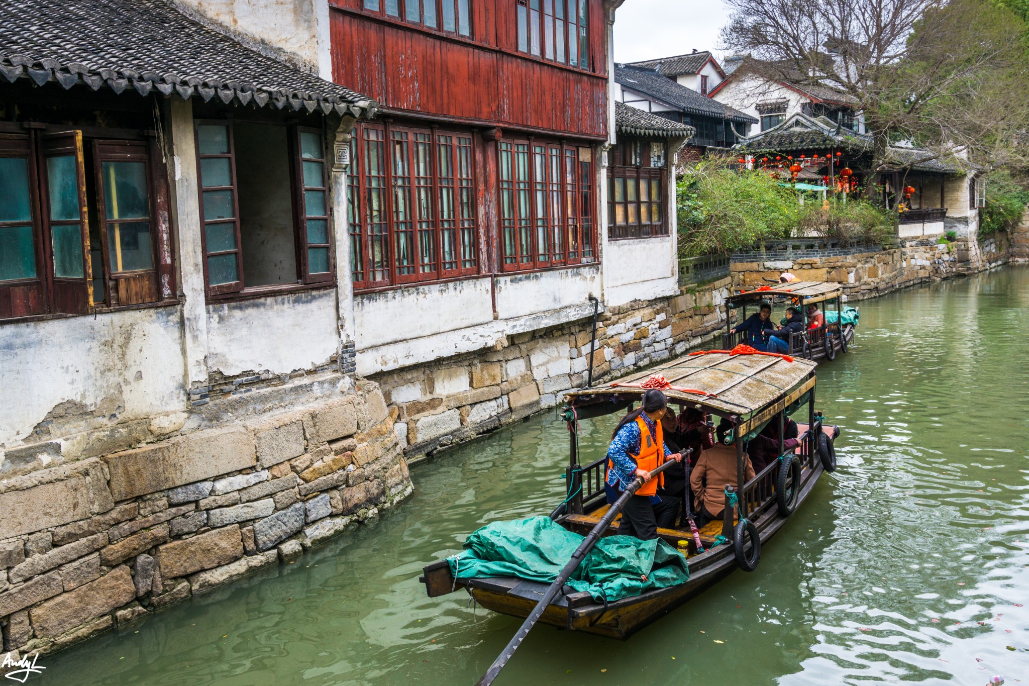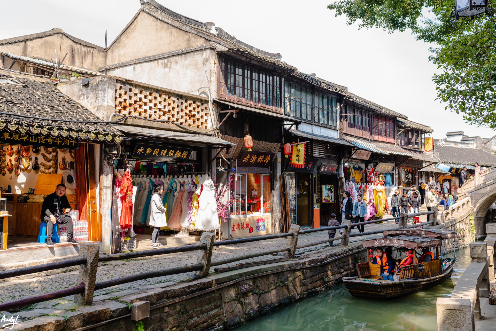 古镇景区外的这条河是整个景区为数不多的观光河道。