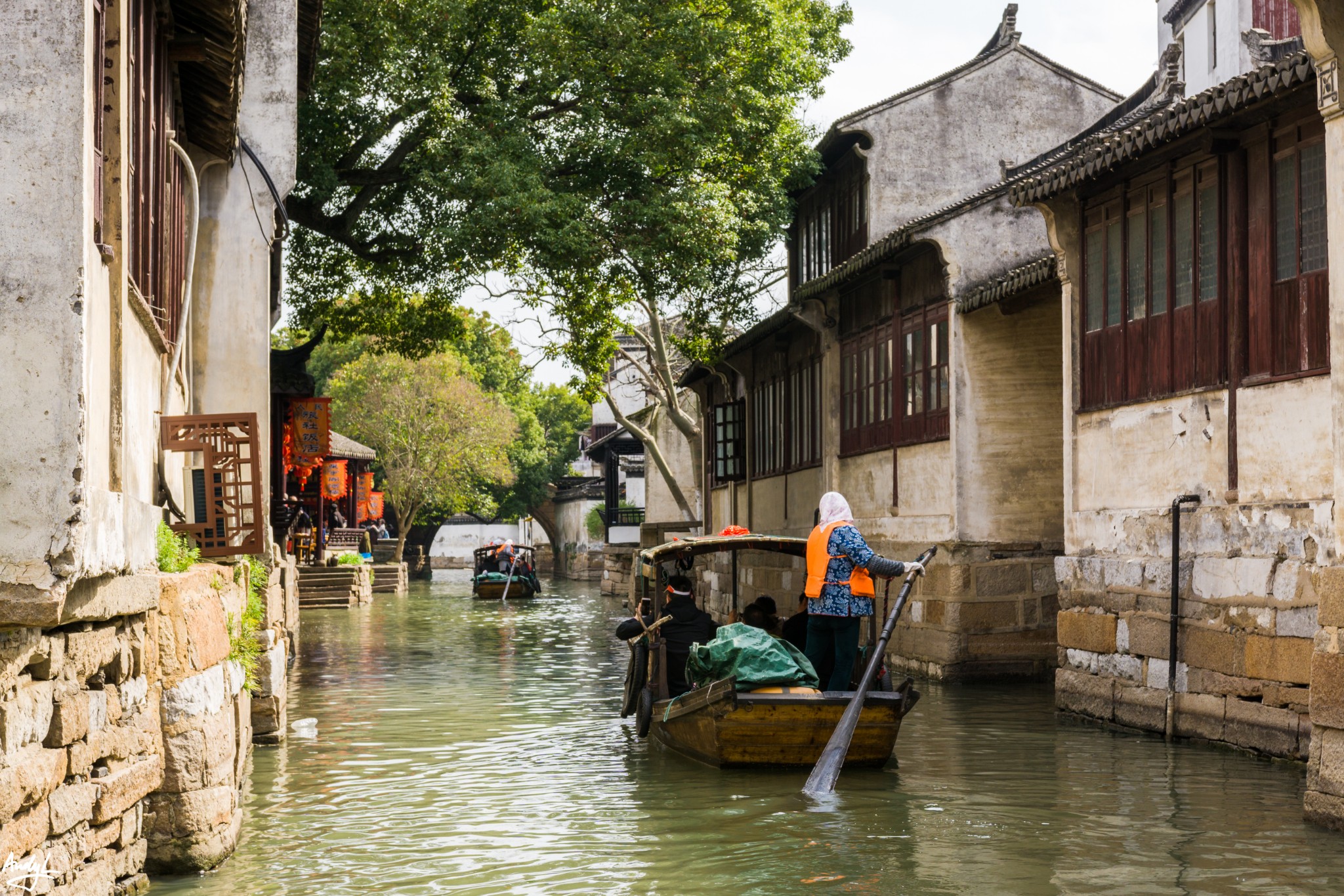 许多来这里的人都愿意乘着小船畅游古镇。