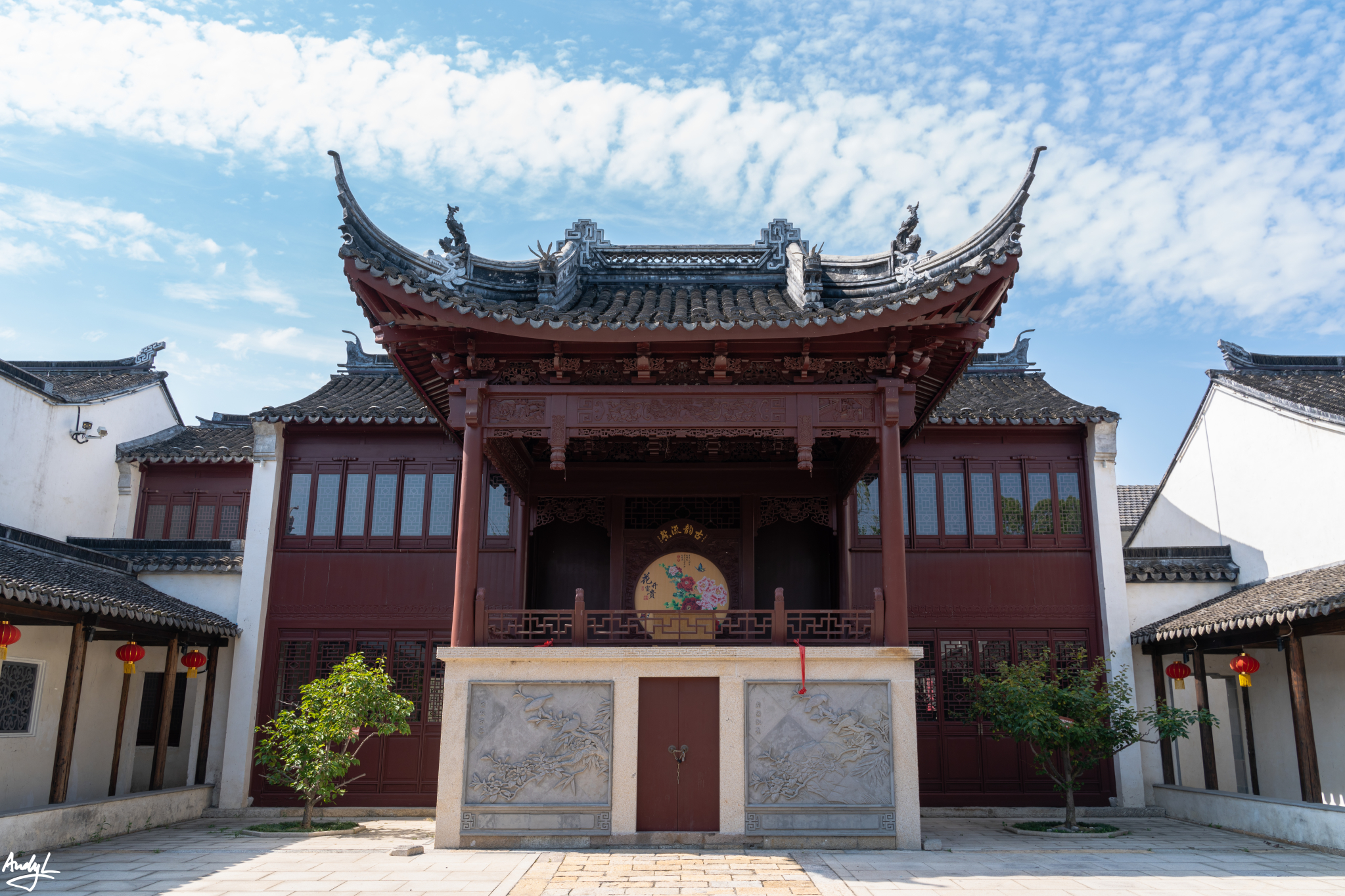 文化园中最显眼的建筑,莫过于这座重建的古戏台。在我去过的江南古镇中,这座戏台的规模可以说是最大的。从远处看,这座戏台十分宏伟,飞檐斗拱相当精美。