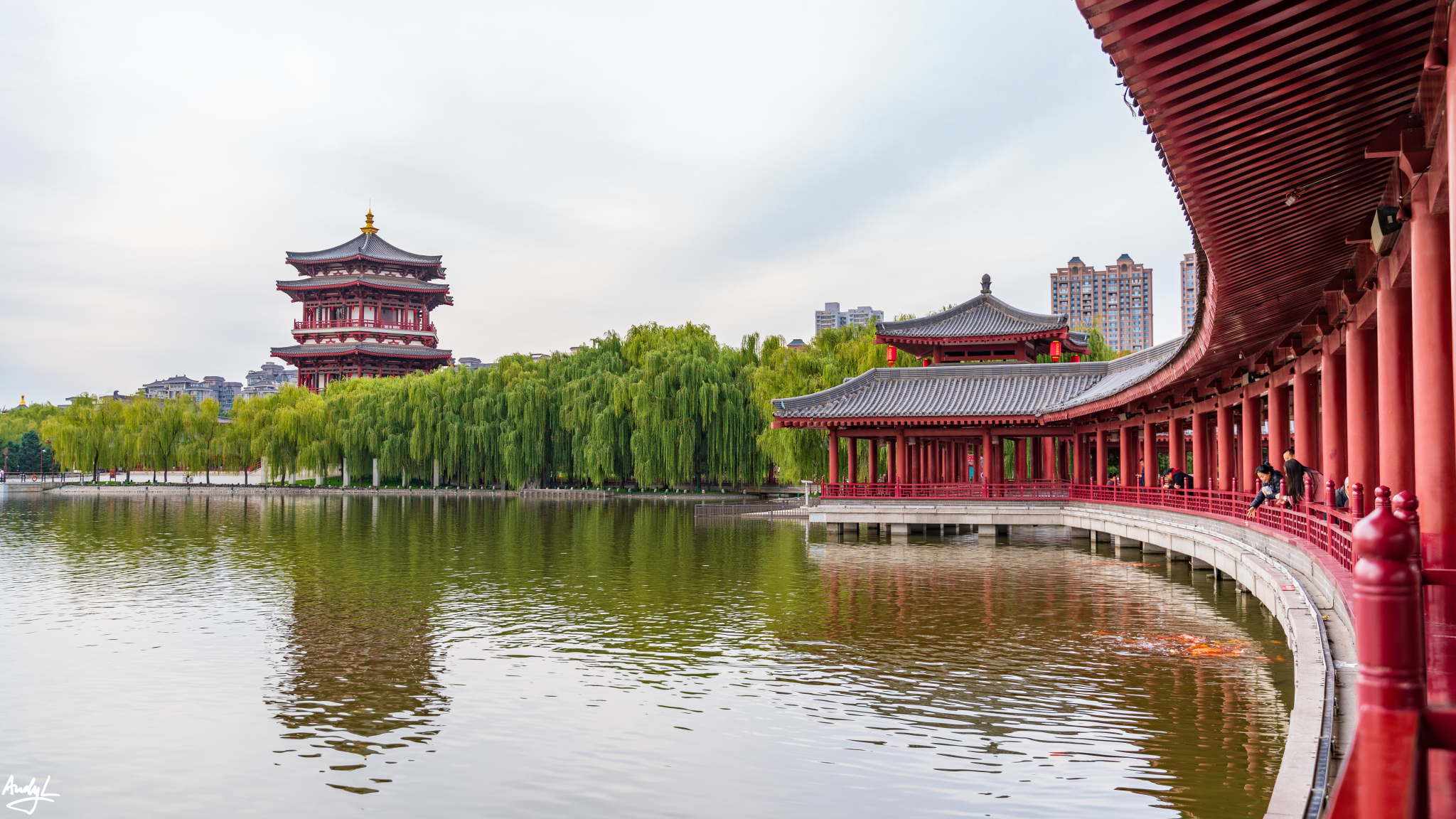 这里其实几年前就想来,可是由于时间和天气的原因,当时没有成行。这次因为时间有限,所以直奔主题,来到了大唐芙蓉园。大唐芙蓉园是国内第一个仿唐主题公园,以唐代的皇家御苑——芙蓉园为蓝本修建。位置也与当年曲江池边的芙蓉园原址比较接近,略微靠北。