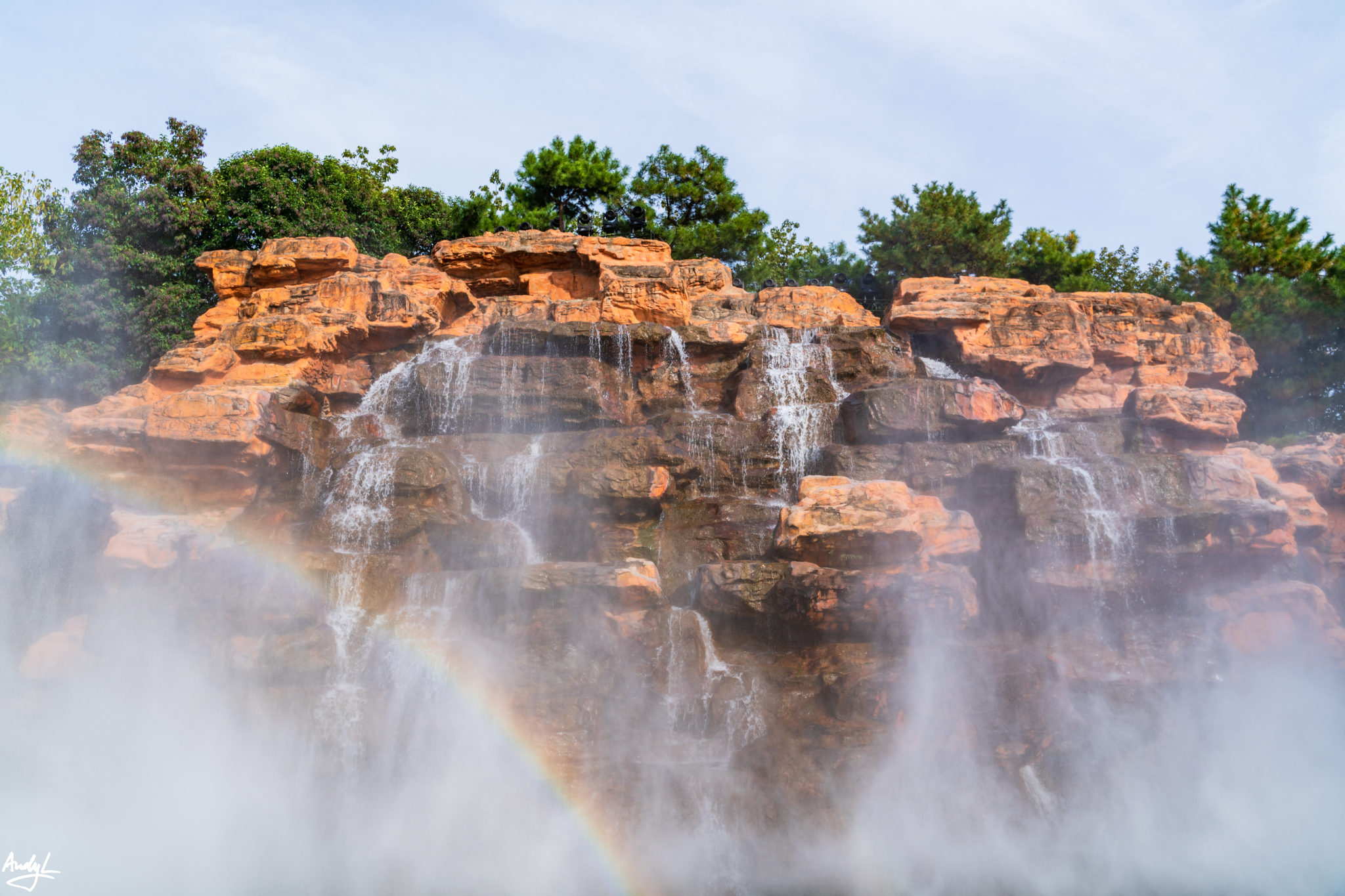 在园内的大多数地方,你都能看到这个建筑。紫云楼前的湖面上定时会有喷泉表演。