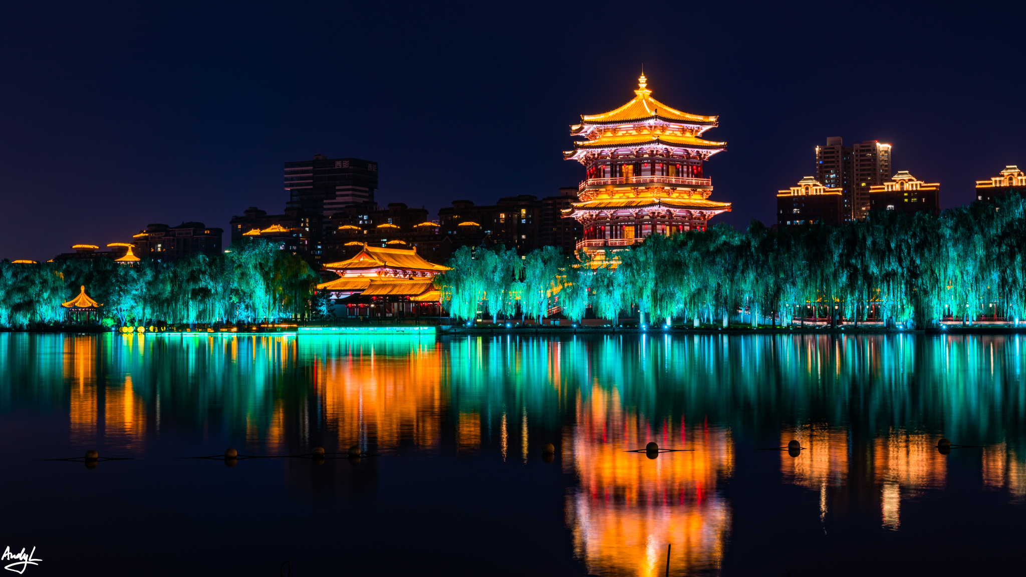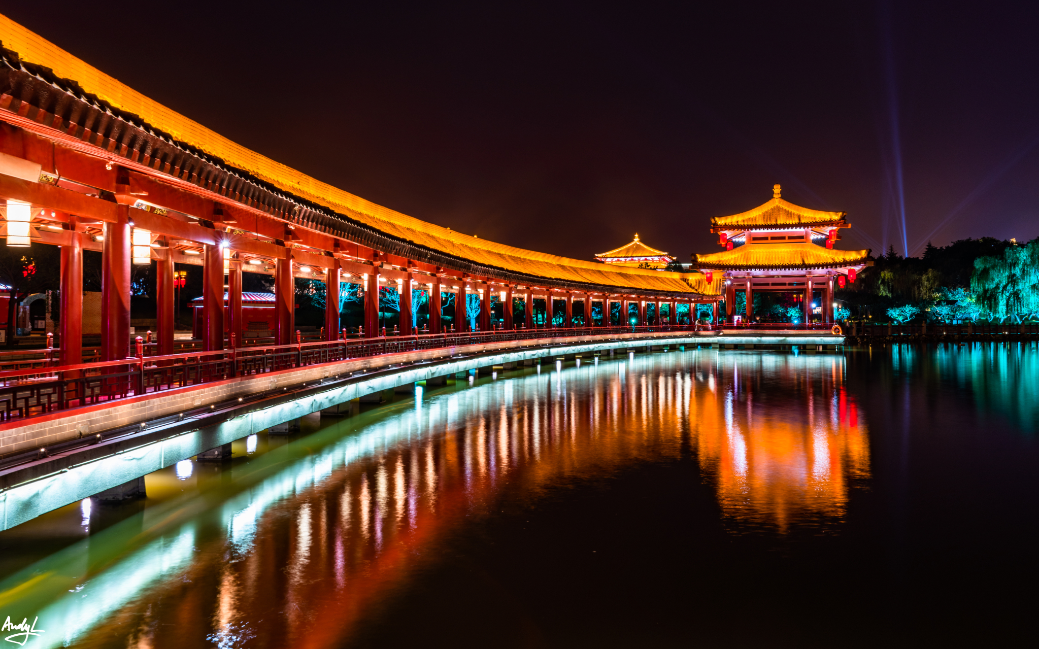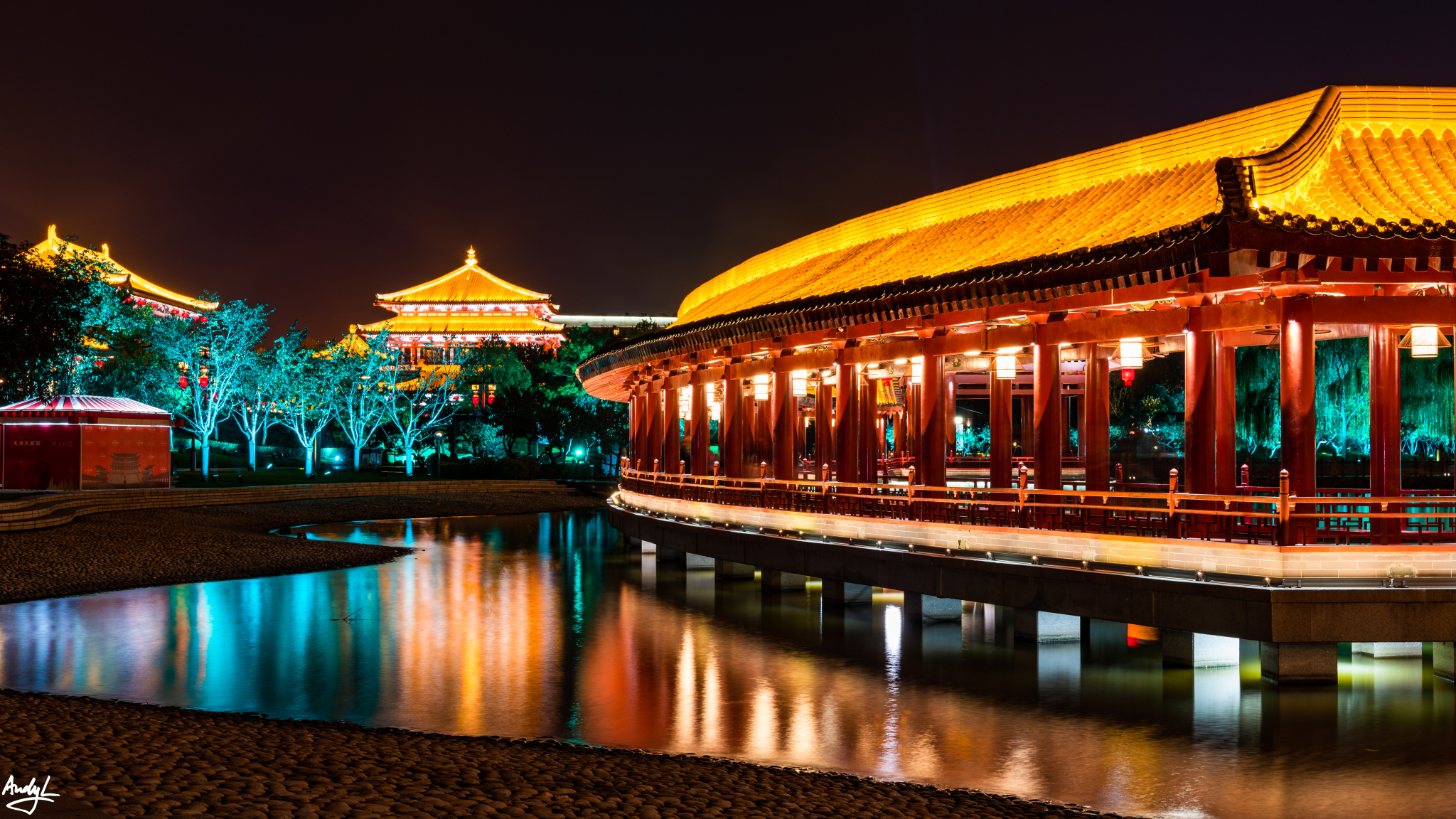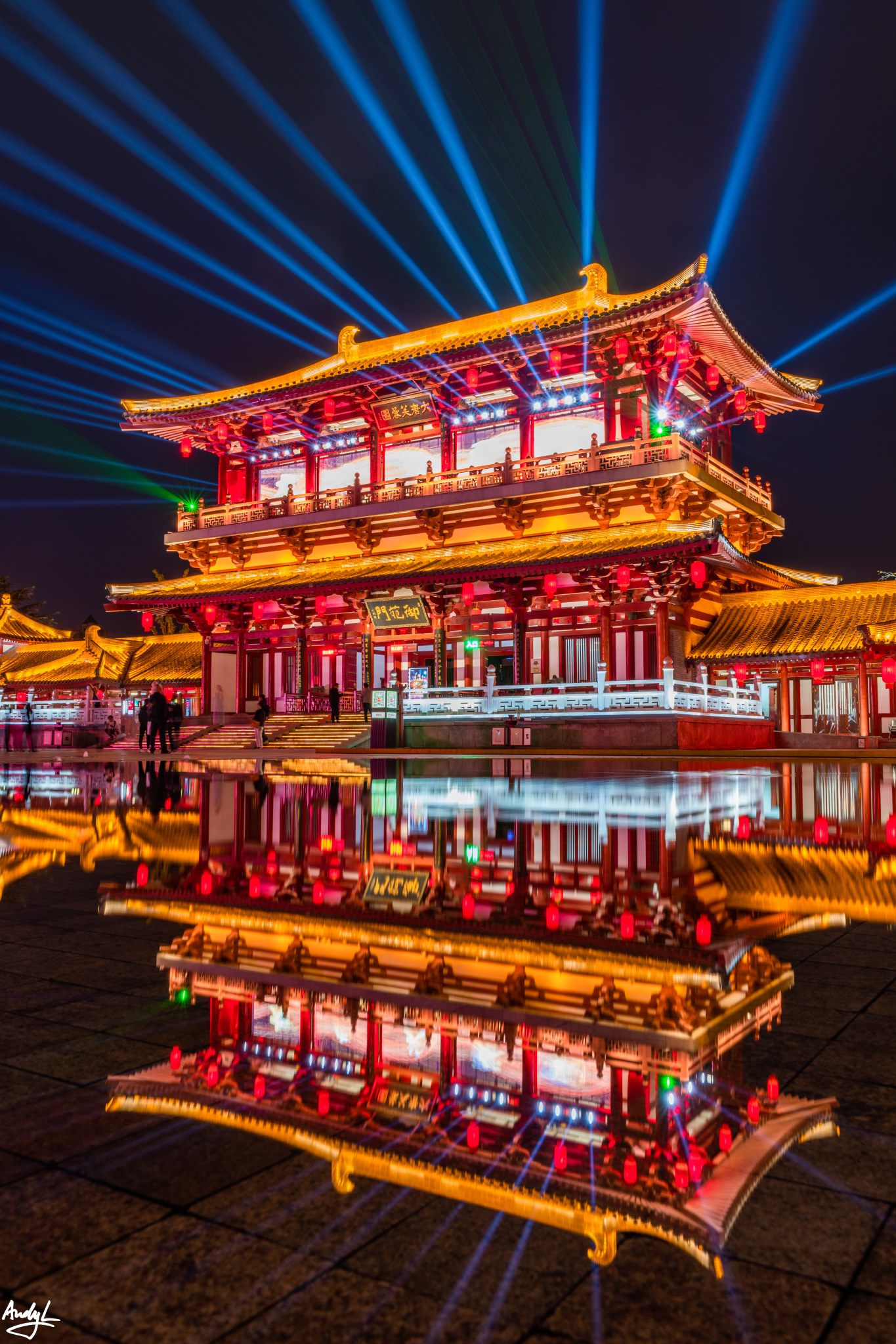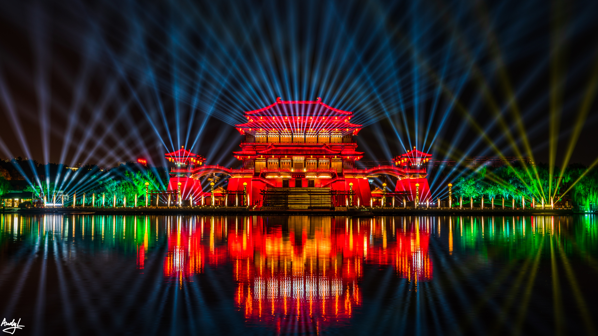 紫云楼区域在晚上会有梦回大唐的主题表演,因为时间的关系,这次并没有买票观看。表演之前,紫云楼前的广场会清场,这时如果站在湖对岸是最佳的观看角度。