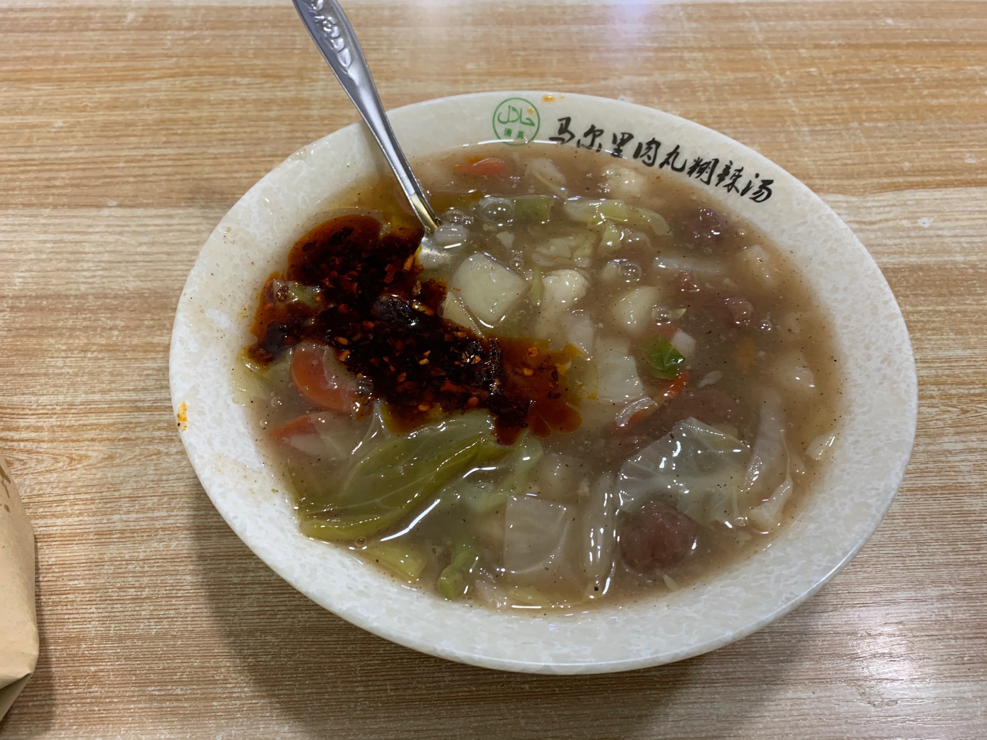 胡辣汤里面料不少,荤菜以肉丸子为主。对于初次尝试的我而言,它的口味并没有想象中那么重。