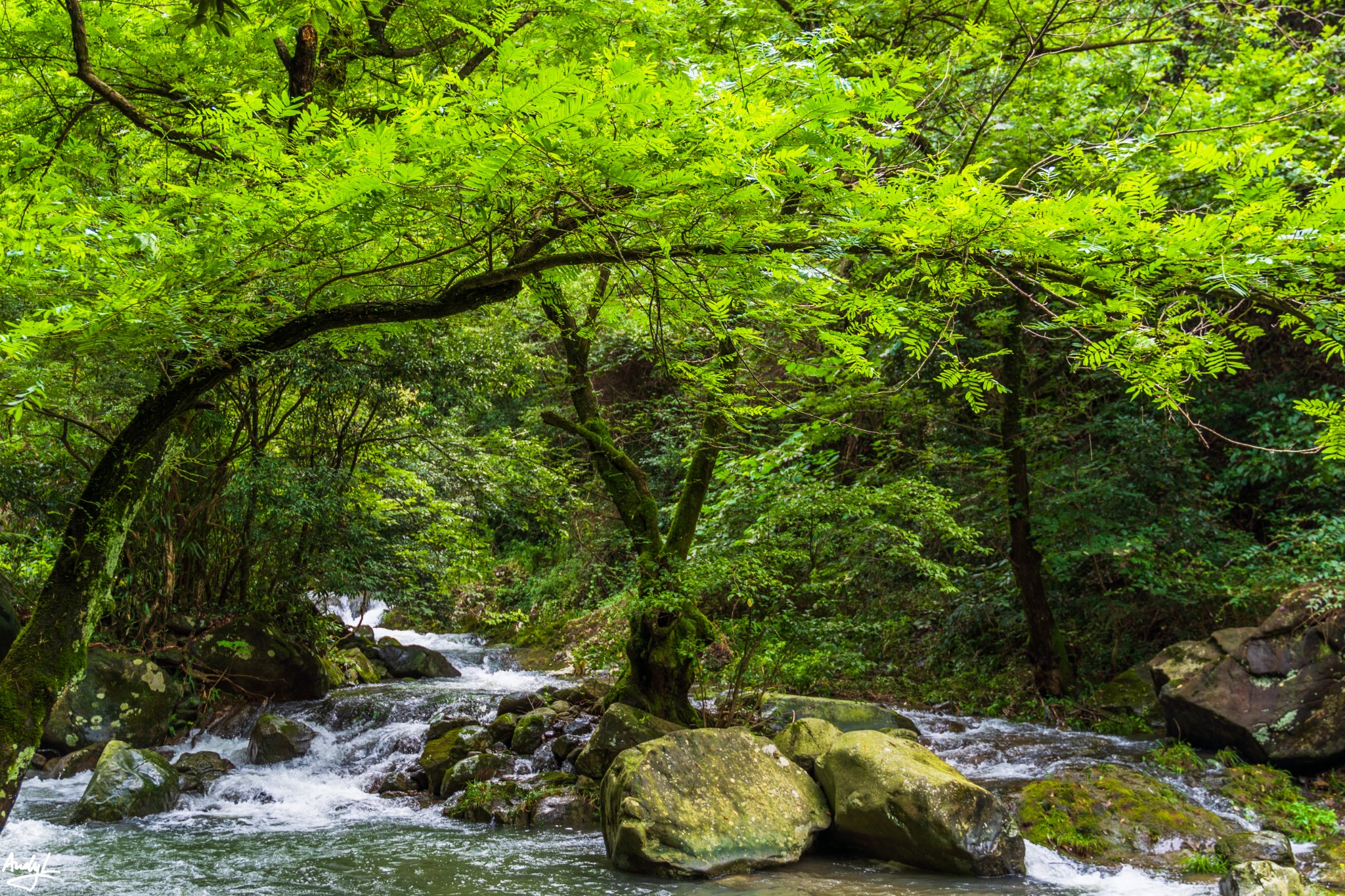 过了三隐潭之后,山体落差就没有那么大了,基本也没有什么的大的瀑布了。接下来就是一段还算平坦的下山林荫路。