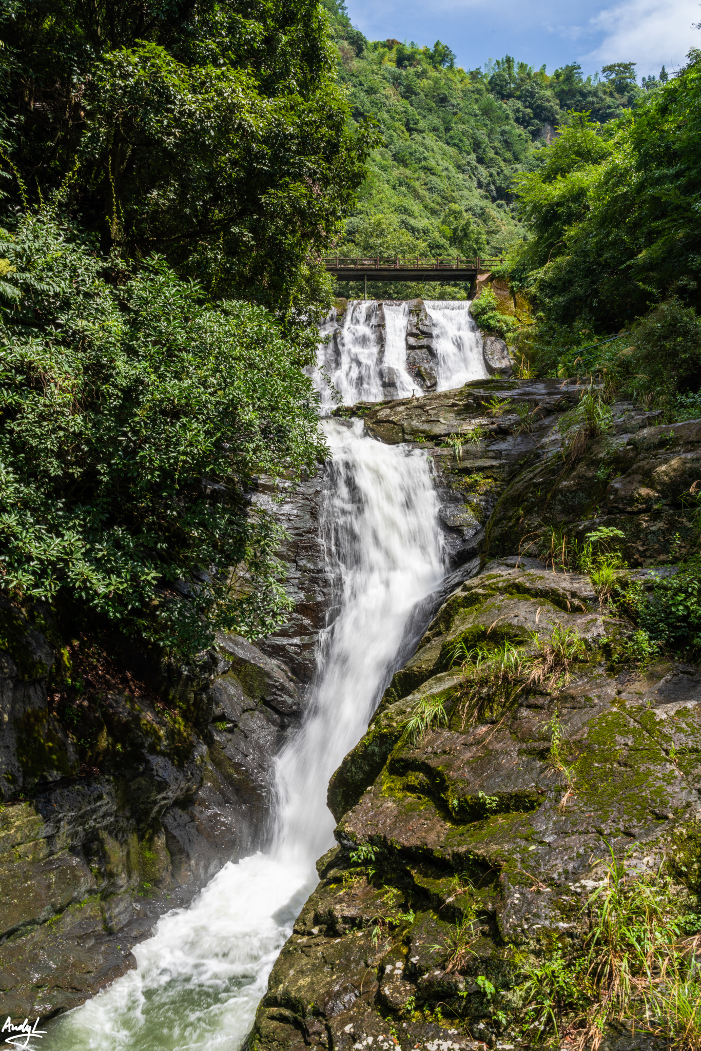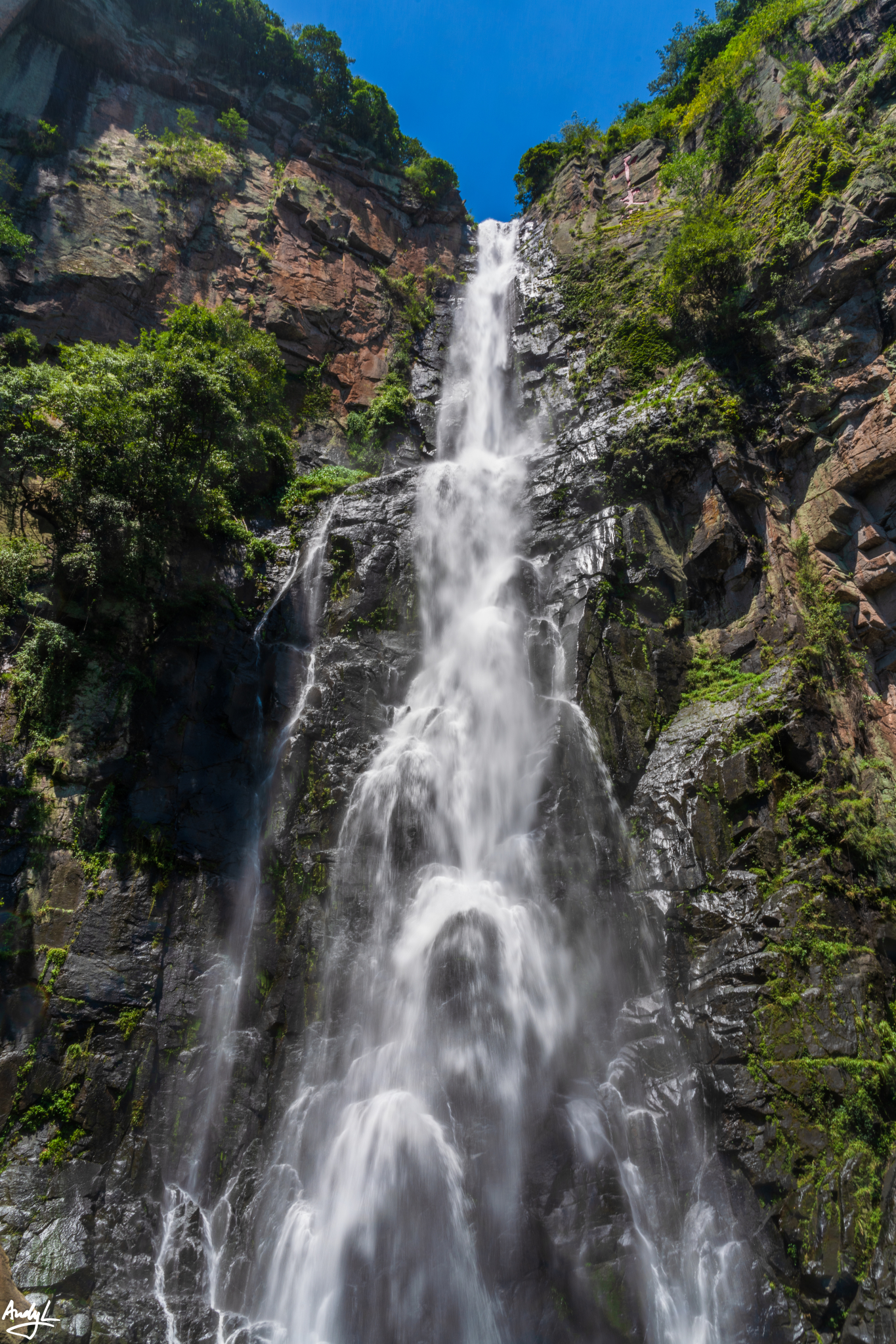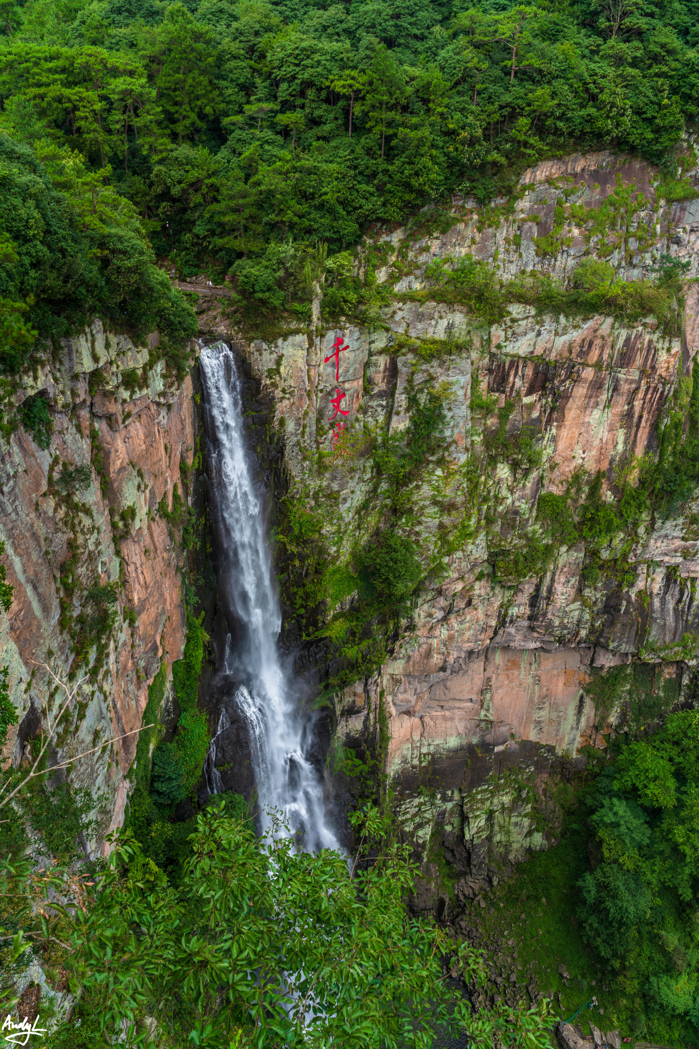 从小火车的终点站出来,稍微走一段路,就能看到千丈岩,它其实是一个瀑布,落差极大,有将近200米,边上都是悬崖峭壁,非常壮观。