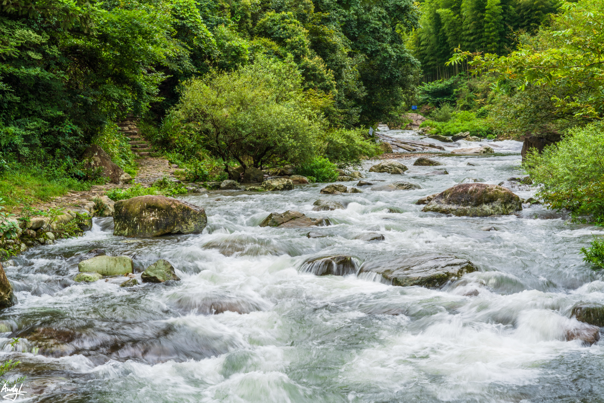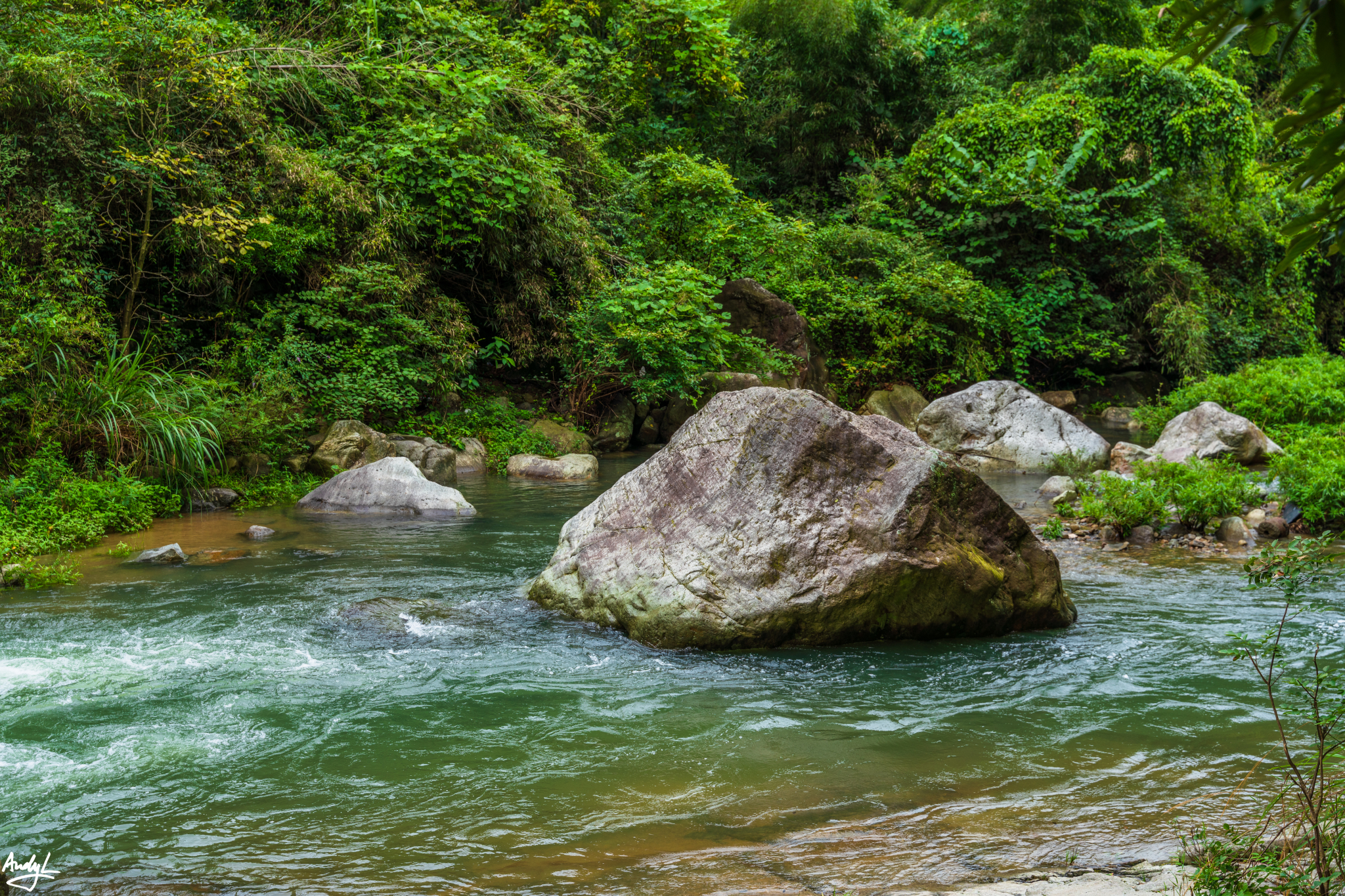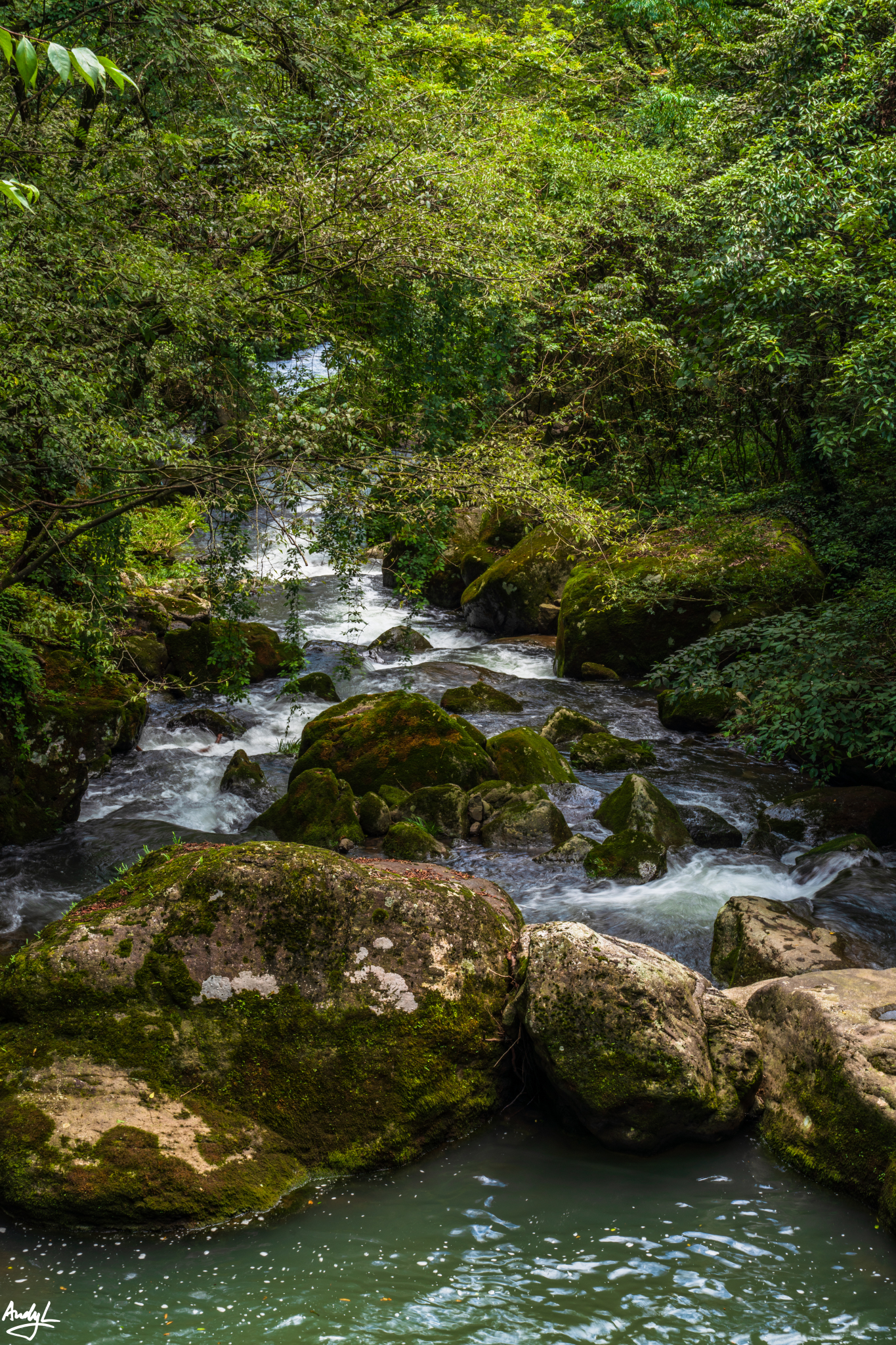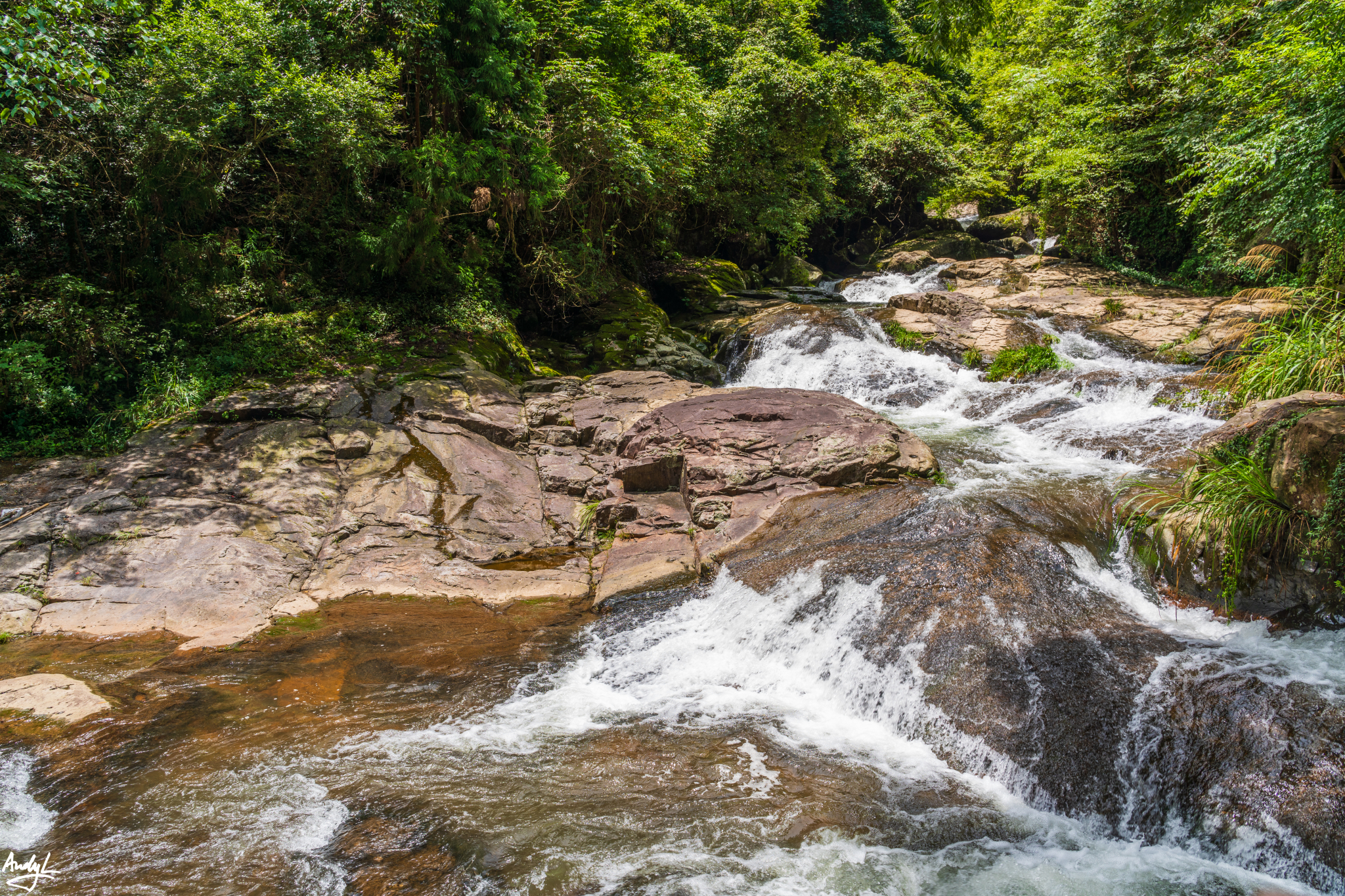 由于我们到之前刚刚下过暴雨,所以小溪的水量非常大,甚至某些地方可以用汹涌来形容。原本的溪水应该是清澈见底的,但是大量的雨水卷起泥沙,所以有些浑浊。