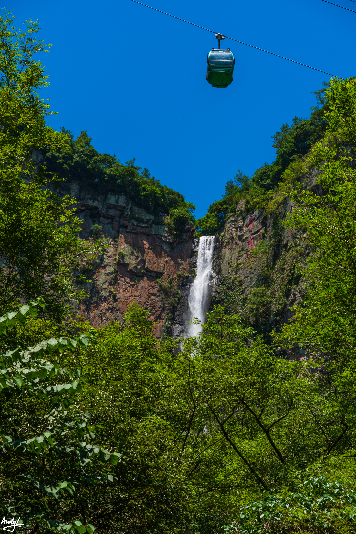 离开千丈岩就要继续上山,可以选择步行上山,也可以乘坐缆车,顶着正午的烈日,看到高耸的悬崖,我们果断放弃了步行的想法。