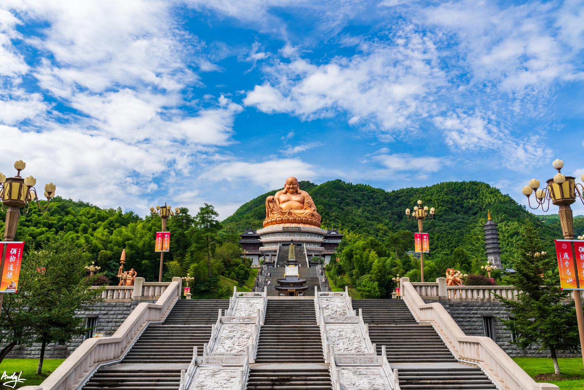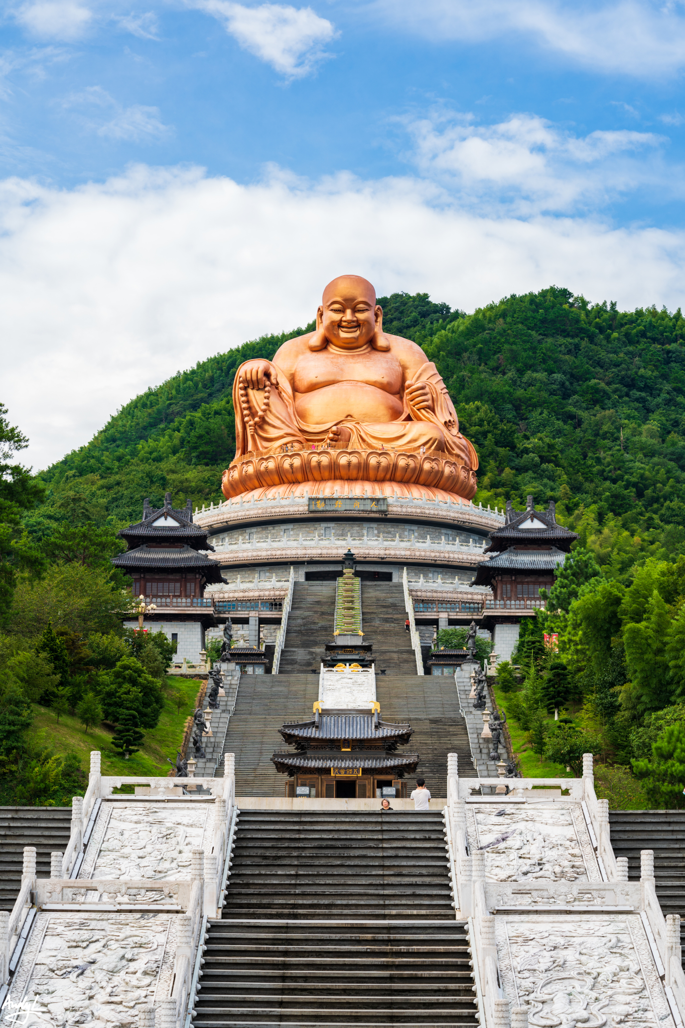 雪窦寺最显眼的还是依山而建的那座弥勒佛铜像,原本就高大的佛像,被建在了山坡之上,有一种俯瞰众生的感觉。