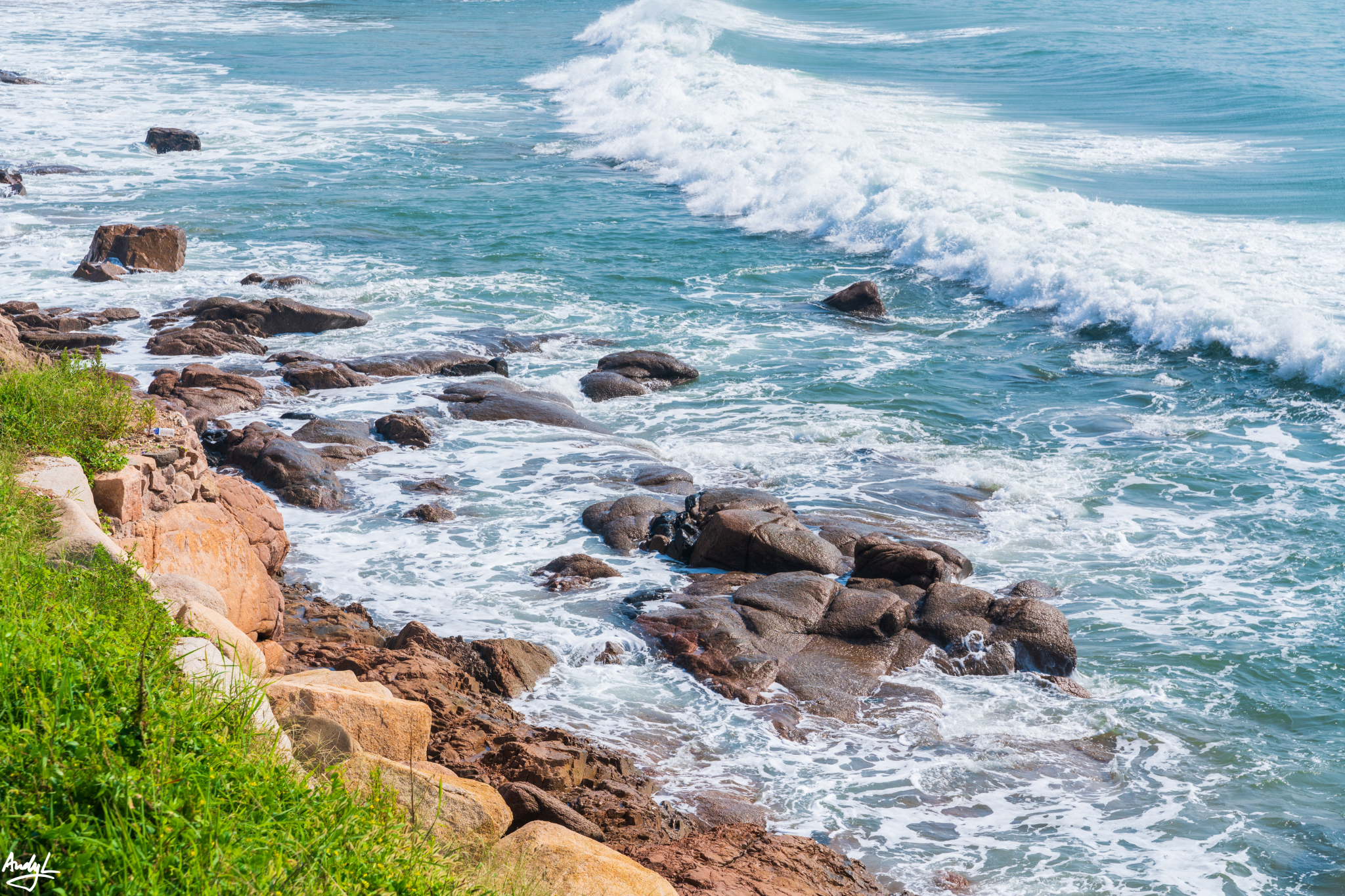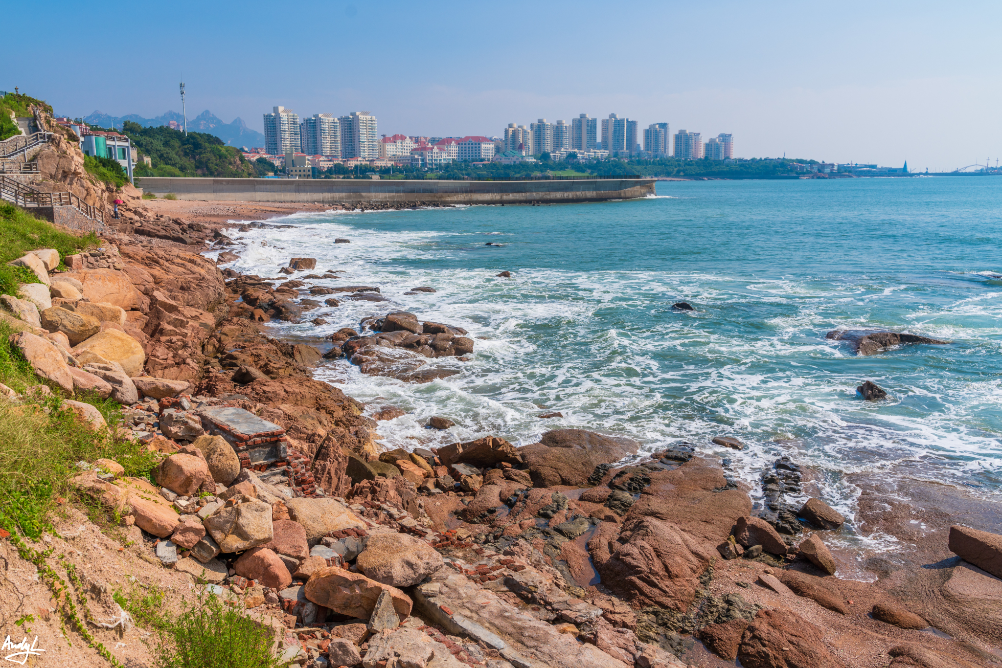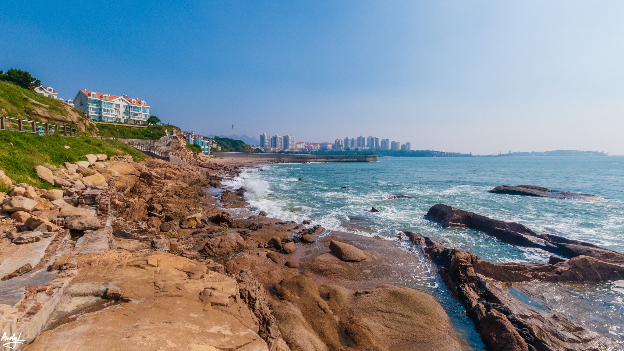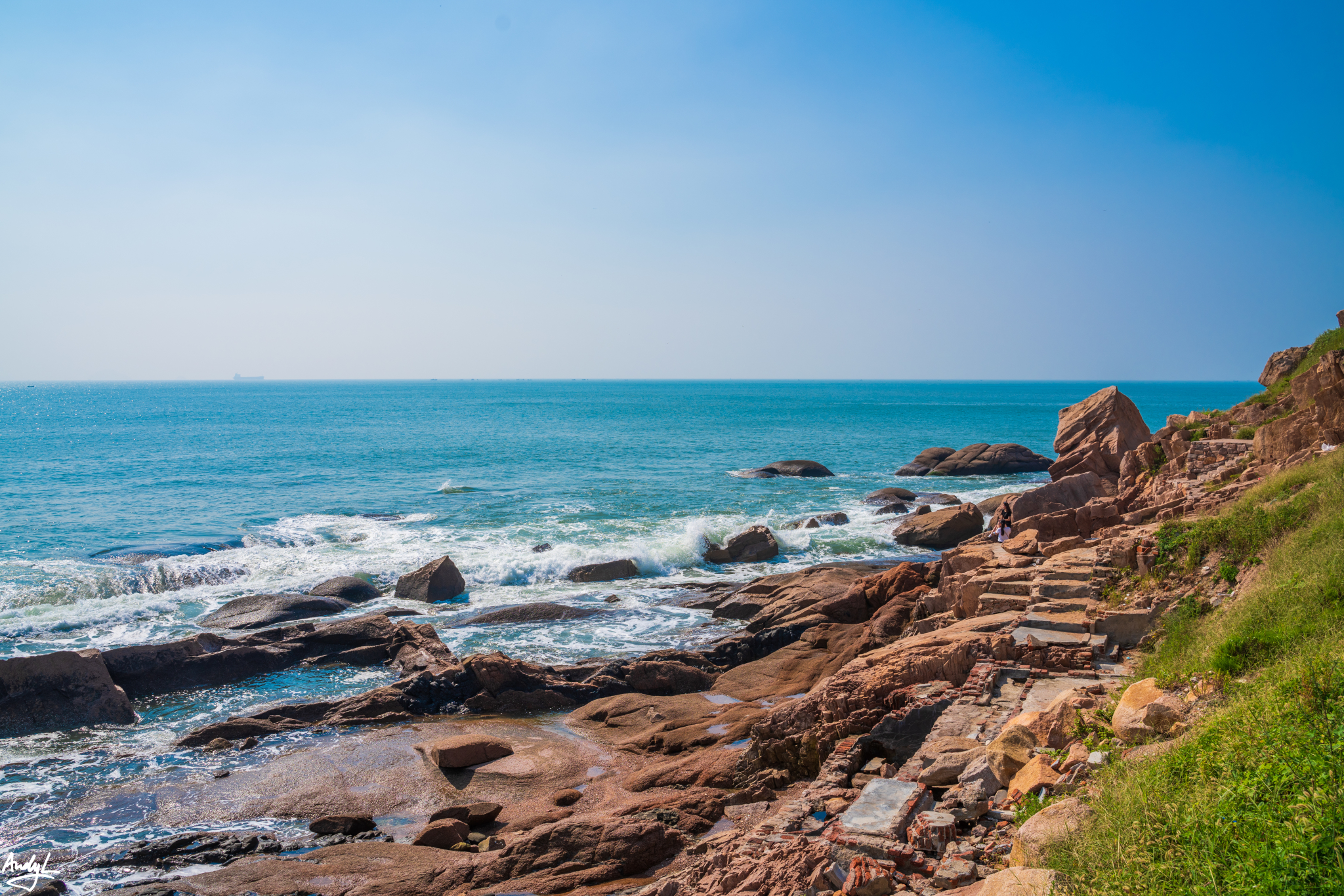 这里的海岸非常布满礁石,无论是天气还是海水都非常漂亮。