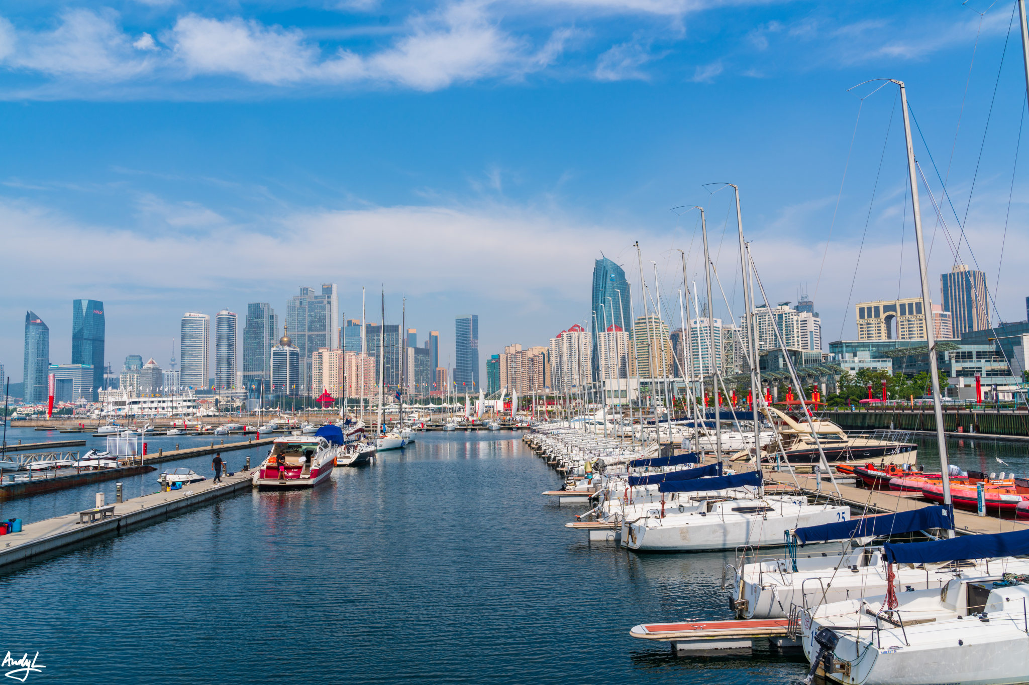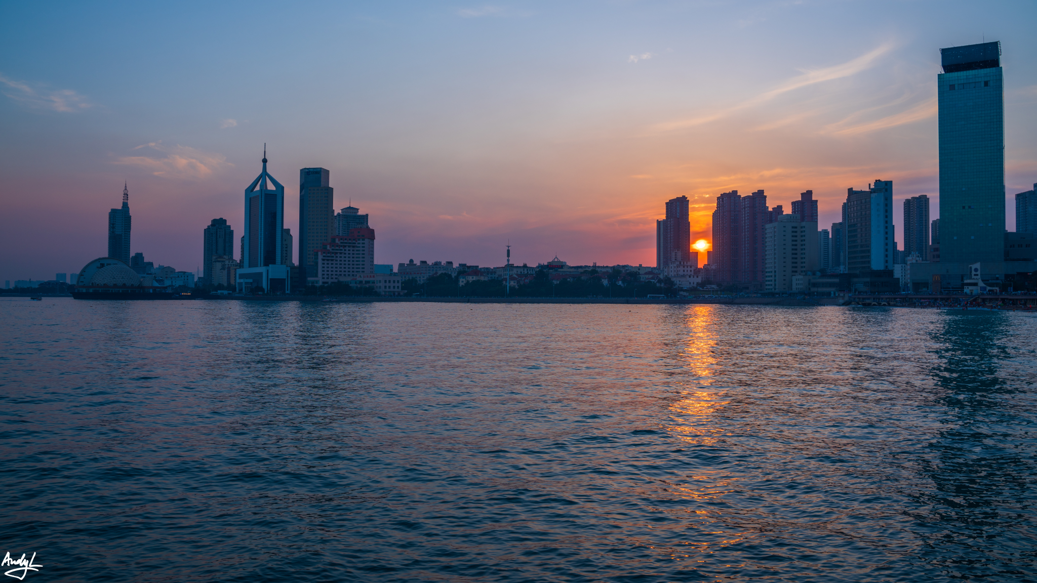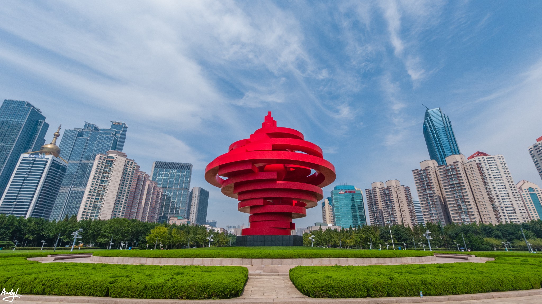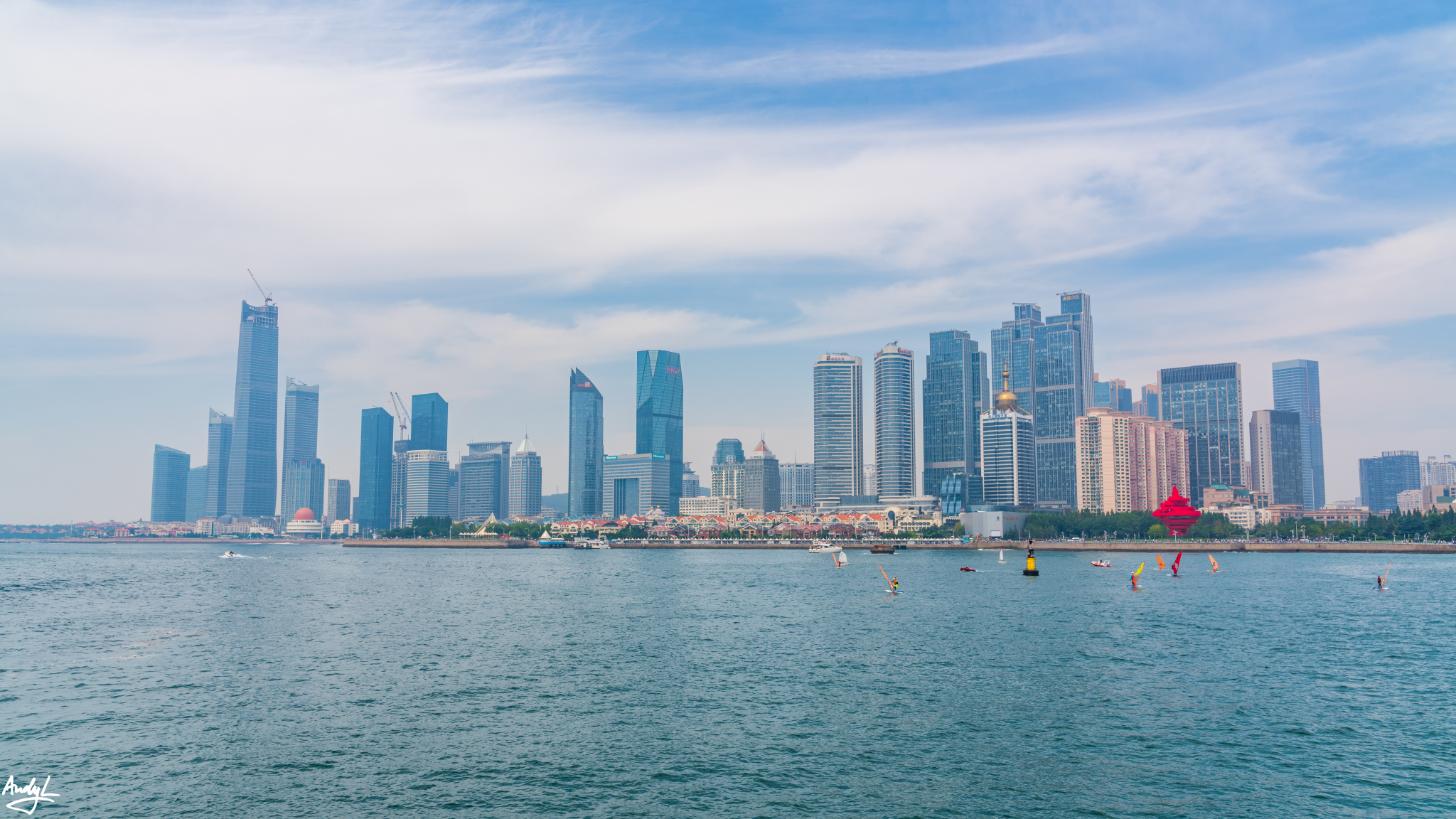 五四广场前是广阔的浮山湾,而他的背后则是青岛最具活力的海岸天际线,青岛几乎所有的摩天大楼都汇集于此