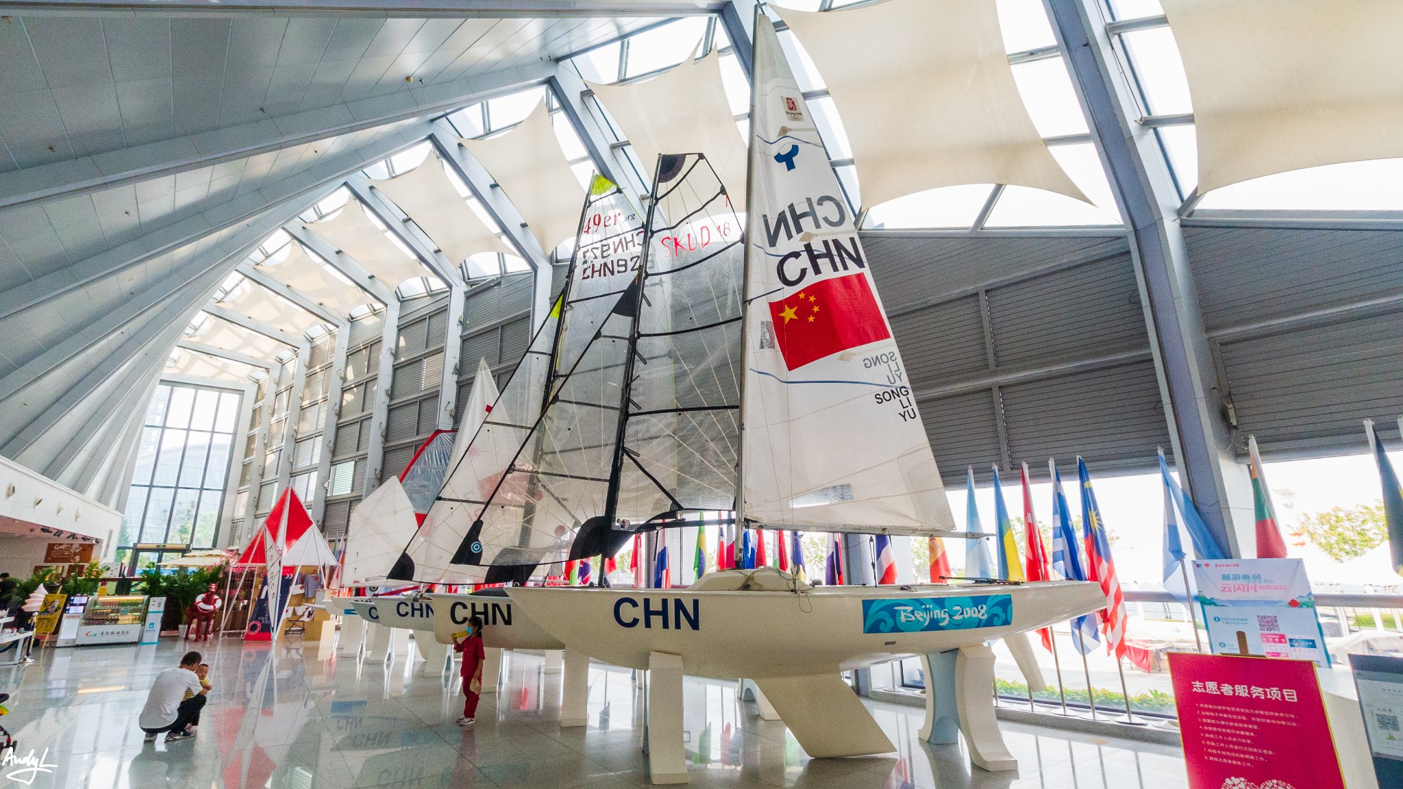 奥帆中心的东南角,有一座奥帆博物馆,这里纪录了当年奥运时的各种比赛用品,包括比赛用船、奖牌等等,不但介绍了08年奥运会的各种信息,也系统地介绍了奥运帆船比赛的发展史。