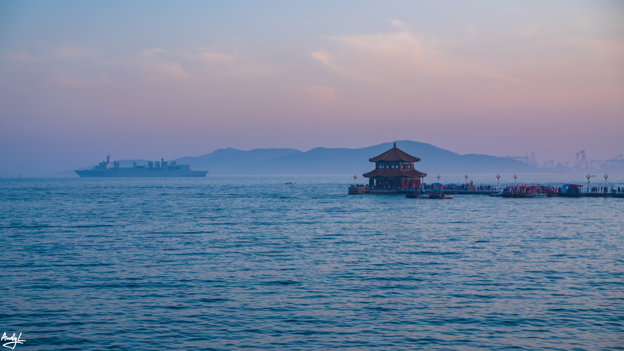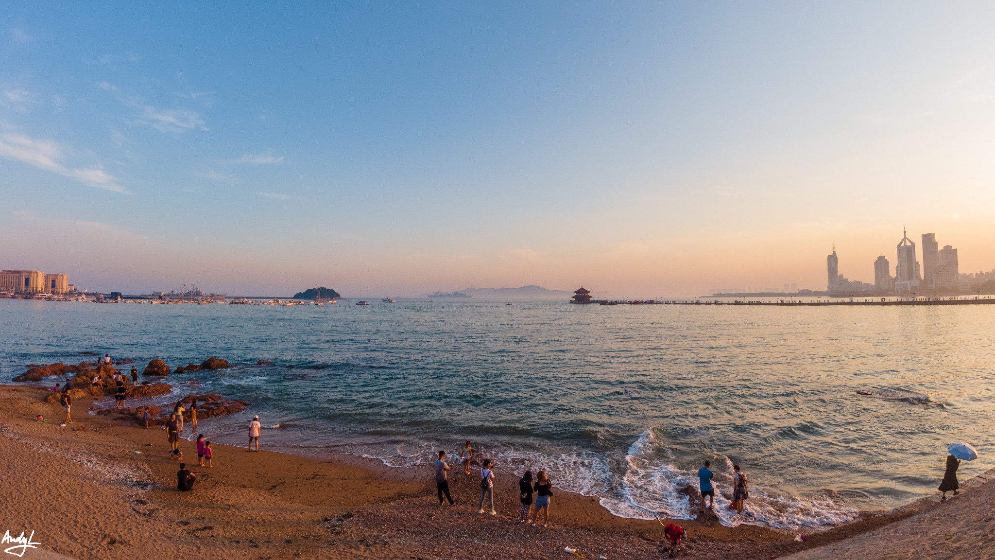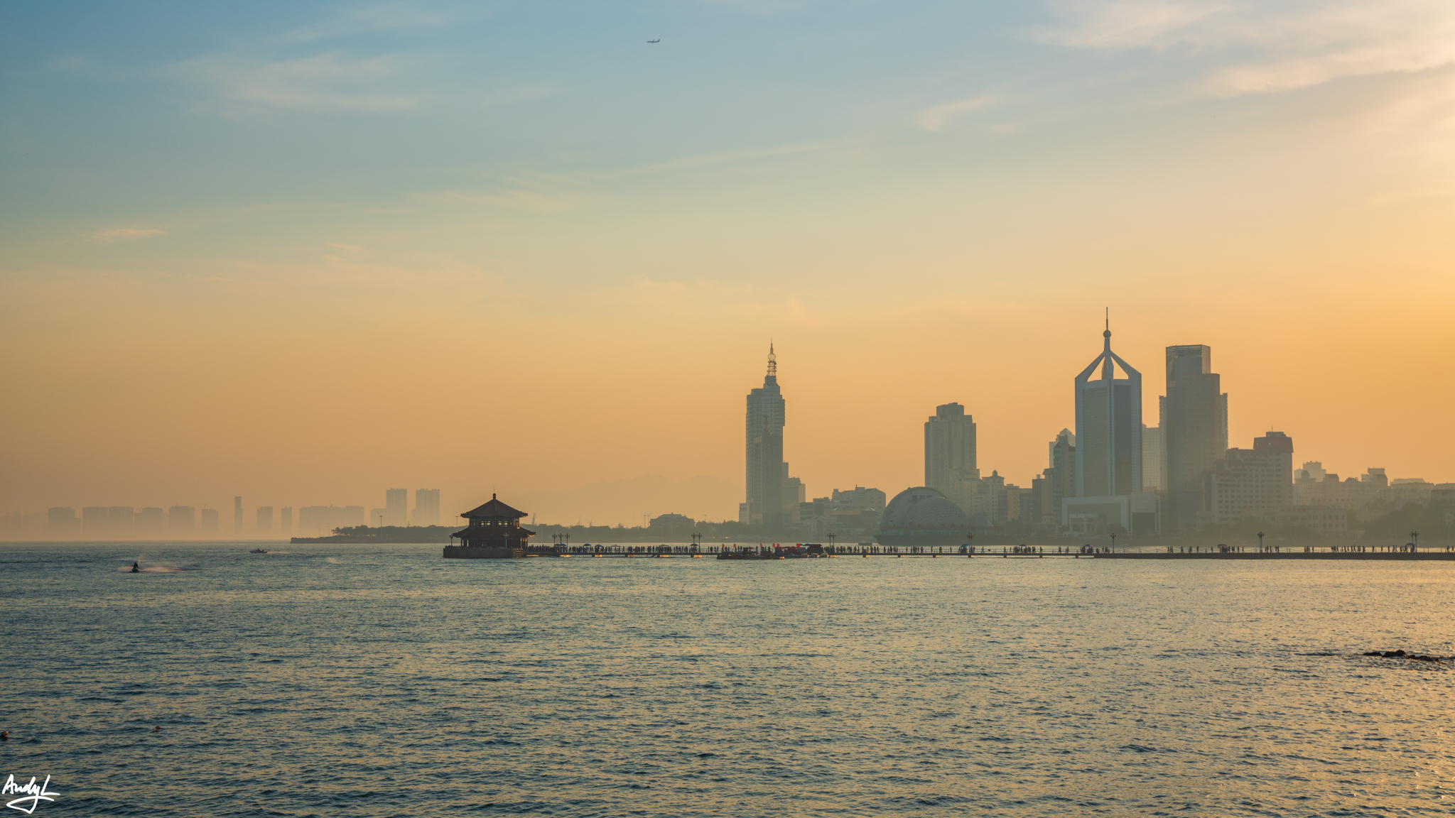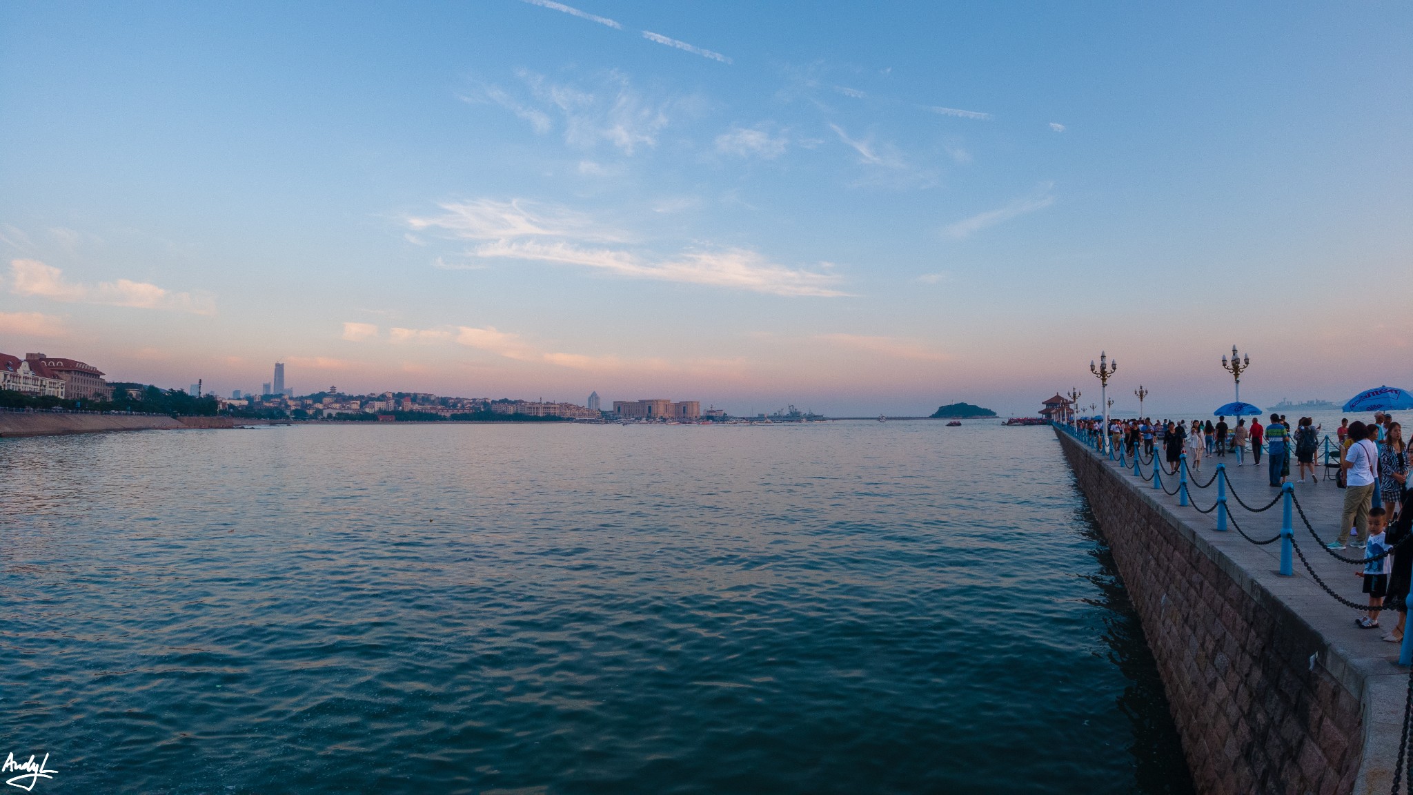 个人认为拍摄栈桥的最佳角度还是远拍,真的走到栈桥上,就只能排到熙熙攘攘的人流了。