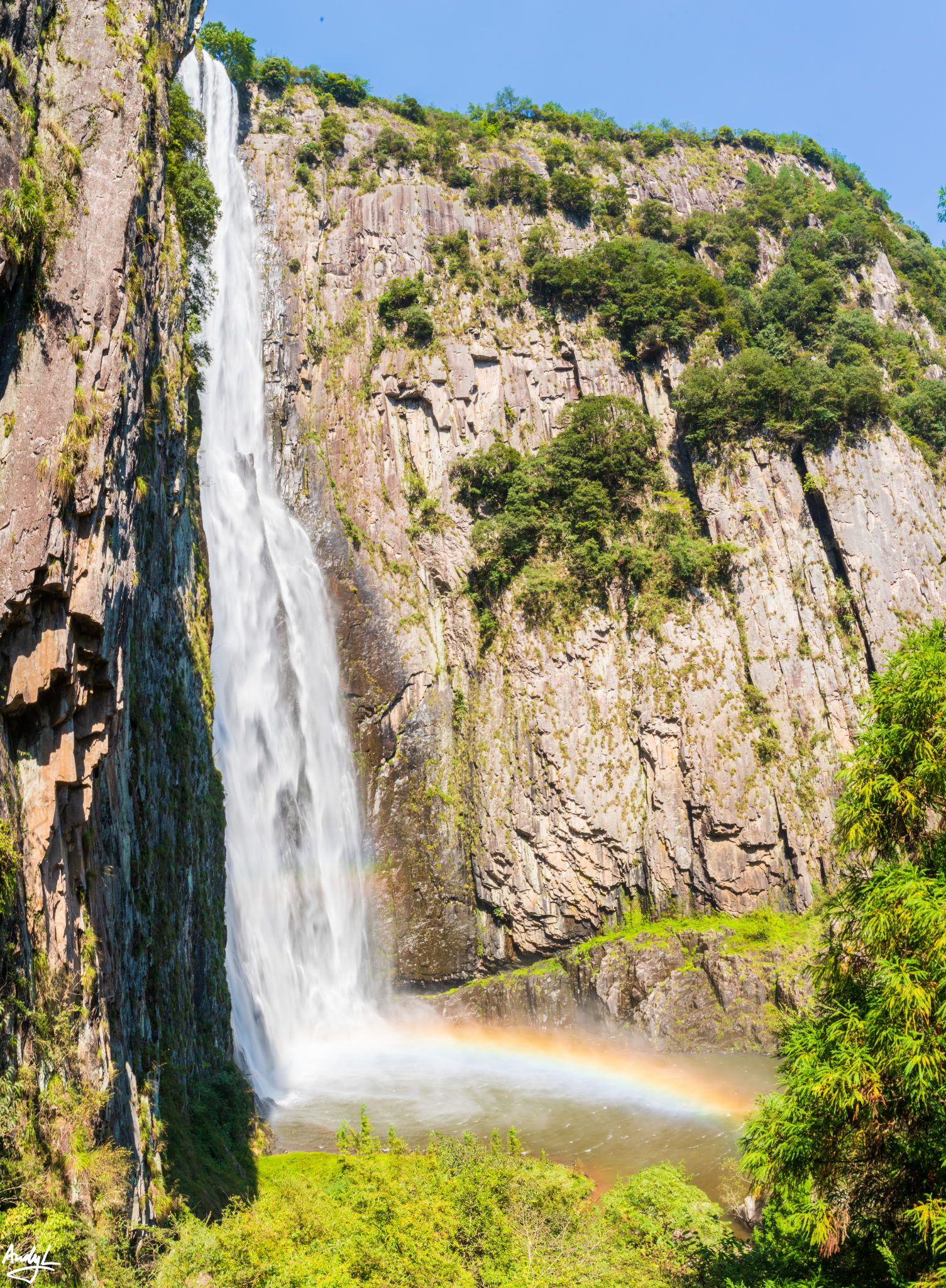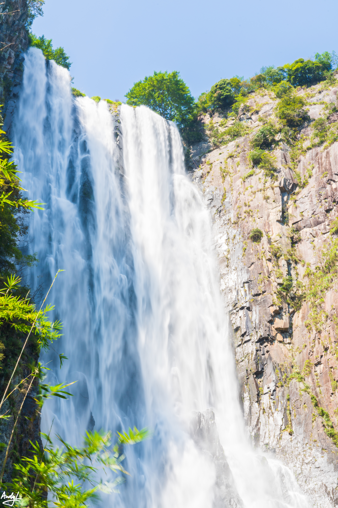 来到景观台,就能看到百丈漈的“一漈”,这是百丈漈“三漈”中落差最大的一个瀑布。由于阳光明媚,我们还在瀑布下看到了彩虹。