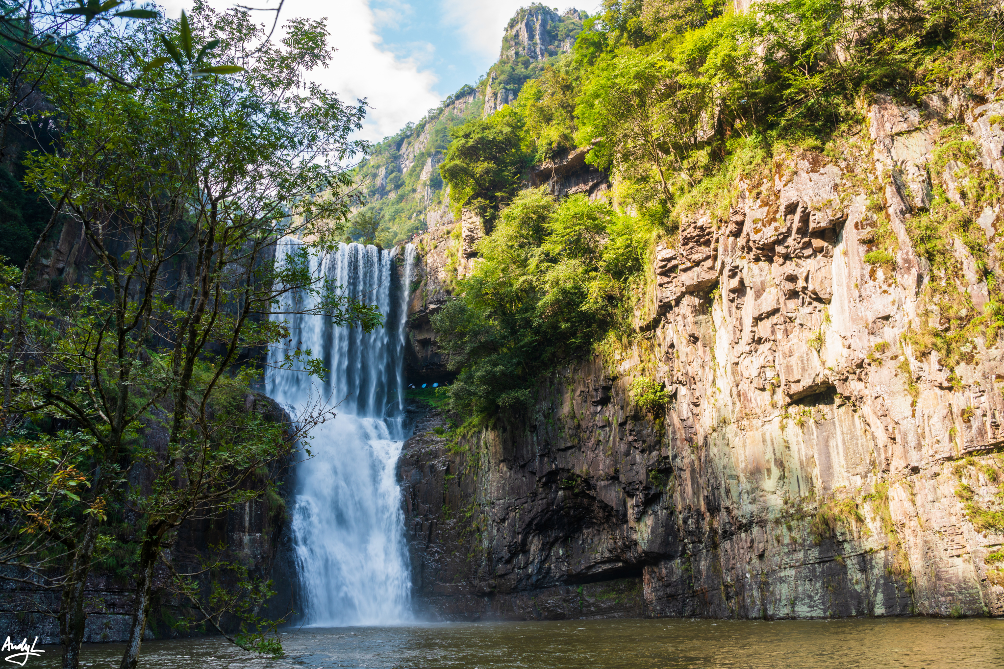 如果说在温州东部地区还能看到“二分田”,那到了温州西部的文成县,几乎就全是大山了,这里也是明朝开国功臣刘伯温的故乡,当年他告老还乡后就在此青山绿水间隐居终老。百丈漈景区就位于此地,“漈”在方言中是瀑布的意思。