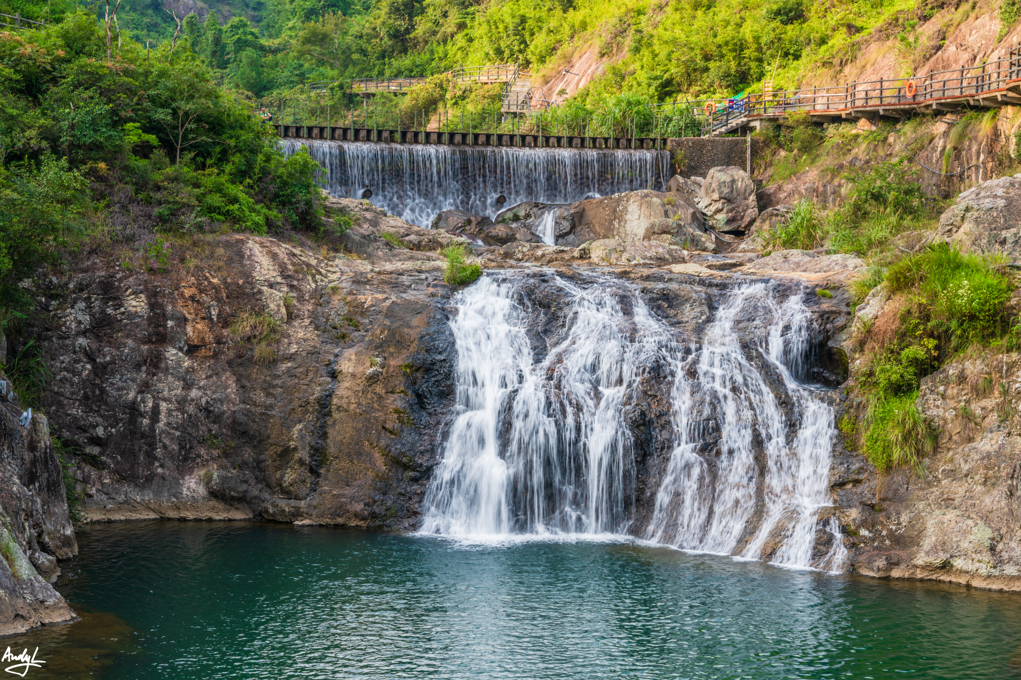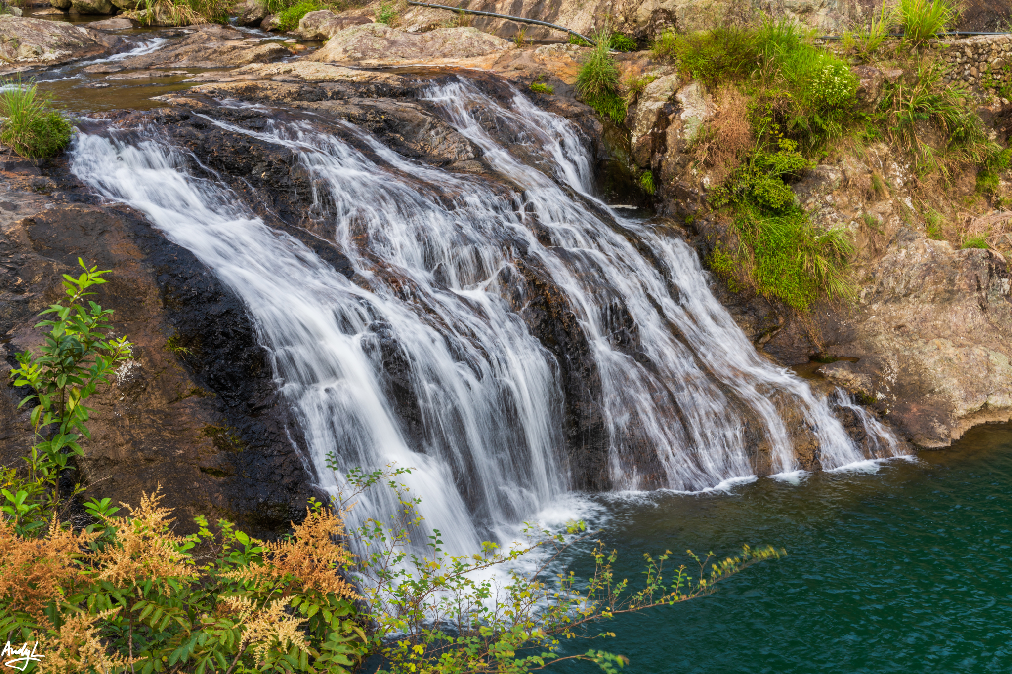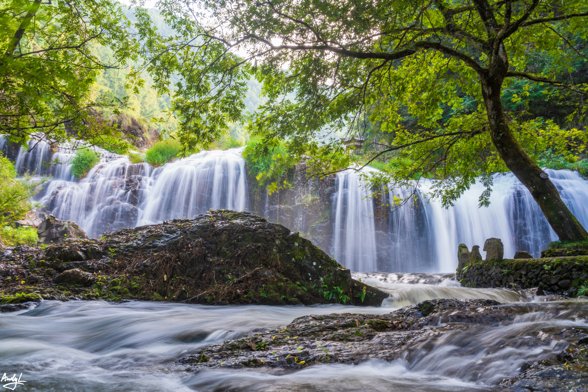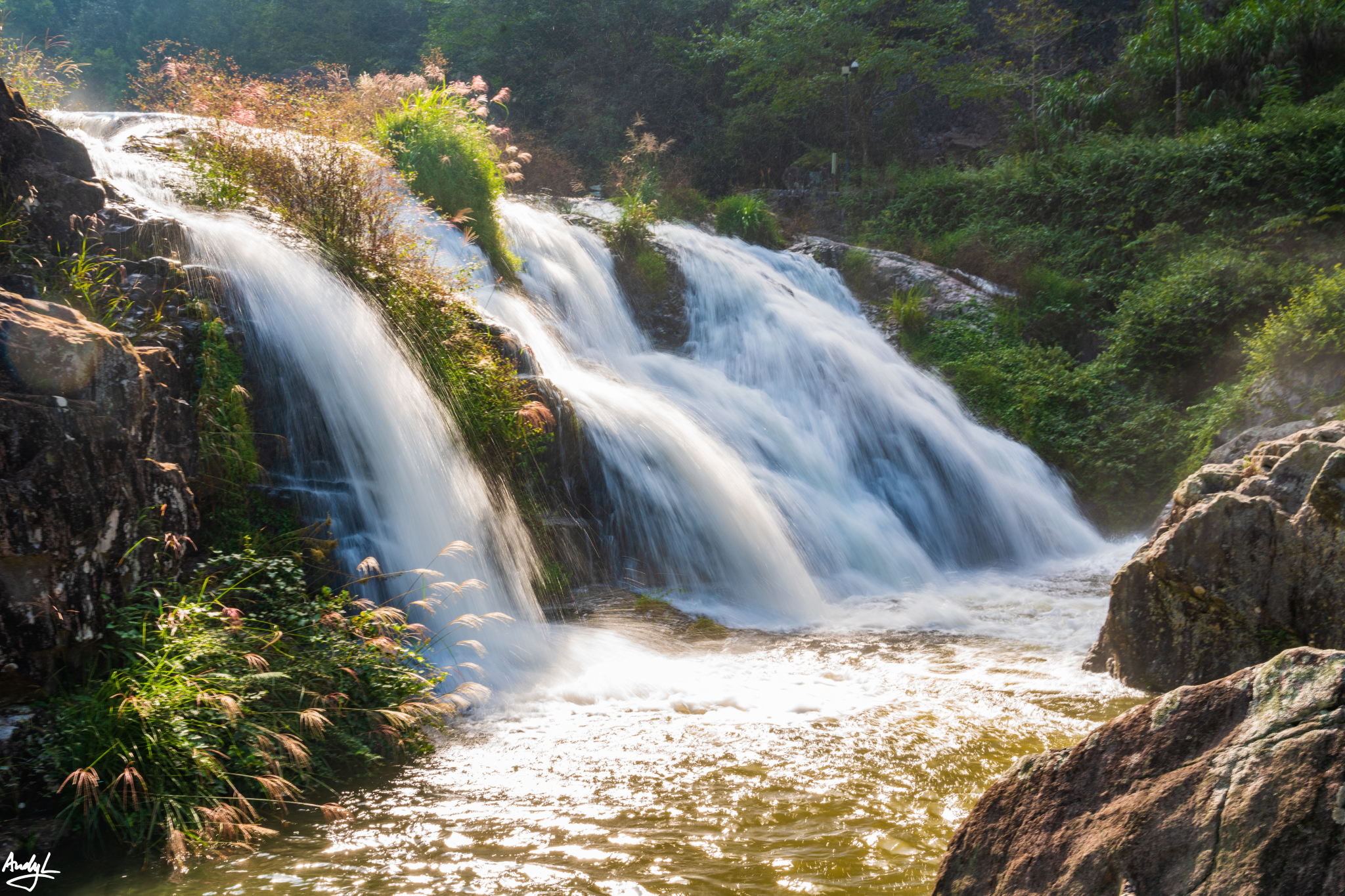 三漈相比前两漈来说,落差明显很小,但是更加宽。在相机的慢门下,水流如丝般顺滑。