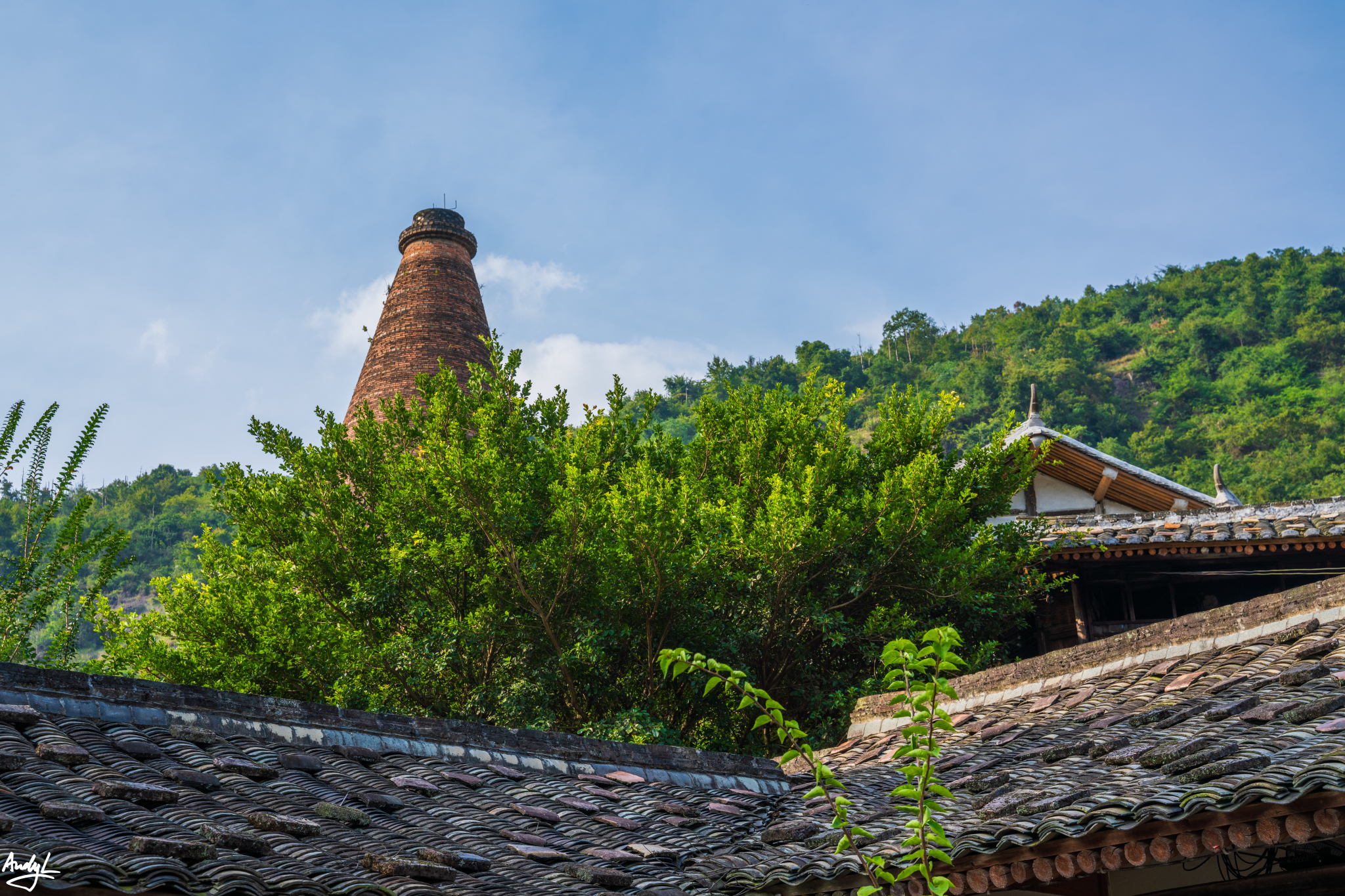 过去烧窑的烟囱,现在已经成了这里的标志,已经没有烟冒出。