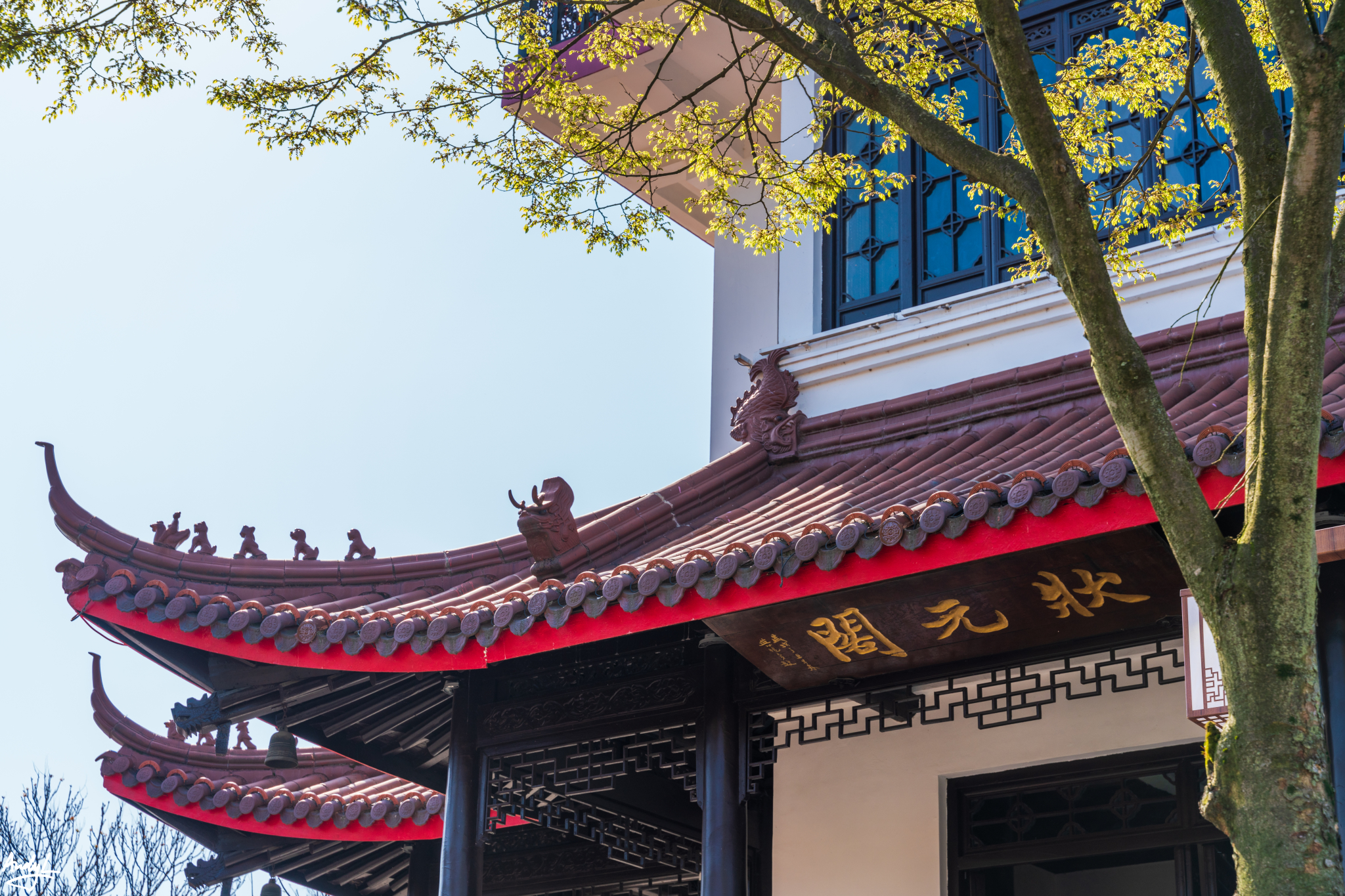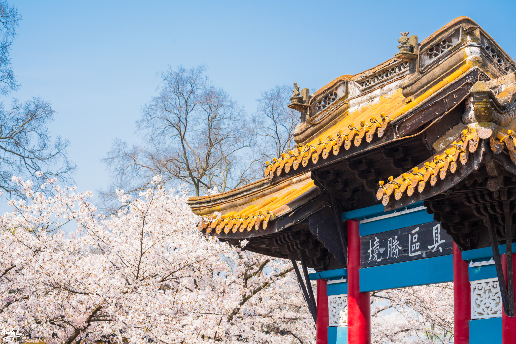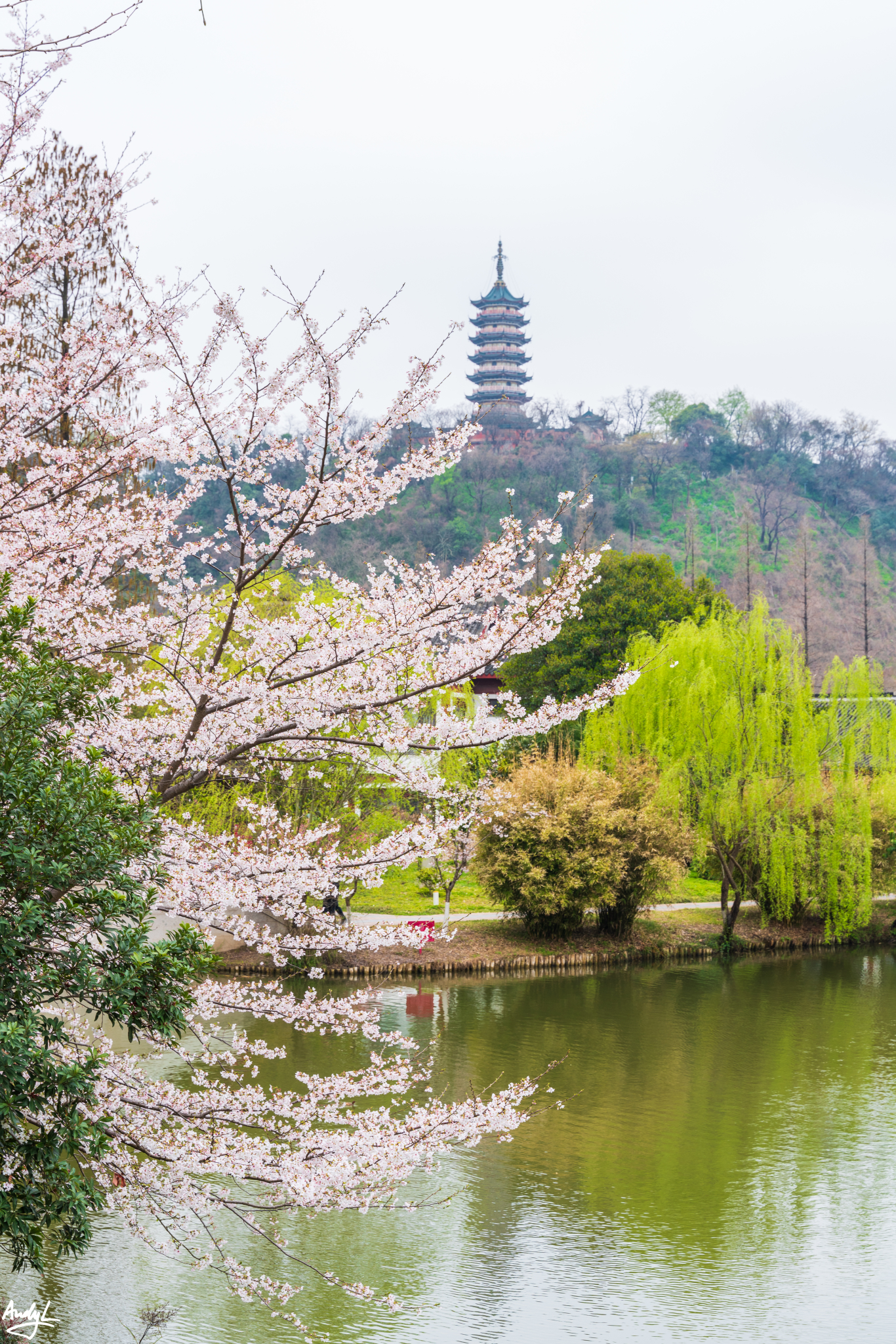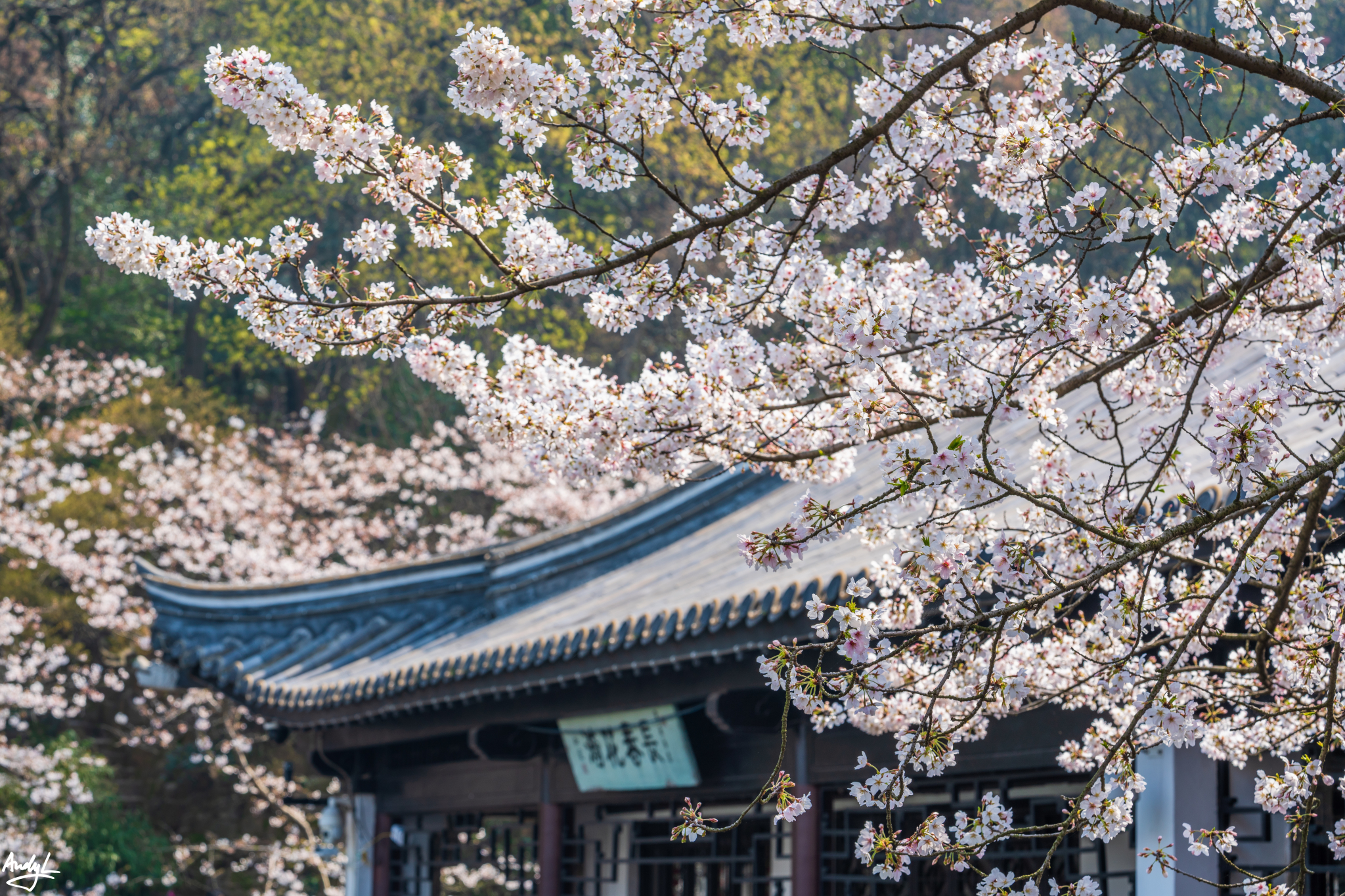 如果说樱花谷的赏樱楼有一种日式的风格,那长春桥附近的楼阁水榭就完全是中式的风格了。