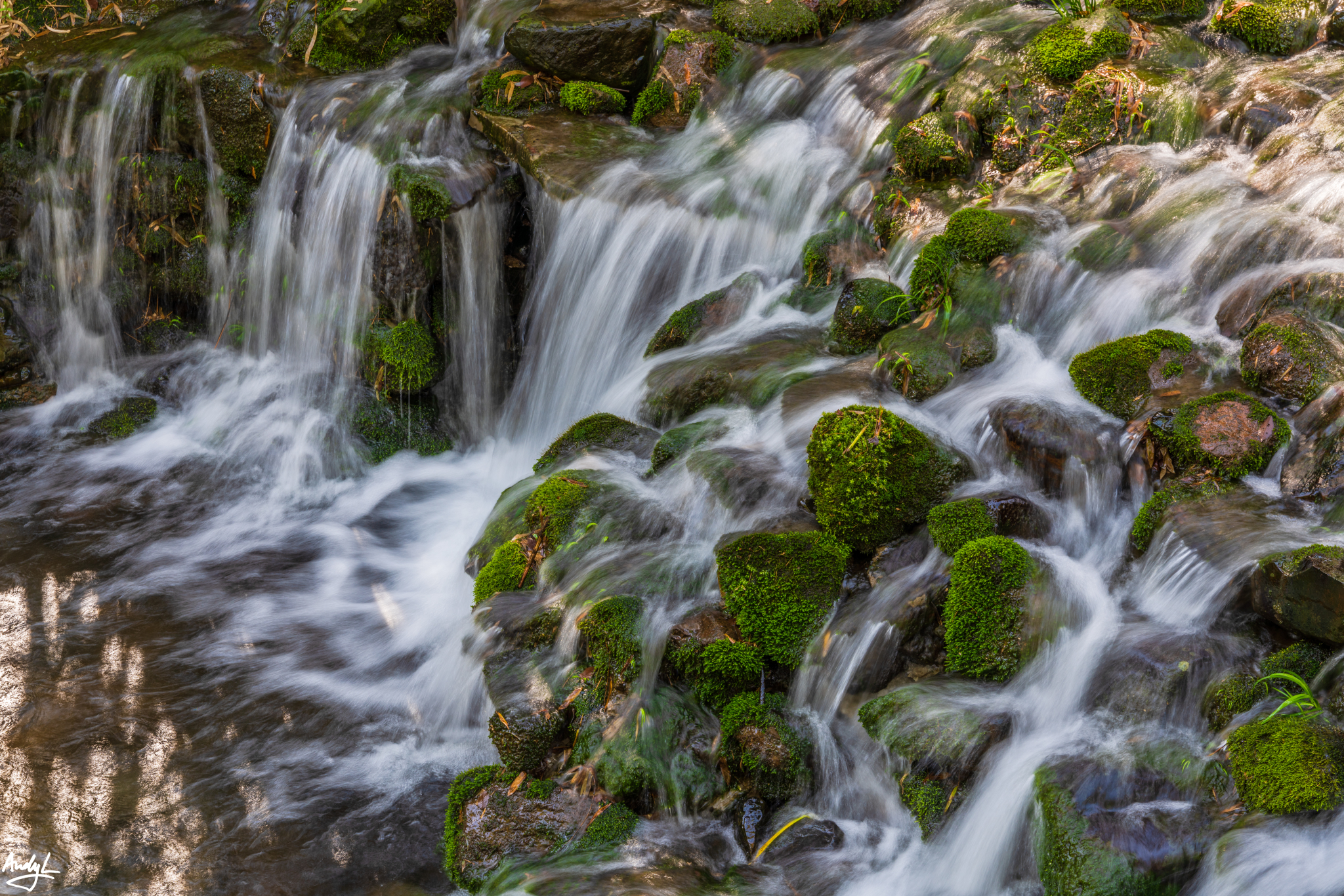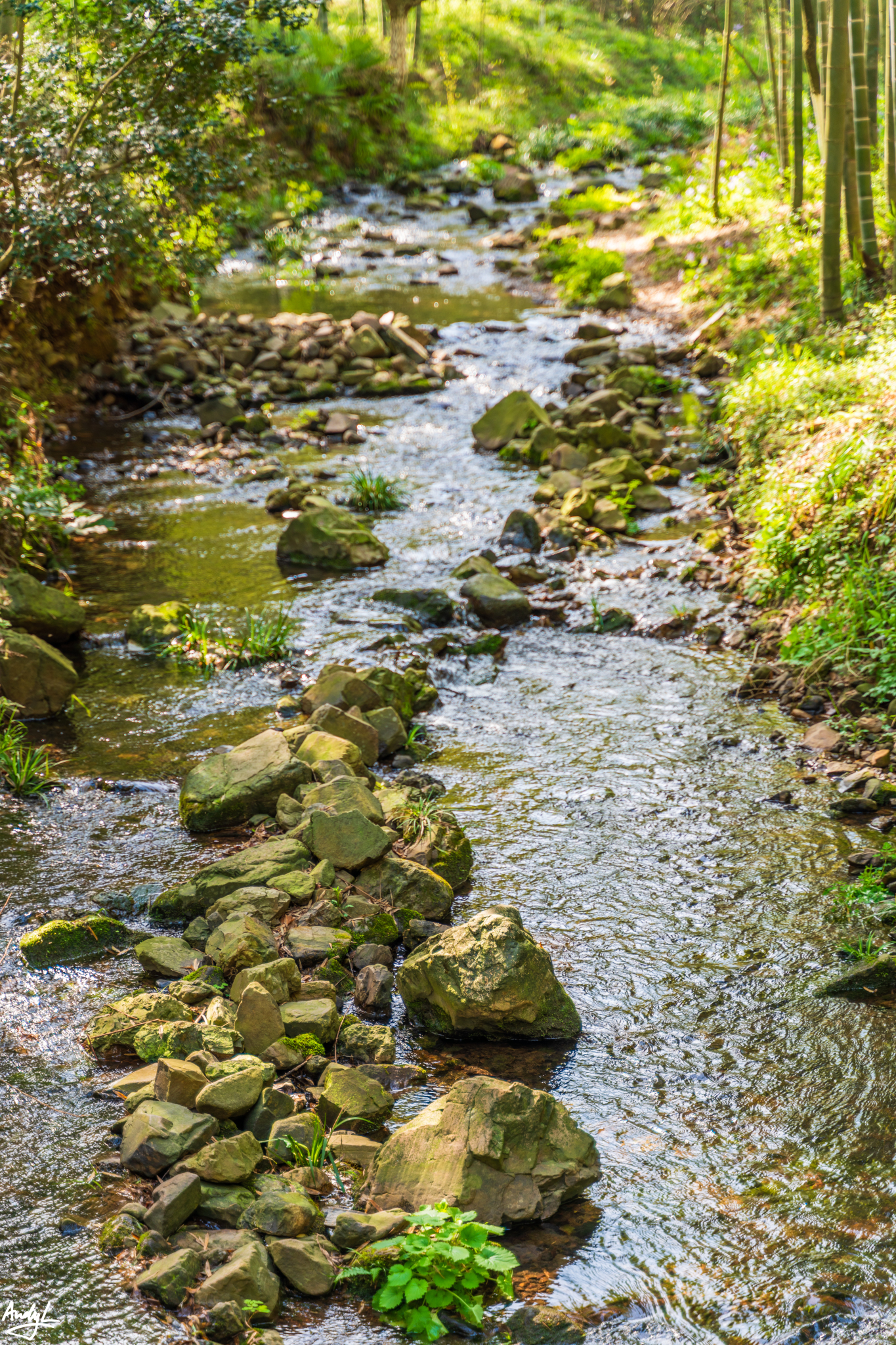 游览步道边上有一条小溪自高处顺流而下。