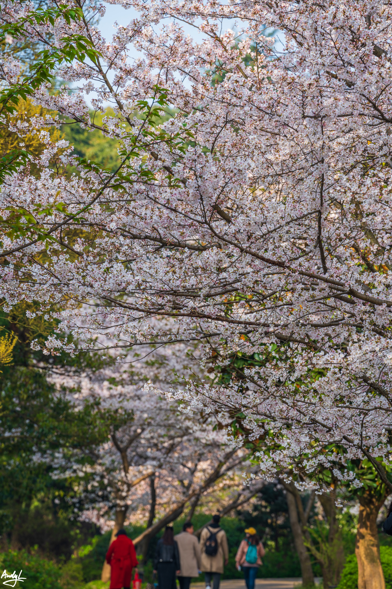 进入景区,从景区大门到樱花谷的这条路上,视线之所及几乎都有樱花,虽然景区内挤满游客,但是丝毫不影响赏花的心情。