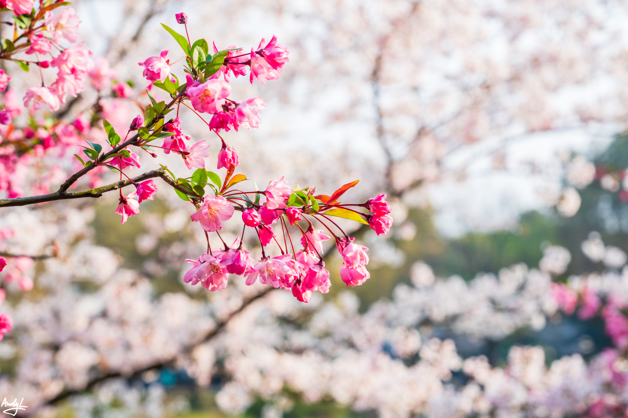 桃花与樱花相比,各有千秋。