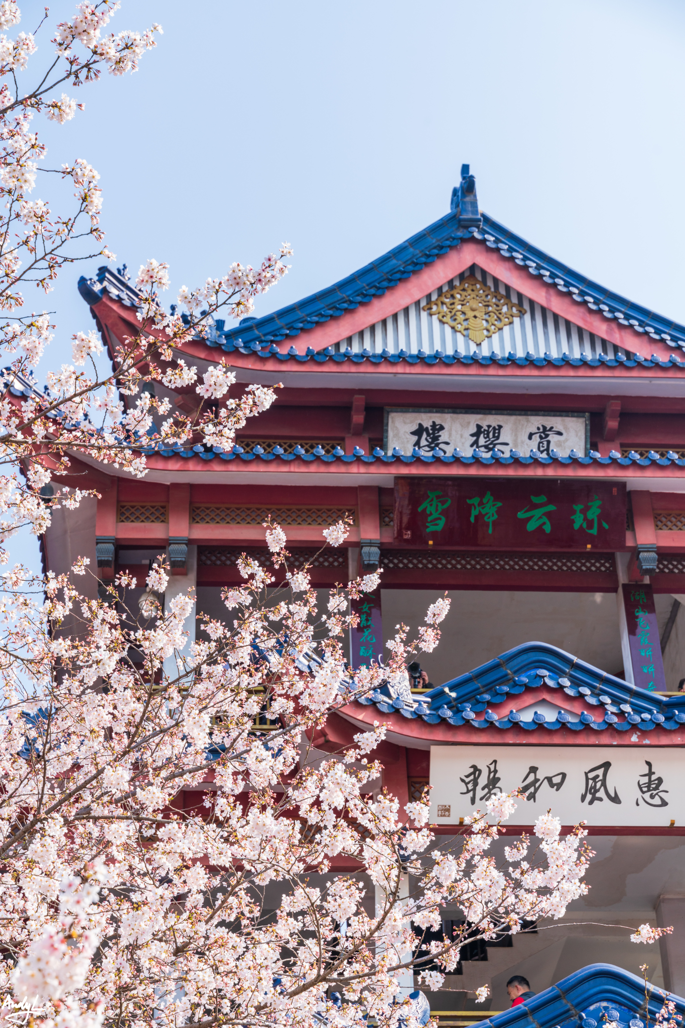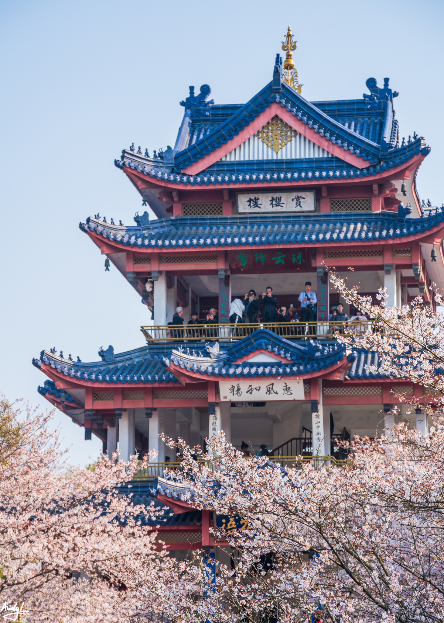 樱花谷中的赏樱楼附近,是整个景区内樱花最密集的区域,也是游客最多的地方。
