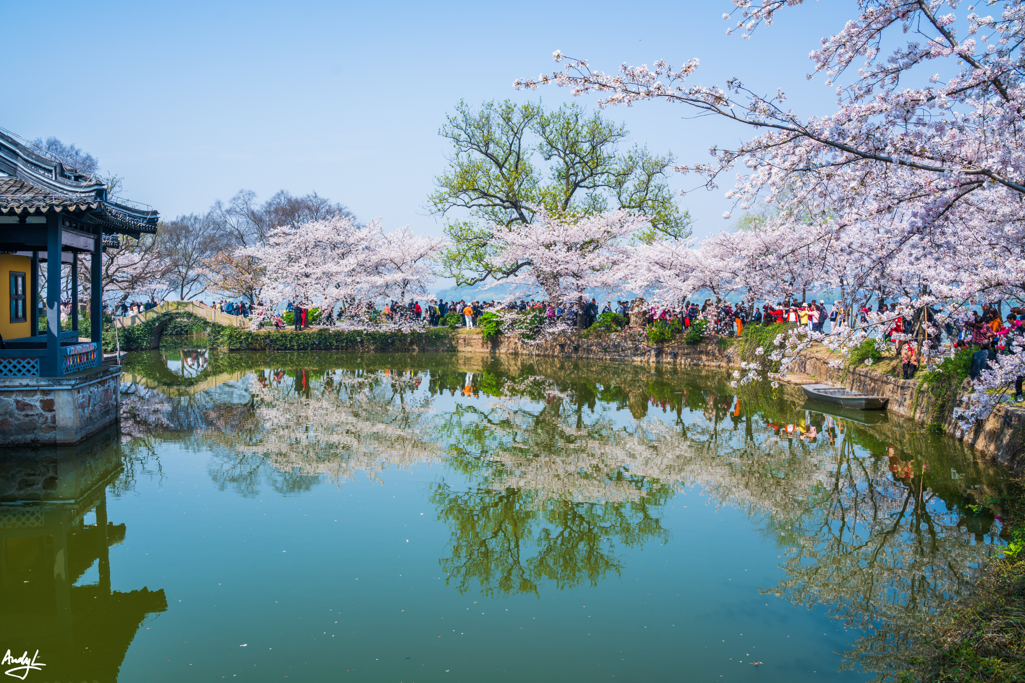 相较于樱花谷,虽然这里的樱花树没那么密集,但我更喜欢这里的风景,称这里是樱花季鼋头渚最佳处,一点都不夸张。