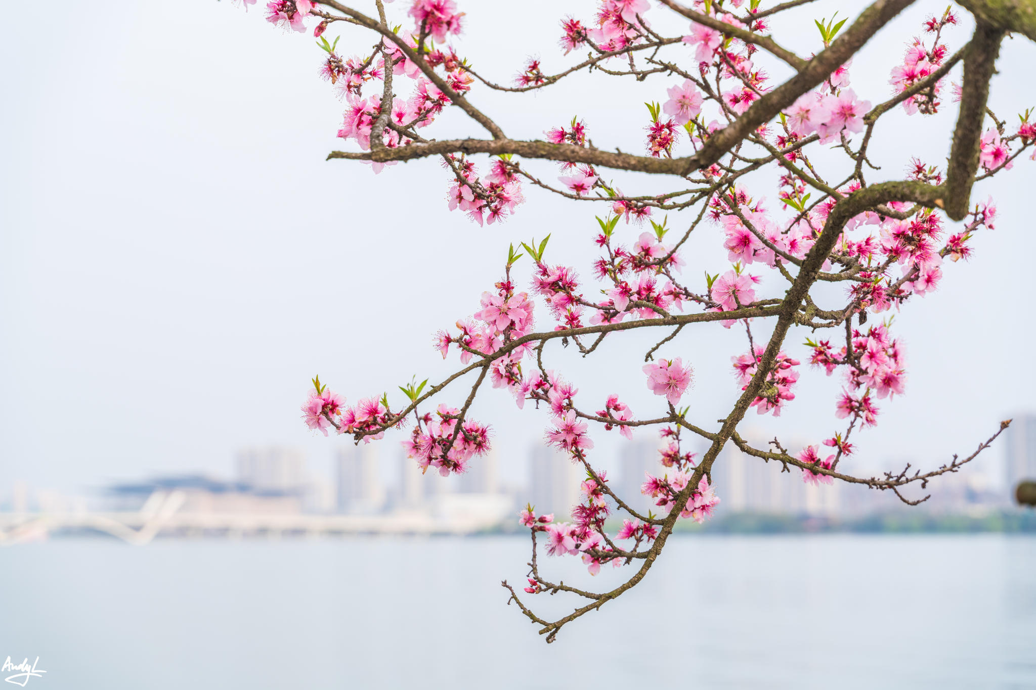 与鼋头渚开满樱花不同,蠡园内似乎种植的更多是桃花,由于桃花的花期比樱花稍晚,所以我们去的时候,开得还不算太密。