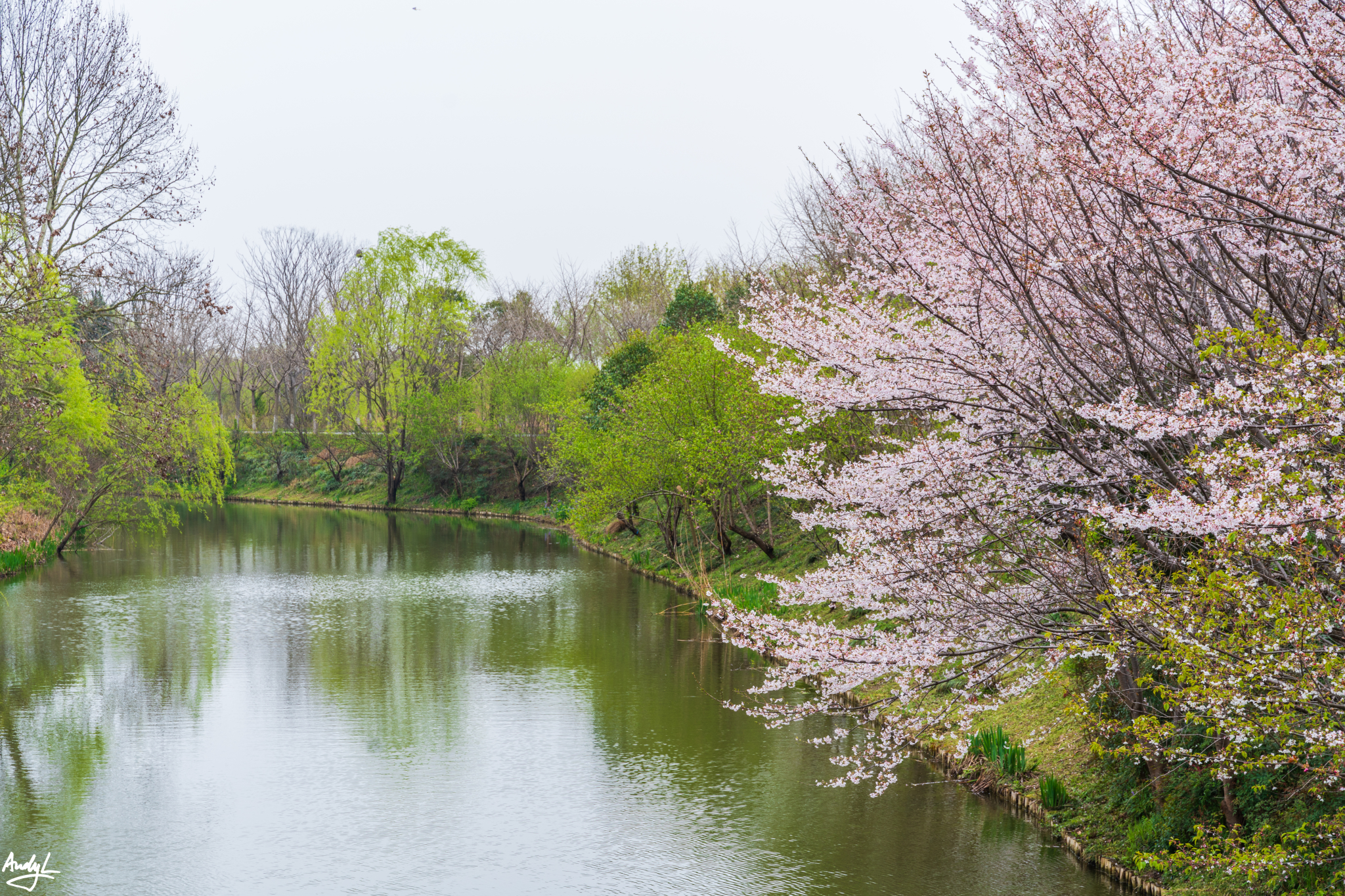 三月下旬正是百花开放的时节,最显眼的还是河边道路两旁的樱花,虽然樱花树不算太多,但是满树挂满花朵还是非常好看的。