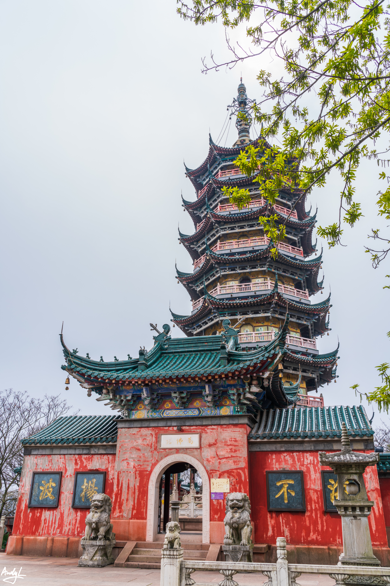 我们从东门进入景区后,最显眼的就要数远处焦山上的万佛塔了。