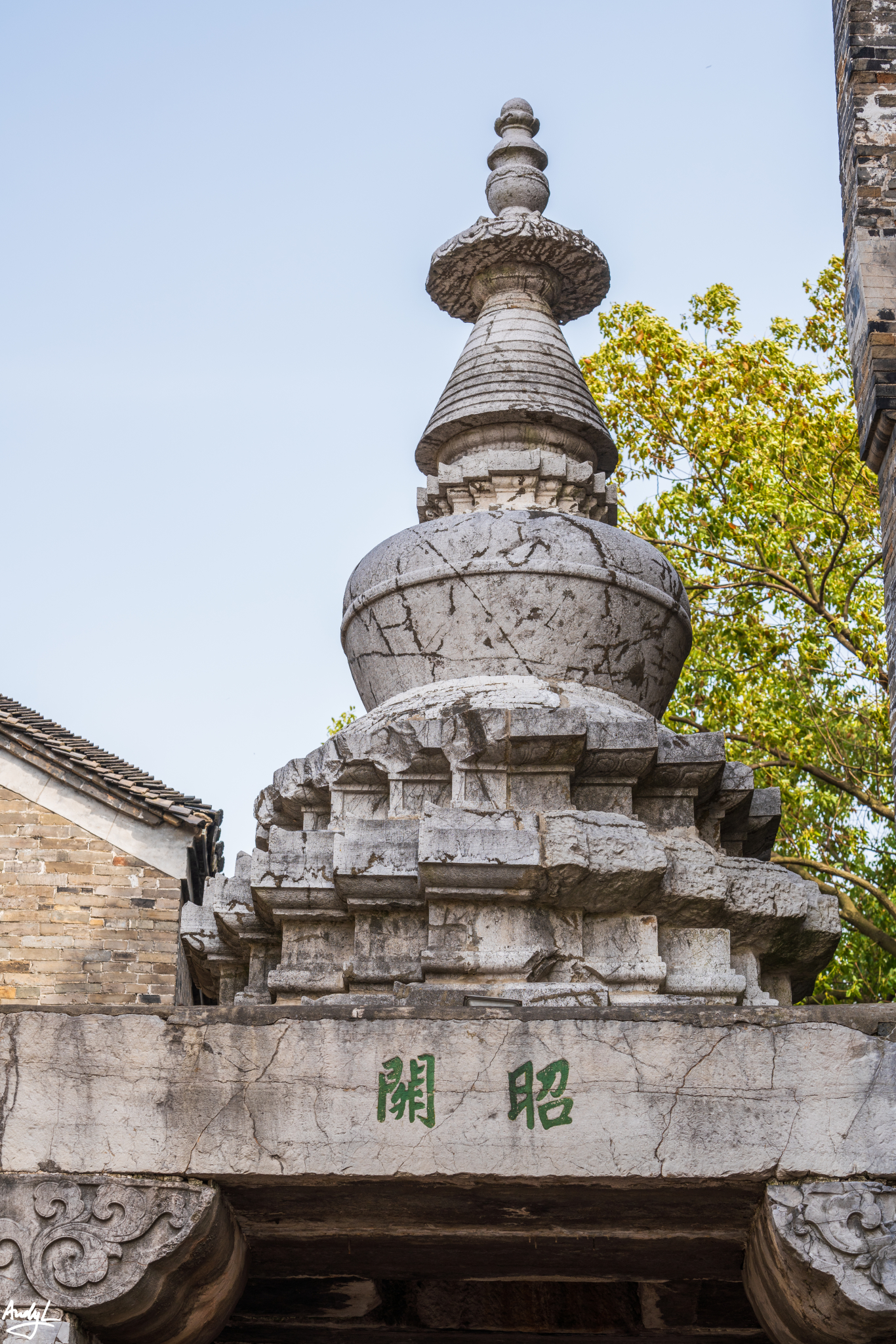 在西津渡的众多古迹中,最著名的还是这座昭关石塔,这座过街石塔据说是建于元代,是国内保存最完好年代最久的过街石塔之一。