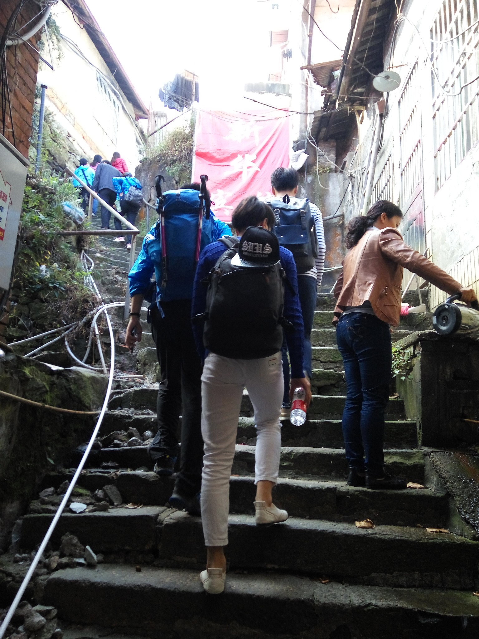 都说“不到三叠泉,枉为庐山客”抱着这次庐山不能白来的信念,我们来到了泉底,看到了整个瀑布的全貌,已为庐山客。这时已经是下午5点了,我们必须赶紧上山了。说到上去,这才是最崩溃的。