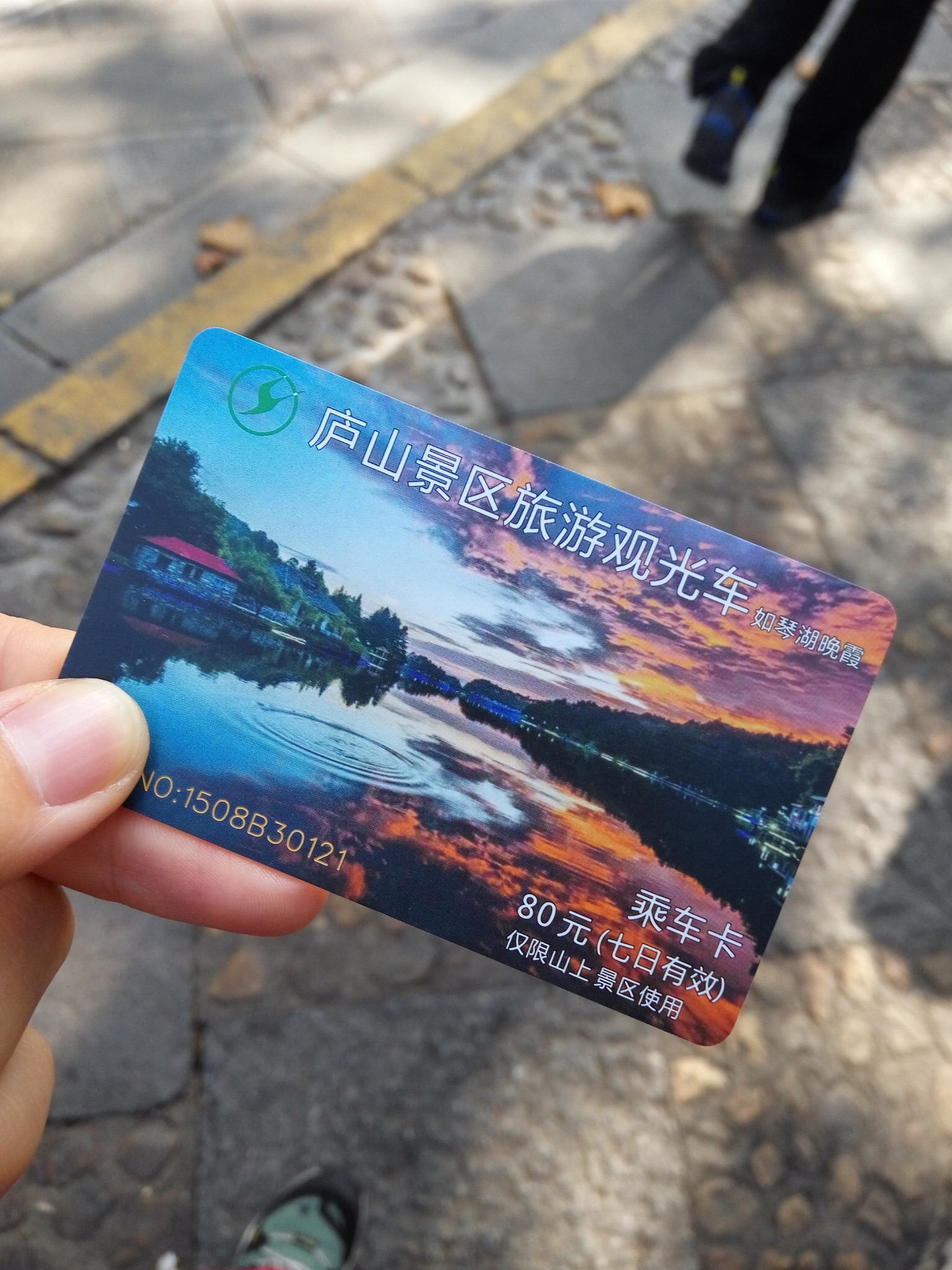 刚才下山的陡坡现在要原路返回上去,小伙伴已经累坏了。等到我们来到三叠泉景区门口的时候,已经是6点多了,这是天已经黑了。走到观光车站的时候,我们瞬间崩溃了,居然没车了,灯也关了,我们只能靠着手电筒来看清前面的路。可是车票上明明写着到19:00才结束啊~~~这时前面已经来了一辆黑车准备狠宰我们一顿了,无奈的我只能拨打车票上的景区电话,惊喜地接通了,景区工作人员答应派车来接我们。黑车司机听到郁闷地走了。就这样,我们坐着转车,拖着疲惫的身体回到了牯岭镇。
