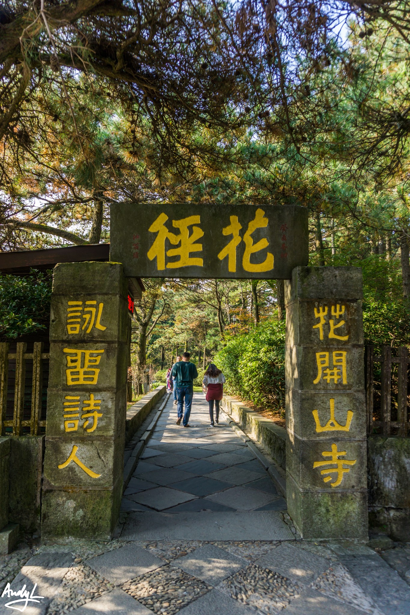 花径入口的门牌,相传是白居易题写的。白居易被贬到江州任司马的时候曾经来到过这里,现在花径里面还留有白居易草堂。