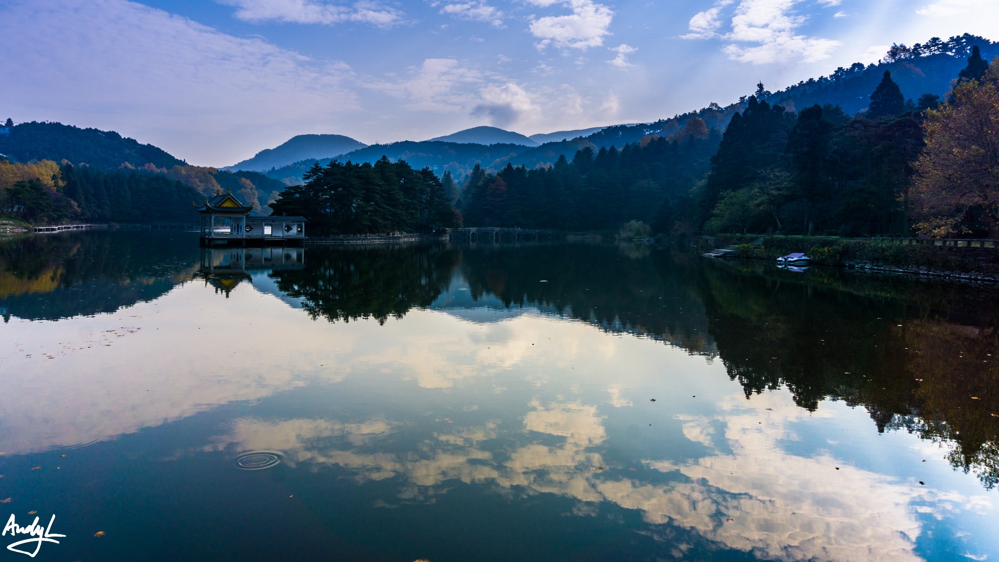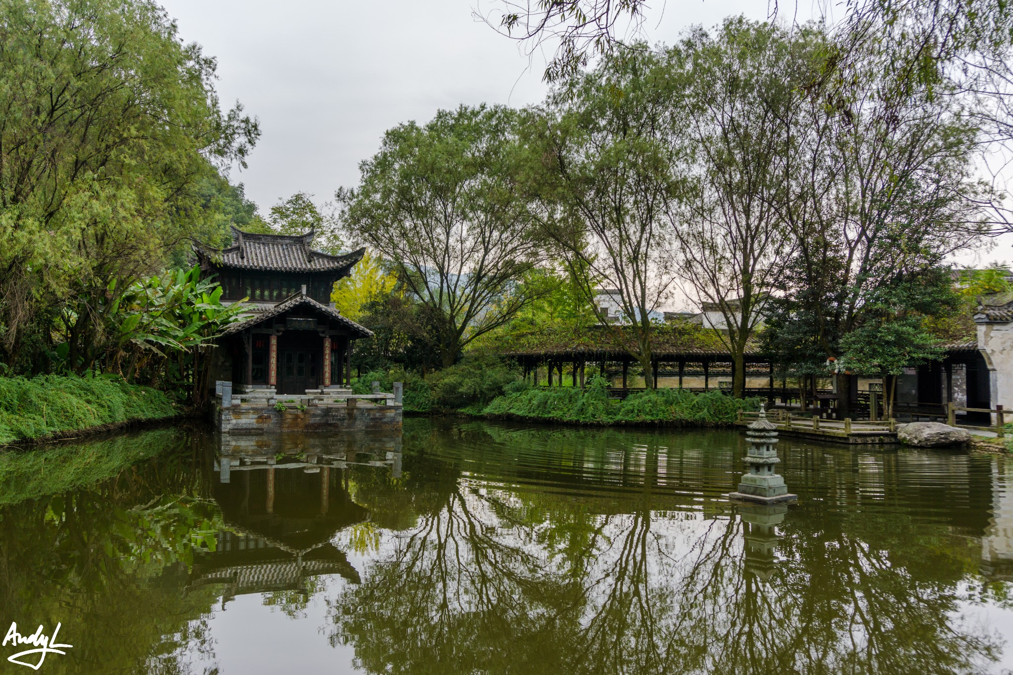 如琴湖不大,水面很平静适合拍倒影。其实也谈不上什么特色,我们去的时候有点逆光,所以拍不出什么好照片。