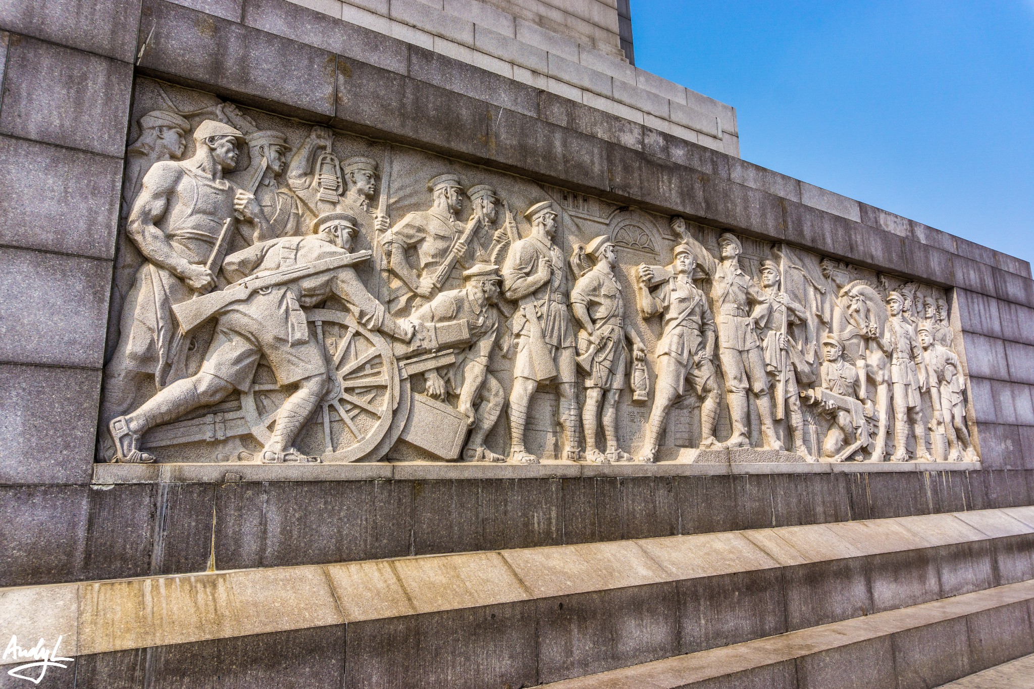 广场上最著名且显眼的就是八一南昌起义纪念塔了,塔高53.6米,基座四周分别有展现南昌起义场景的浮雕,类似天安门广场的人民英雄纪念碑。塔顶为八一军旗。塔的北面有叶剑英元帅题写的塔名。广场上有着各种浮雕,介绍着解放军的诞生以及军史。整个八一广场若是作为景点来说,景色真心一般,想了解军史的朋友应该会比较喜欢,我们也就是算到此一游吧。