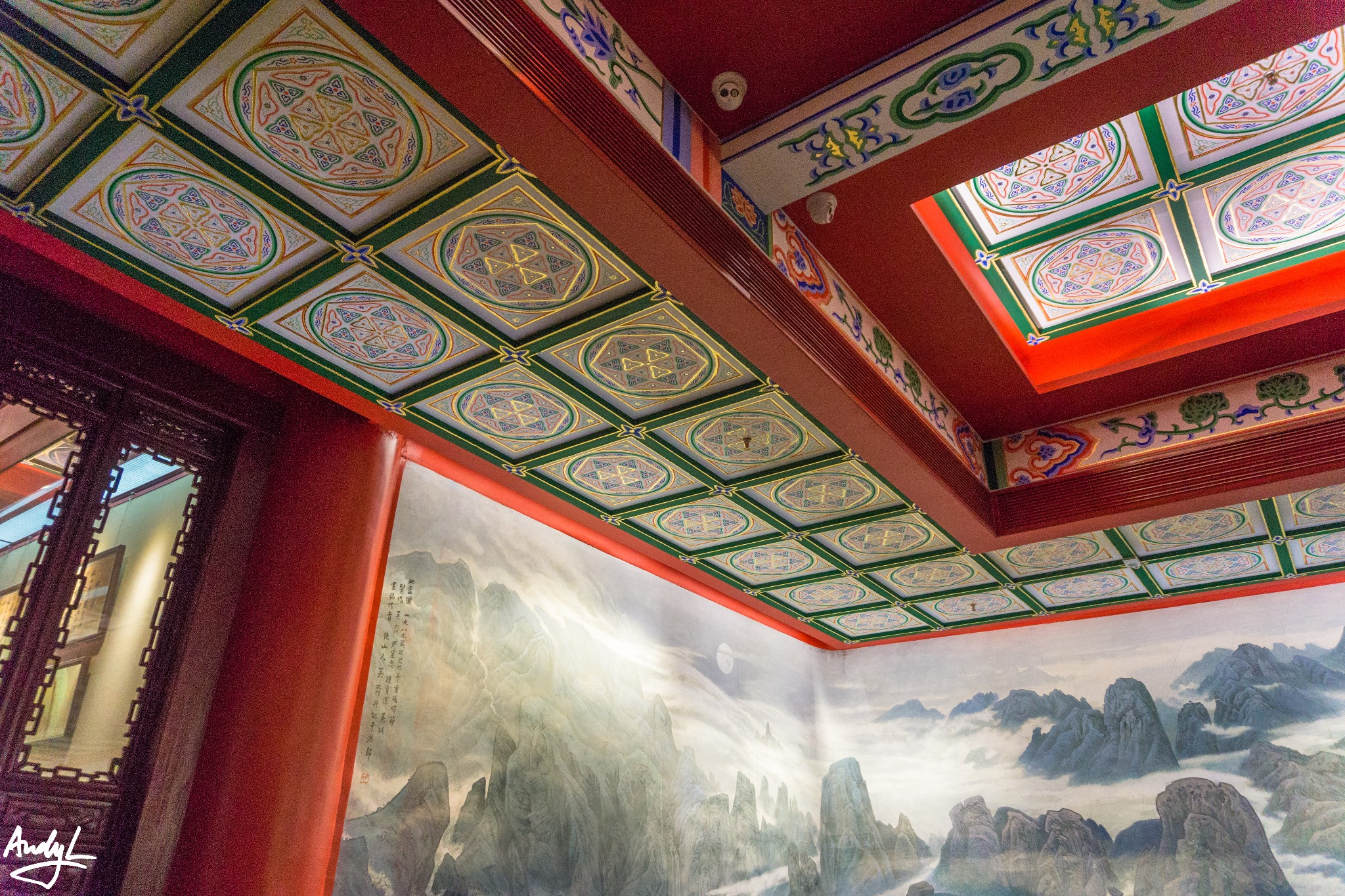 滕王阁内部装饰十分华丽,室内外所有梁枋各明间采用“碾玉装”,各次间采用“五彩遍装”。