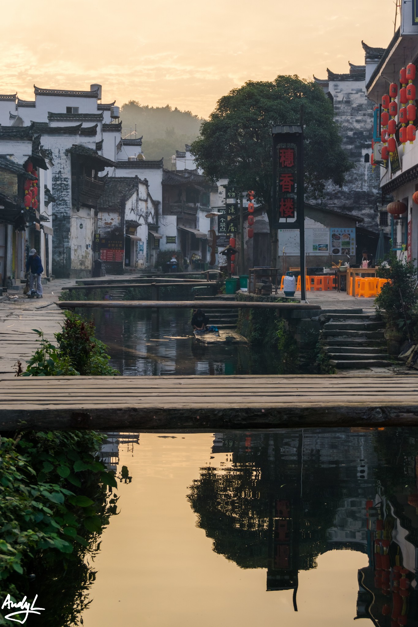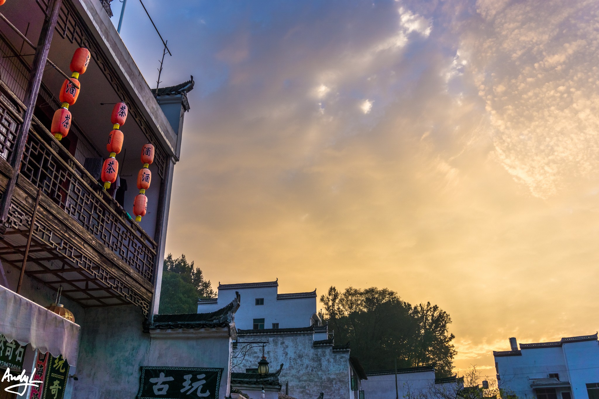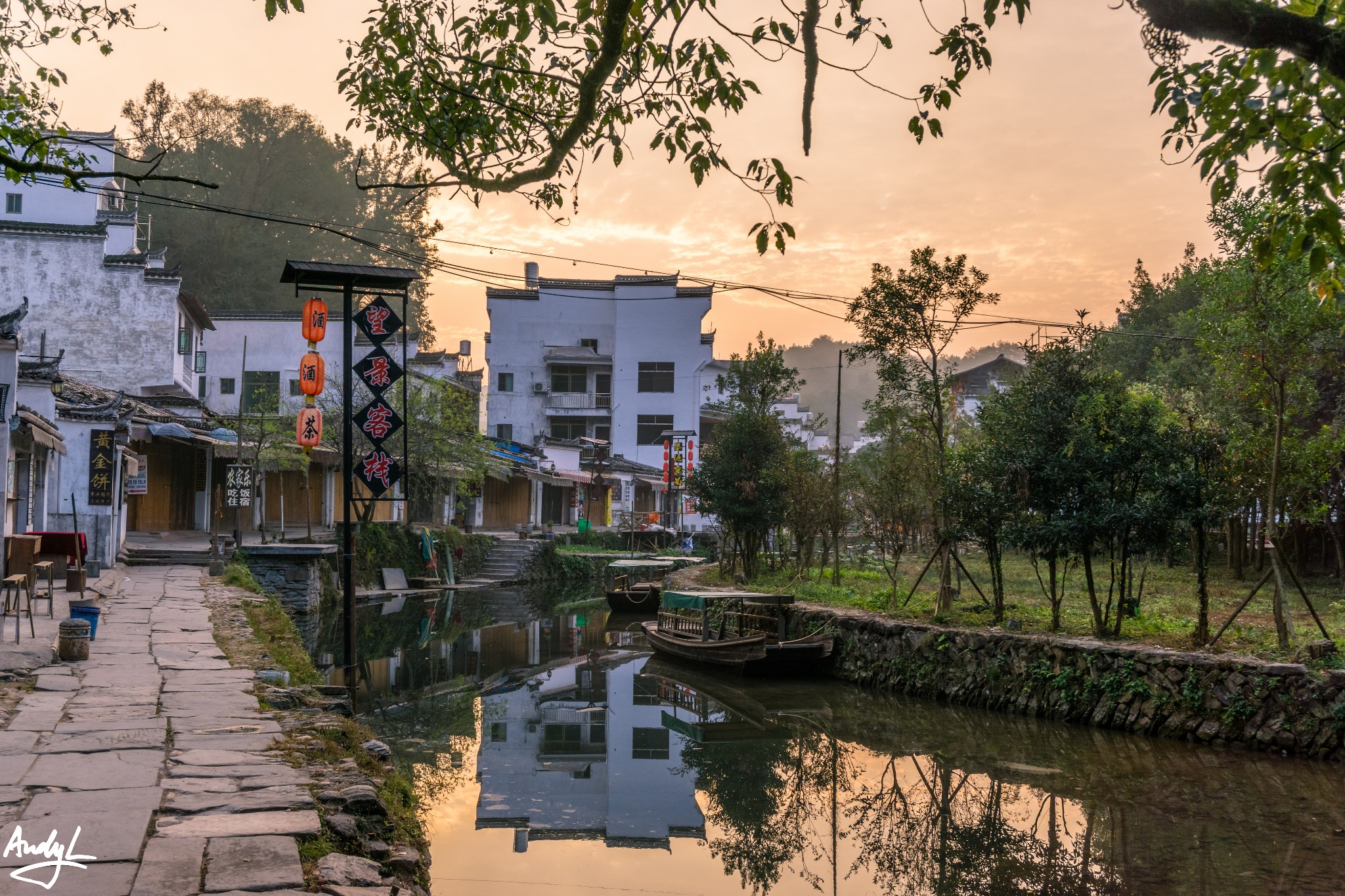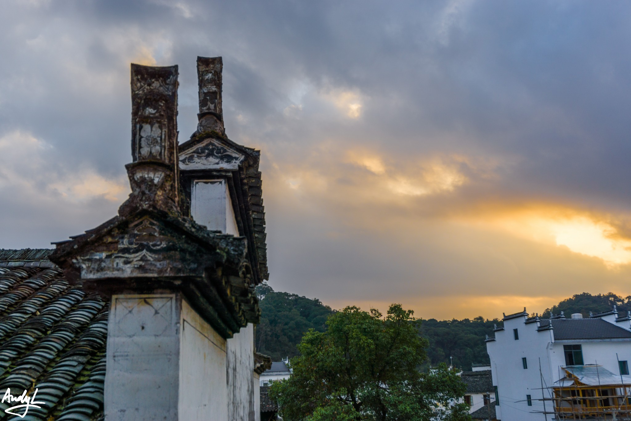 思溪延村是清华镇与县城之间的著名景点,它由思溪和延村两个村落组成。我们到达这里的时候已经是傍晚时分了,晚霞挺美。