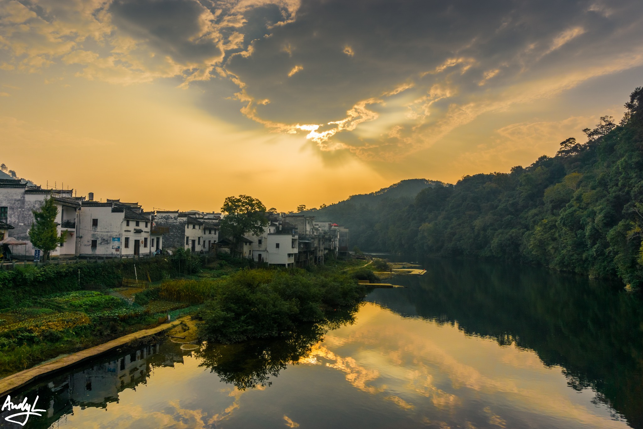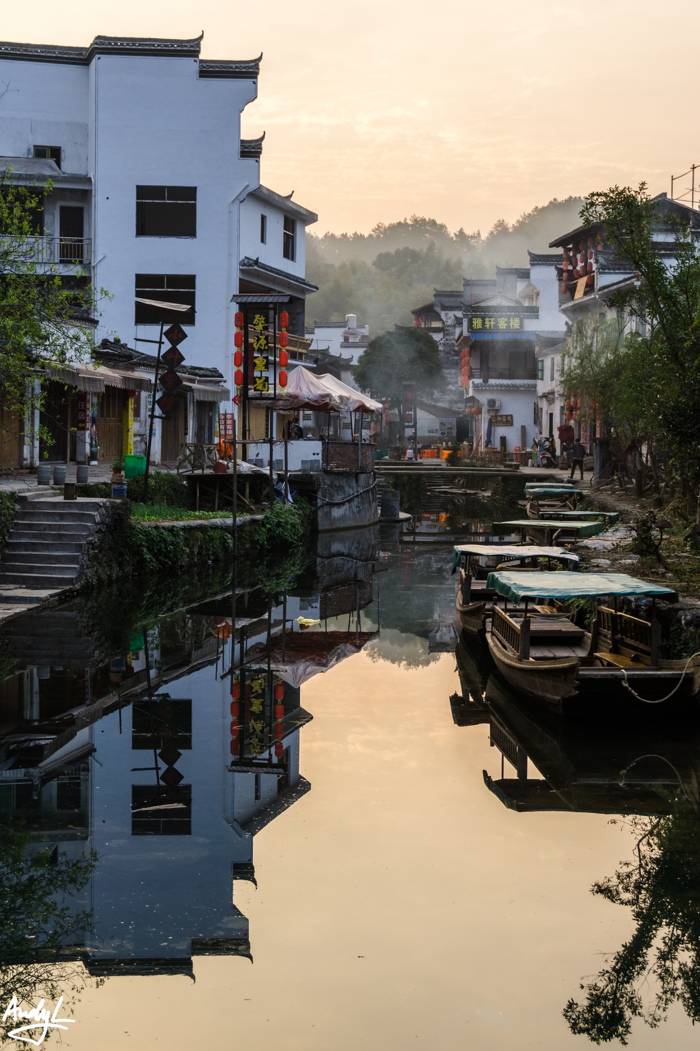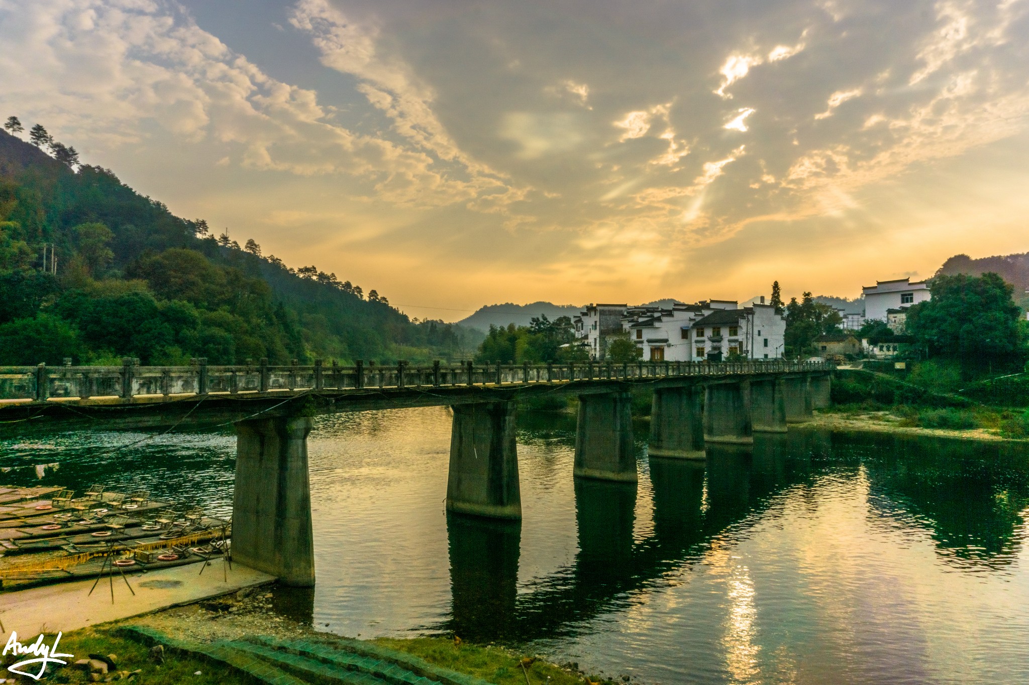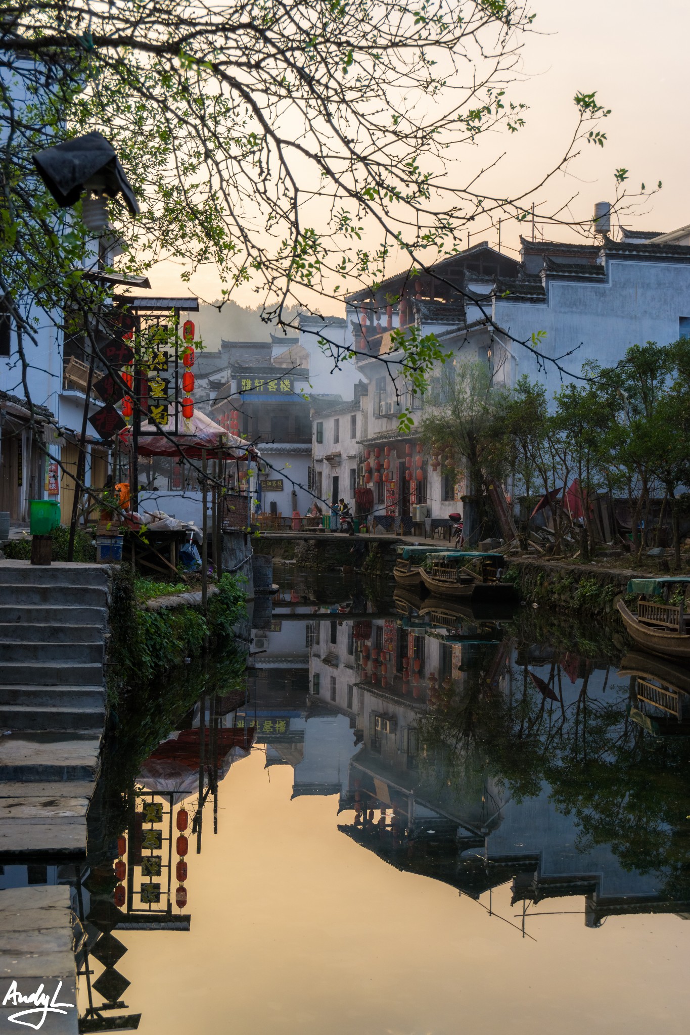 思溪延村是清华镇与县城之间的著名景点,它由思溪和延村两个村落组成。我们到达这里的时候已经是傍晚时分了,晚霞挺美。