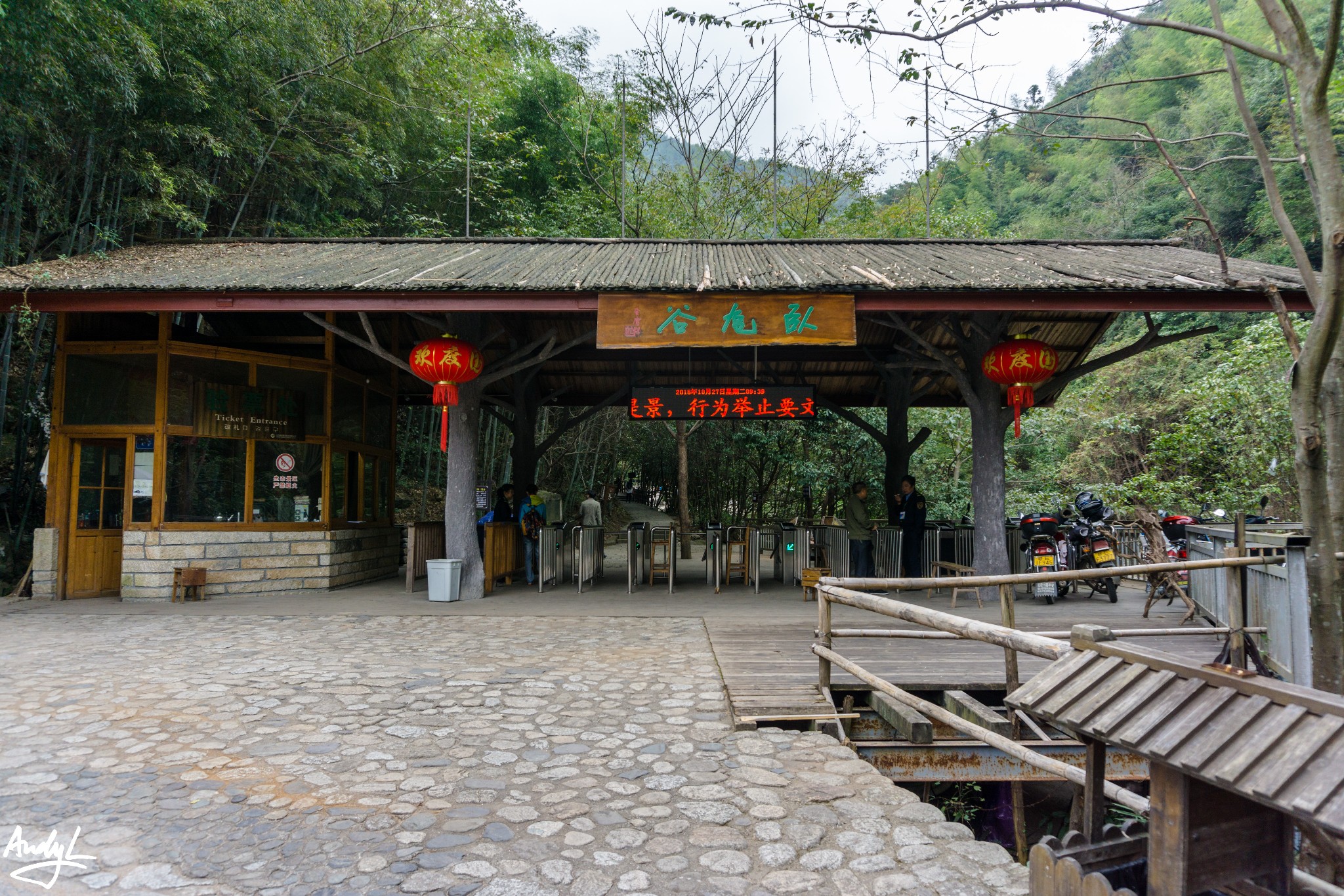 婺源所有的通票景区都有如上图一样的闸机口,游客进入景区需要刷自己的门票然后验证指纹才可以通过,我们有两个小伙伴指纹一直都没有验证成功,最后工作人员联系工作人员放行,后面的景点几乎都没有出现验证失败的情况,应该是这个景点的闸机问题。