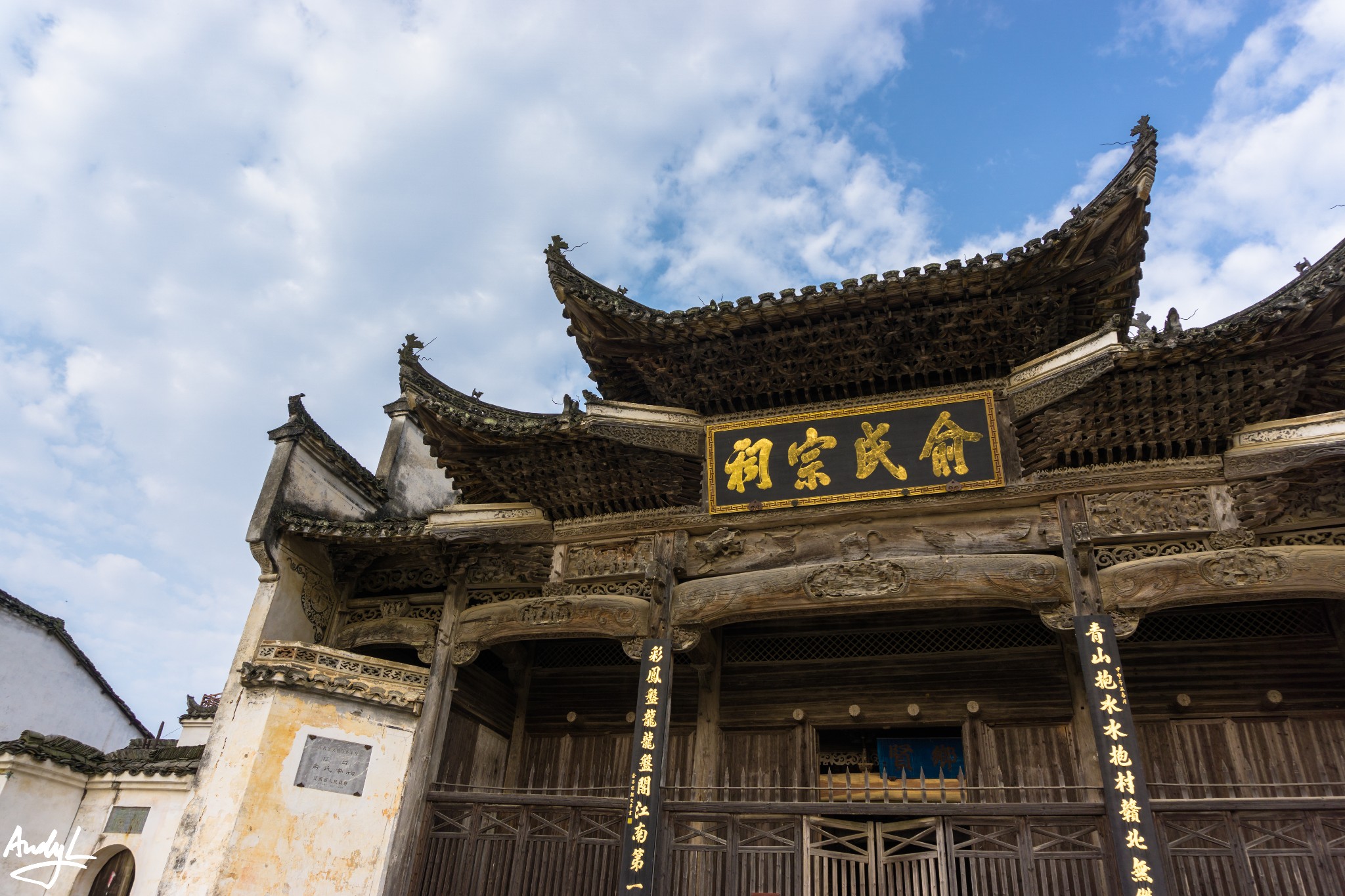 村中最出名的建筑是俞氏宗祠,房子还是比较老的,可惜,我们去的时候宗祠内部正在装修,没法进到里面,只能在外面拍照,