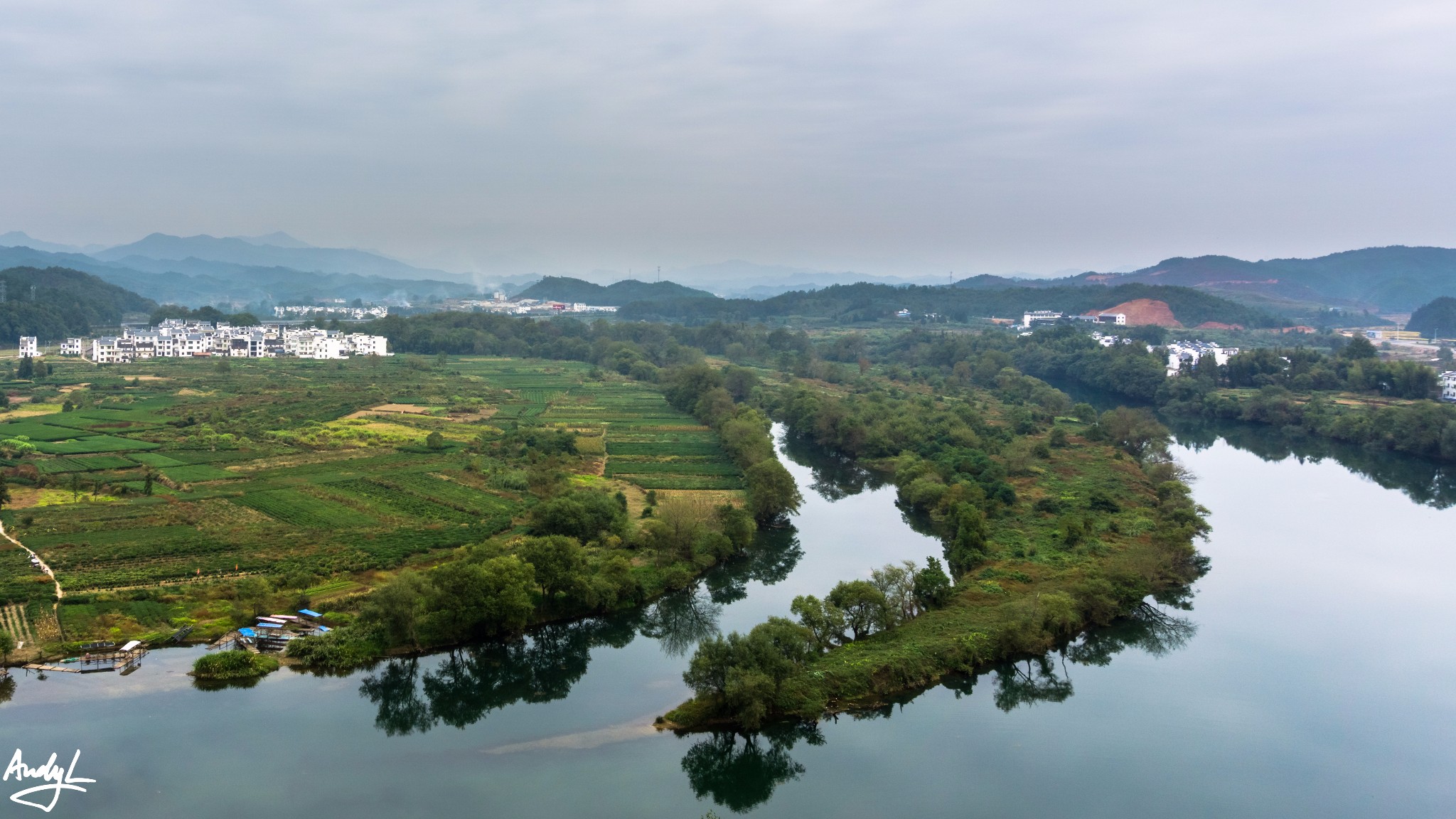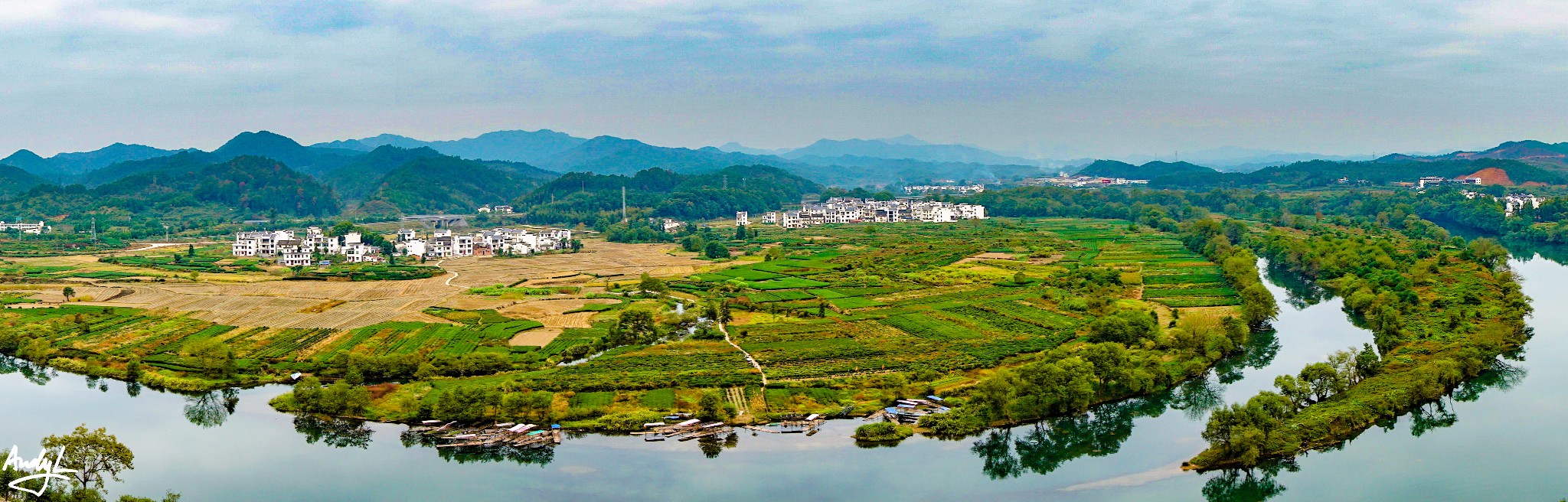 离开灵岩洞,我们便驱车前往清华镇,在去清华镇的路上,会经过号称“中国最圆村落”的菊径村,想要拍到最圆村落的全貌,必须要上到村对面的山上才能拍到。上山有一条简单的小道,道路两边是村民中的庄稼。路况比较差,上山需要注意安全。另外,并不是上到最顶上才最好,应为山顶视野并不开阔,有各种植物遮挡,半山腰的平台才是最佳拍摄地点。如果有16-35这样的广角镜头,那就更好了。