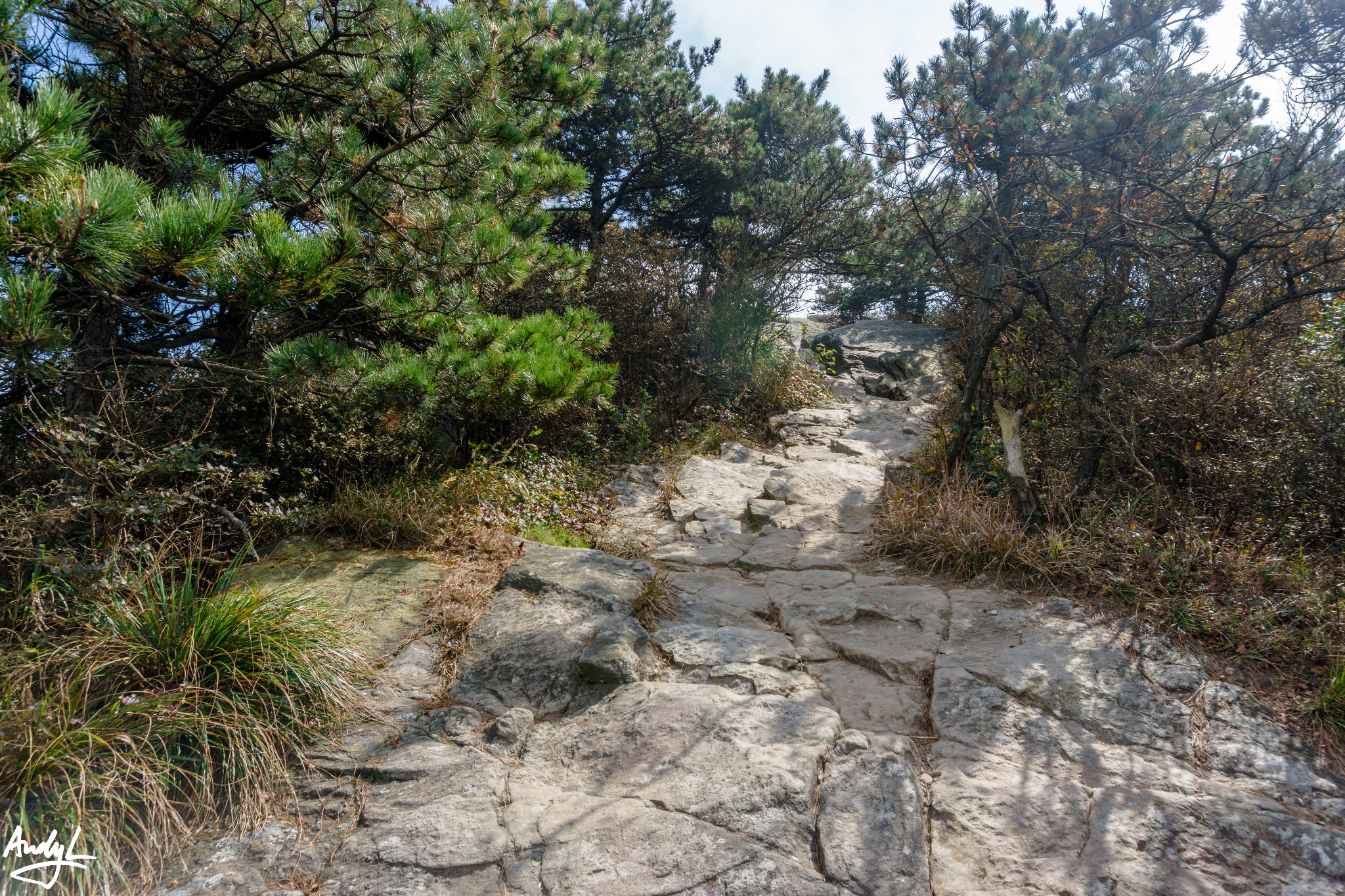 上图是鹰嘴石通往二峰的路,还是有点坡度的。