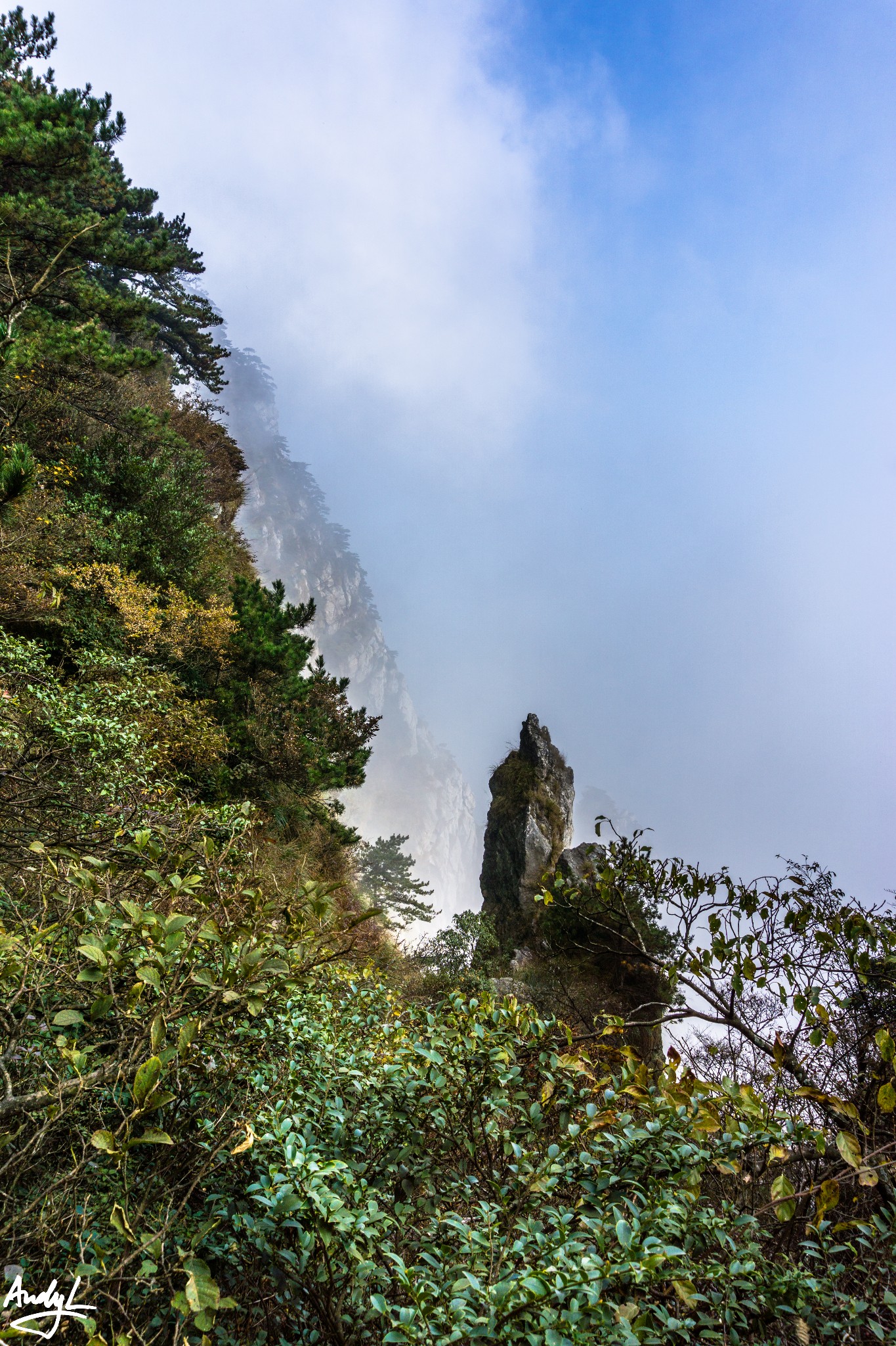 顺利来到待晴亭之后,我们也就来到了一峰。在待晴亭等待云雾散去的间隙,可以拍一些清楚的照片。