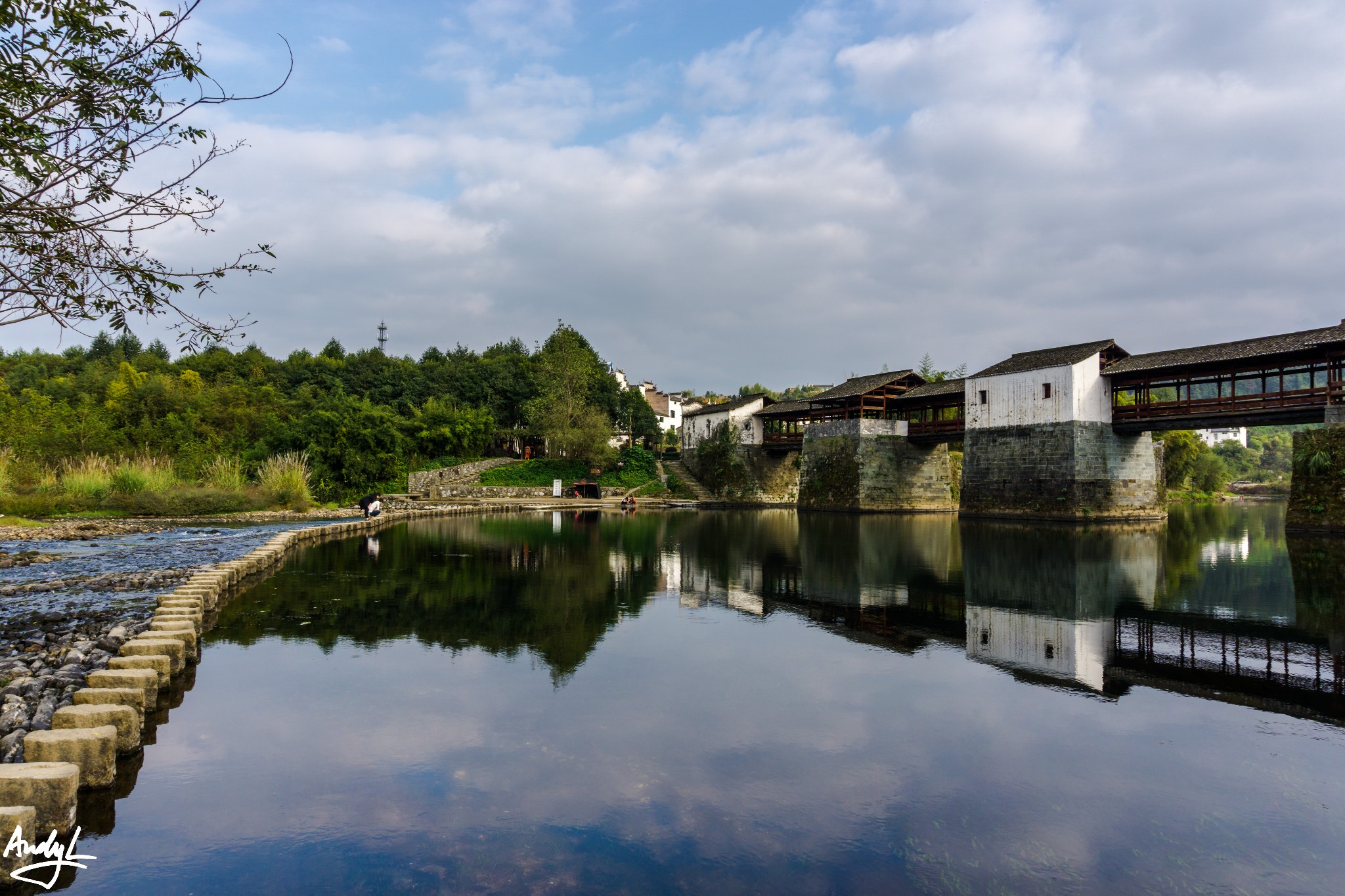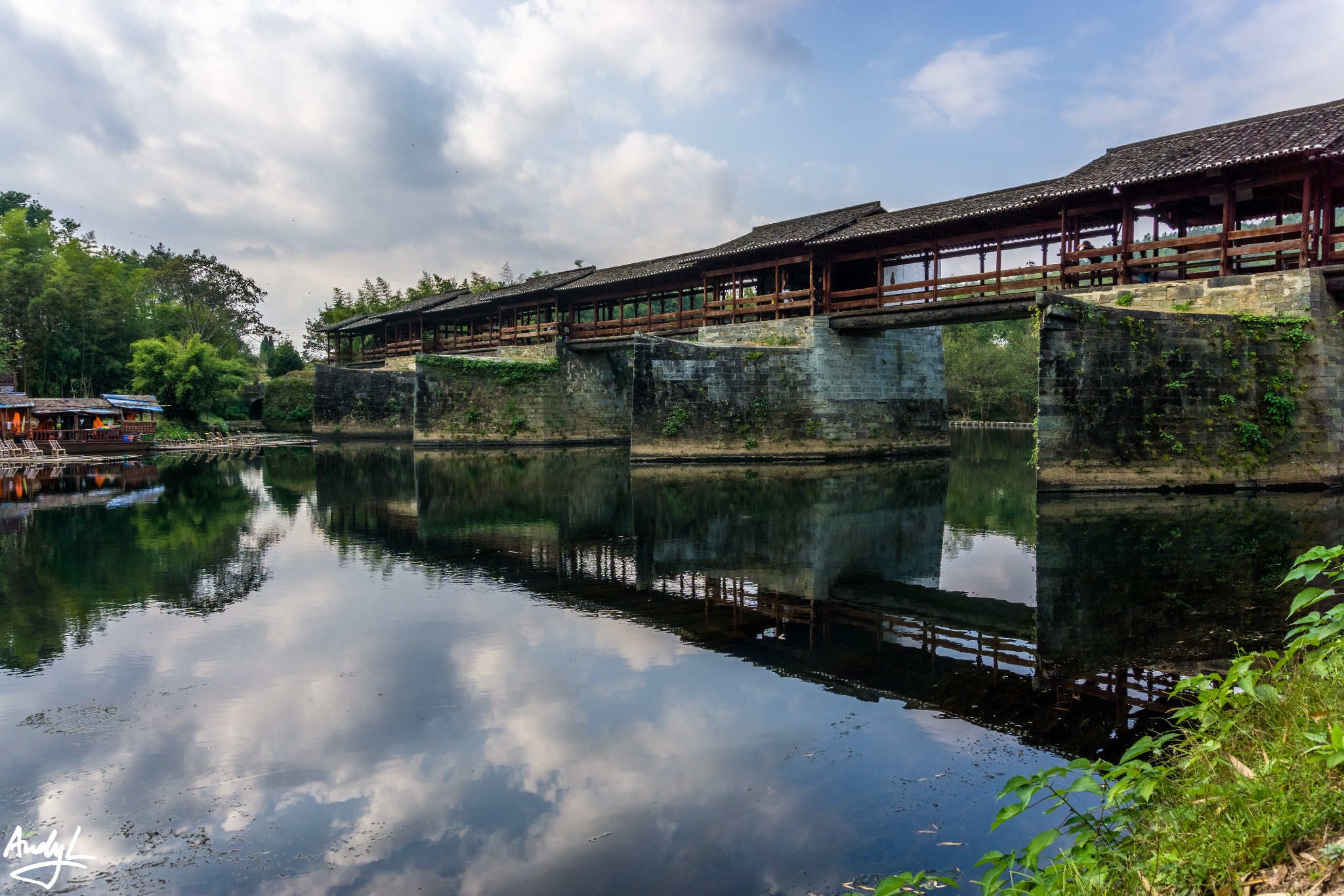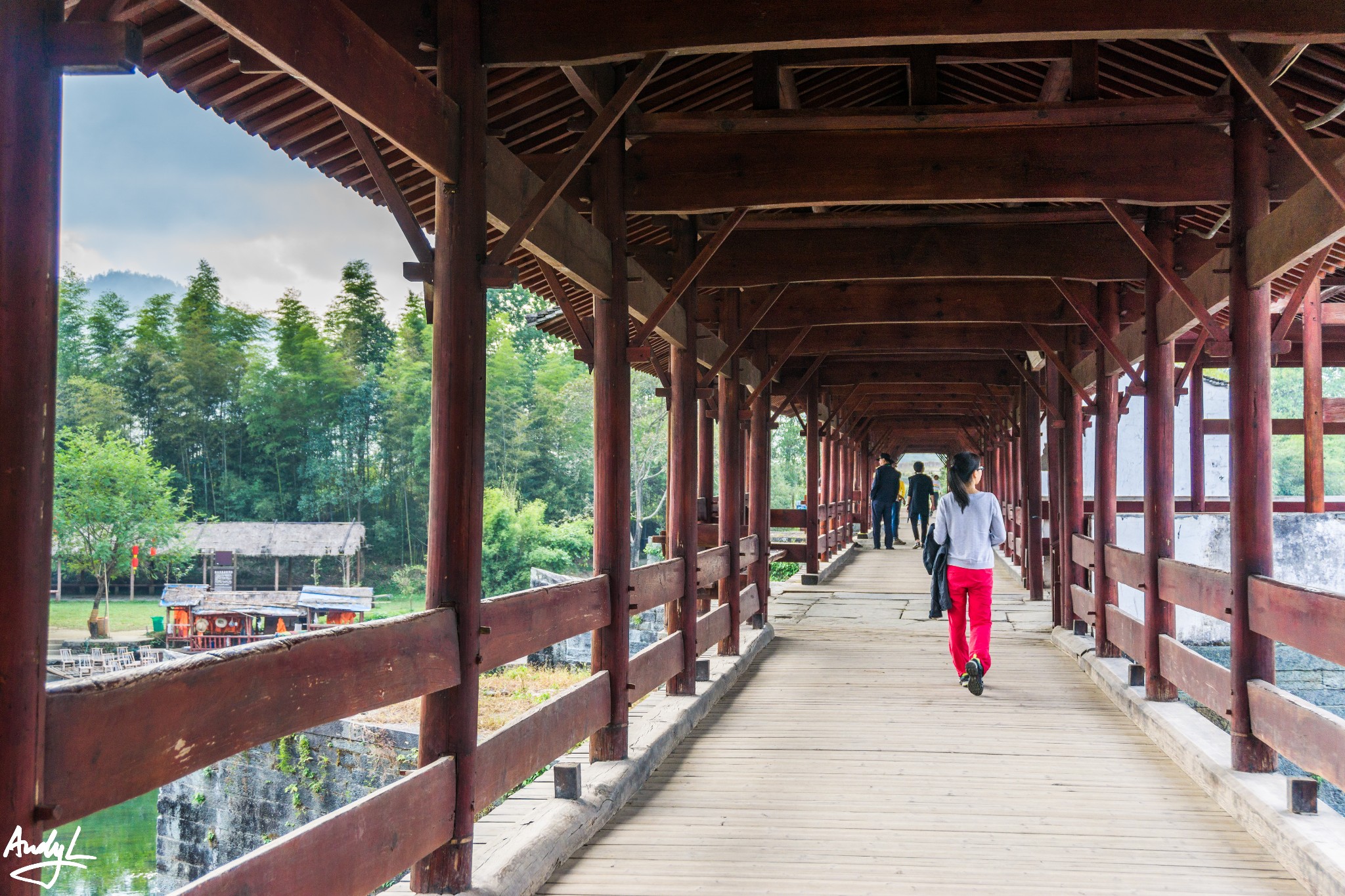 这座廊桥有140米长,走在上面会发出木板摩擦的声音,仿佛在告诉你这座桥的历史。