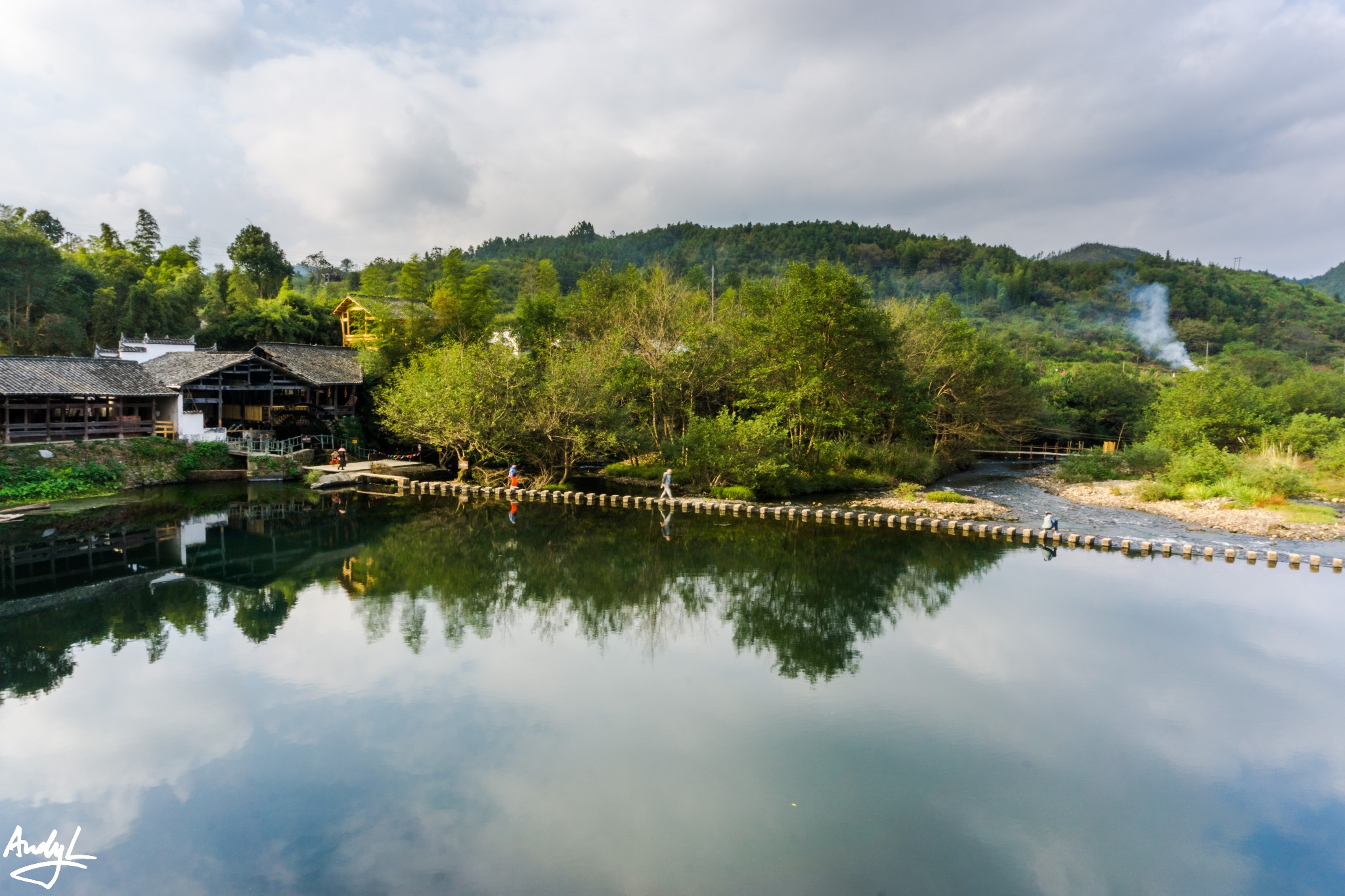 汪口村建在一条大河边,较李坑而言少了许多商业气息,一条石板路从村中穿过,算是主干道了。汪口村是直线型的,游玩不需要走回头路。