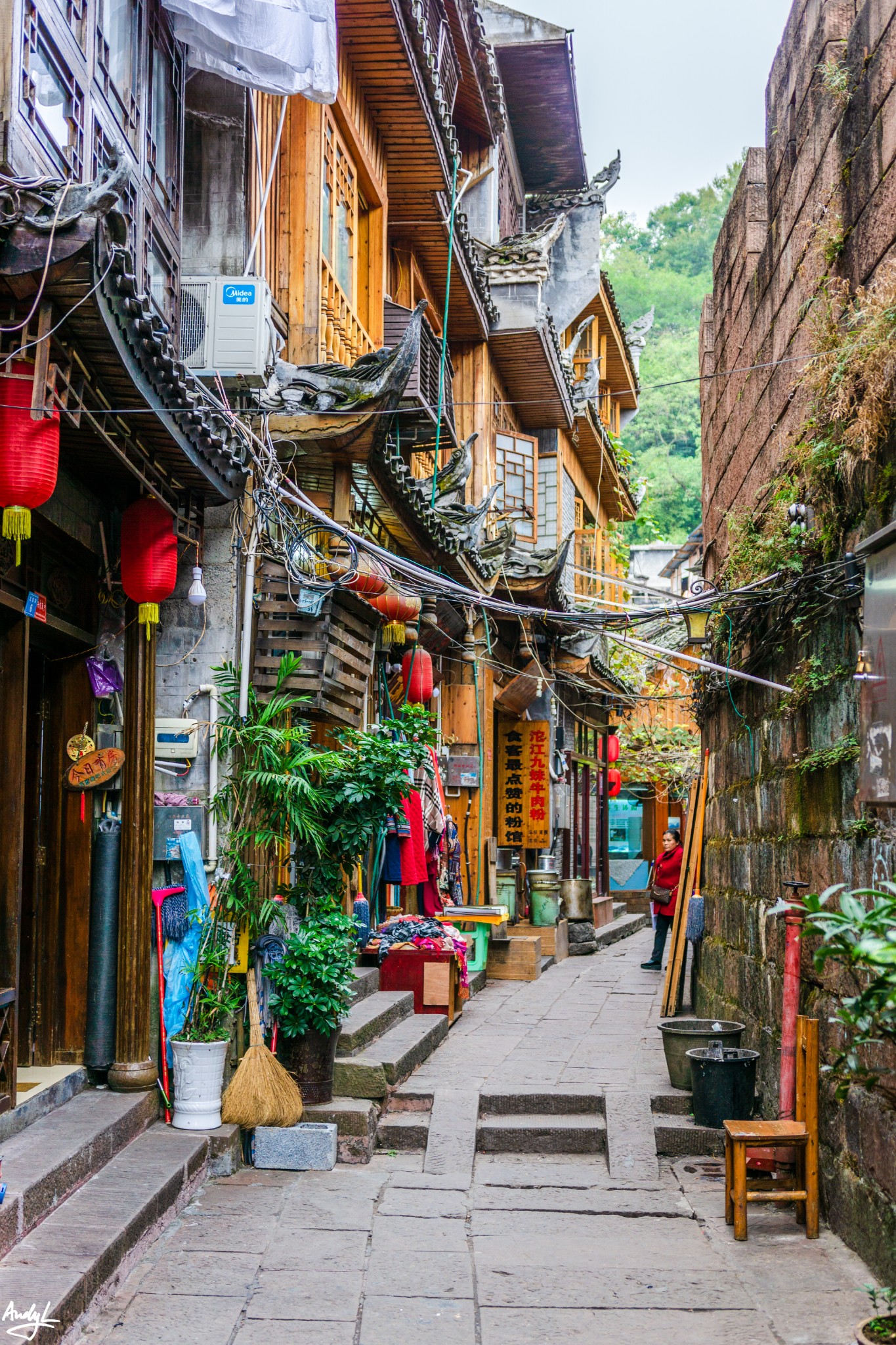 与其他古镇古城一样,凤凰古城内的街道也是这样的石板路,街道不宽略显拥挤,古城内几乎所有的房子都被改造成了商店和客栈,几乎没有当地居民居住,这样也显得商业气息过于浓重。