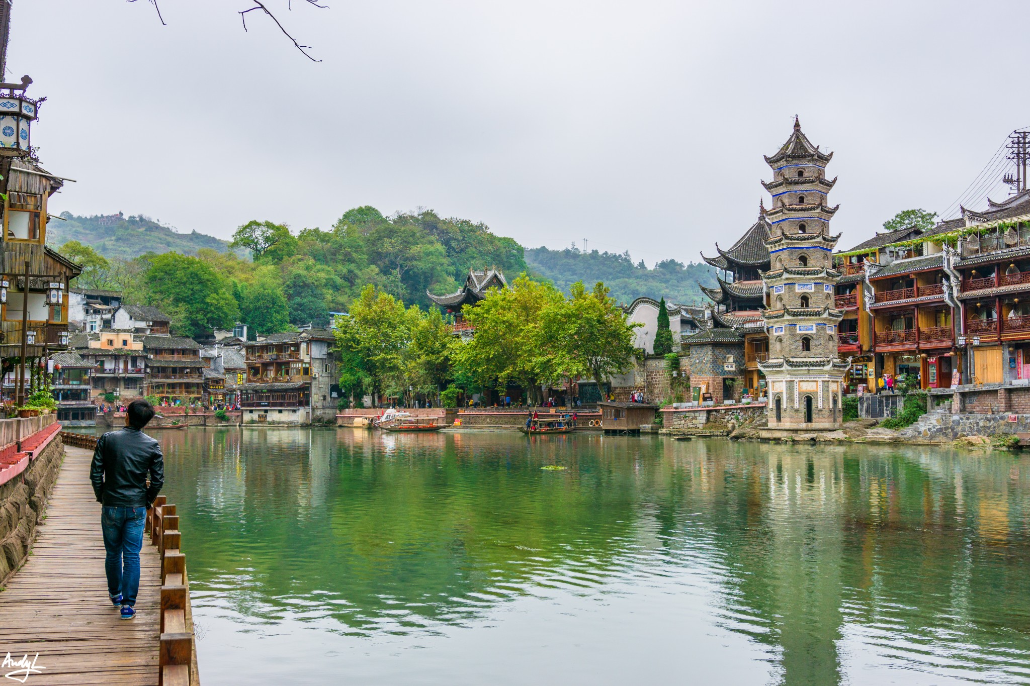 沱江+吊脚楼+古桥=凤凰。有了万名塔的点缀,更有味道。